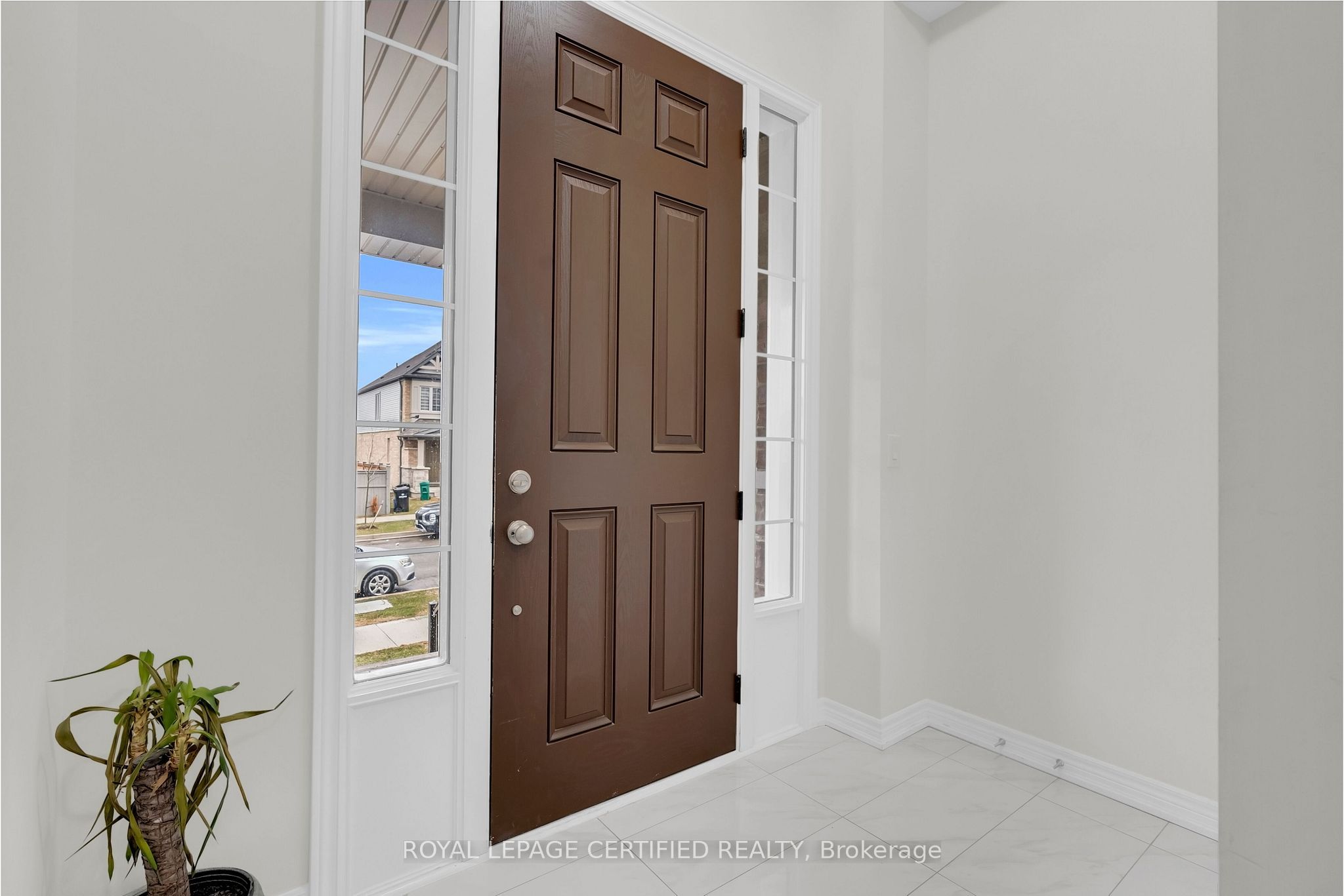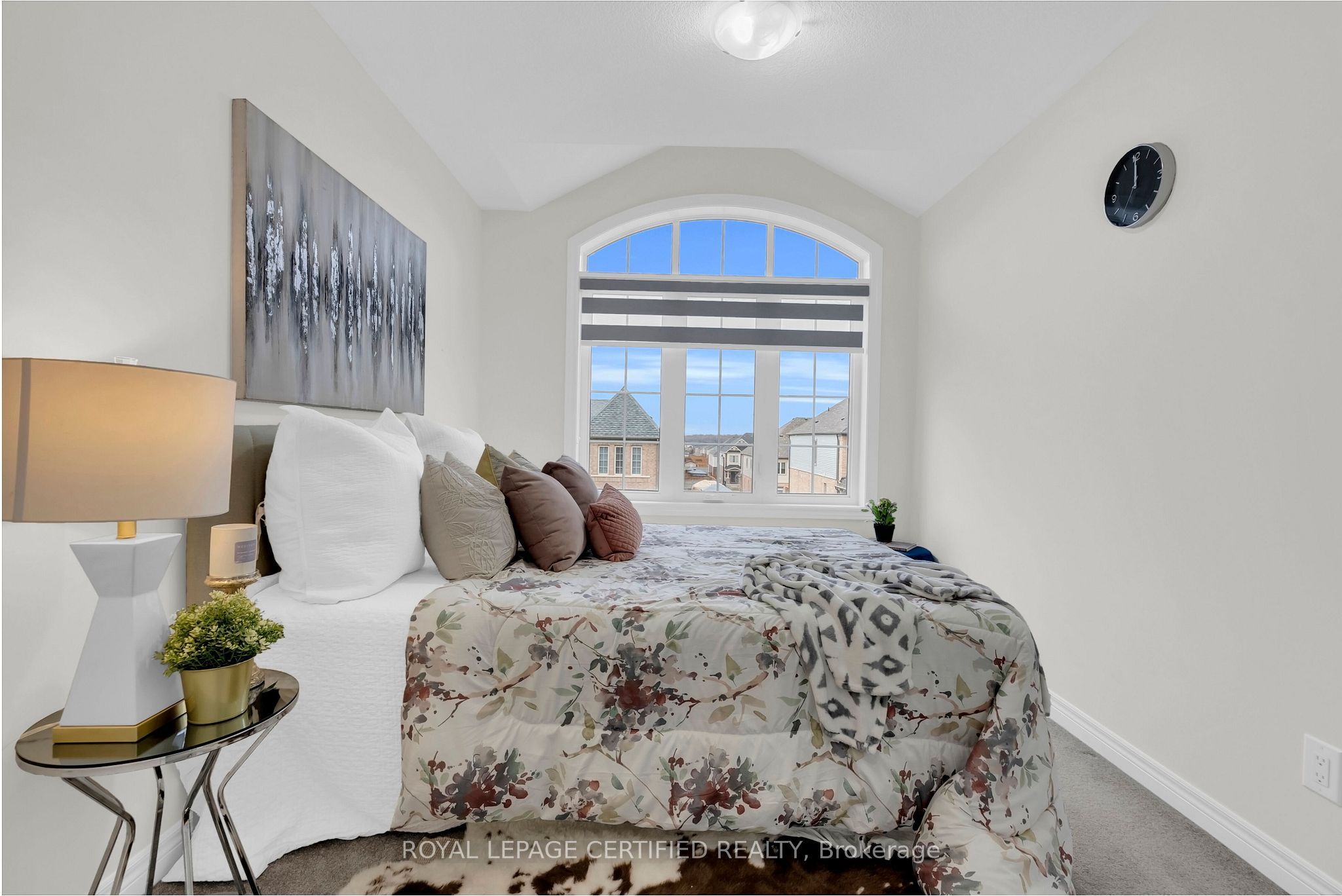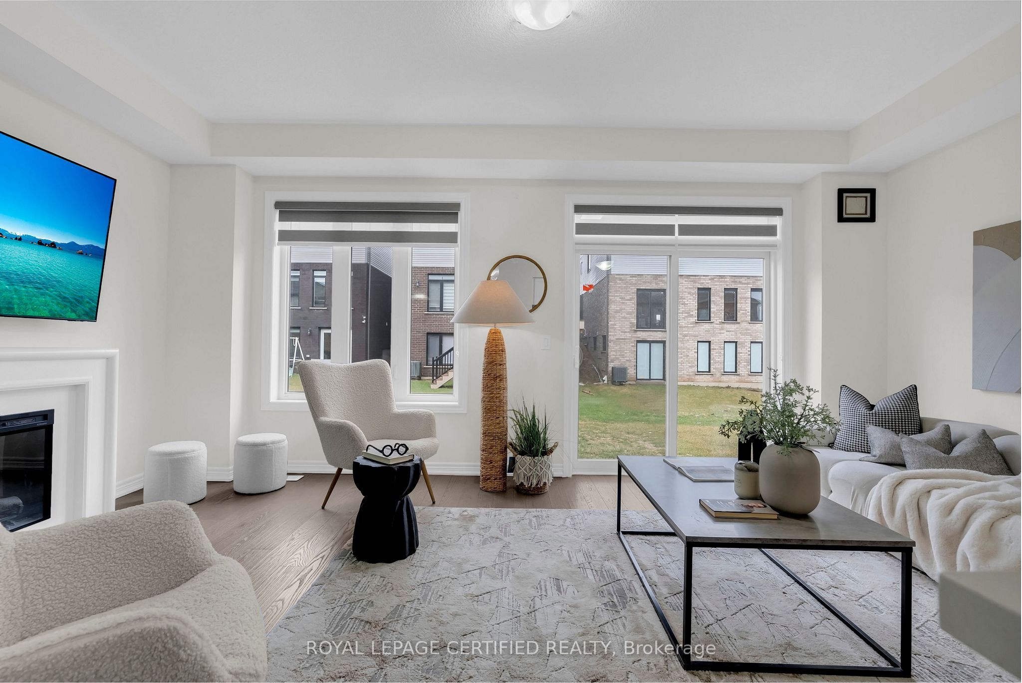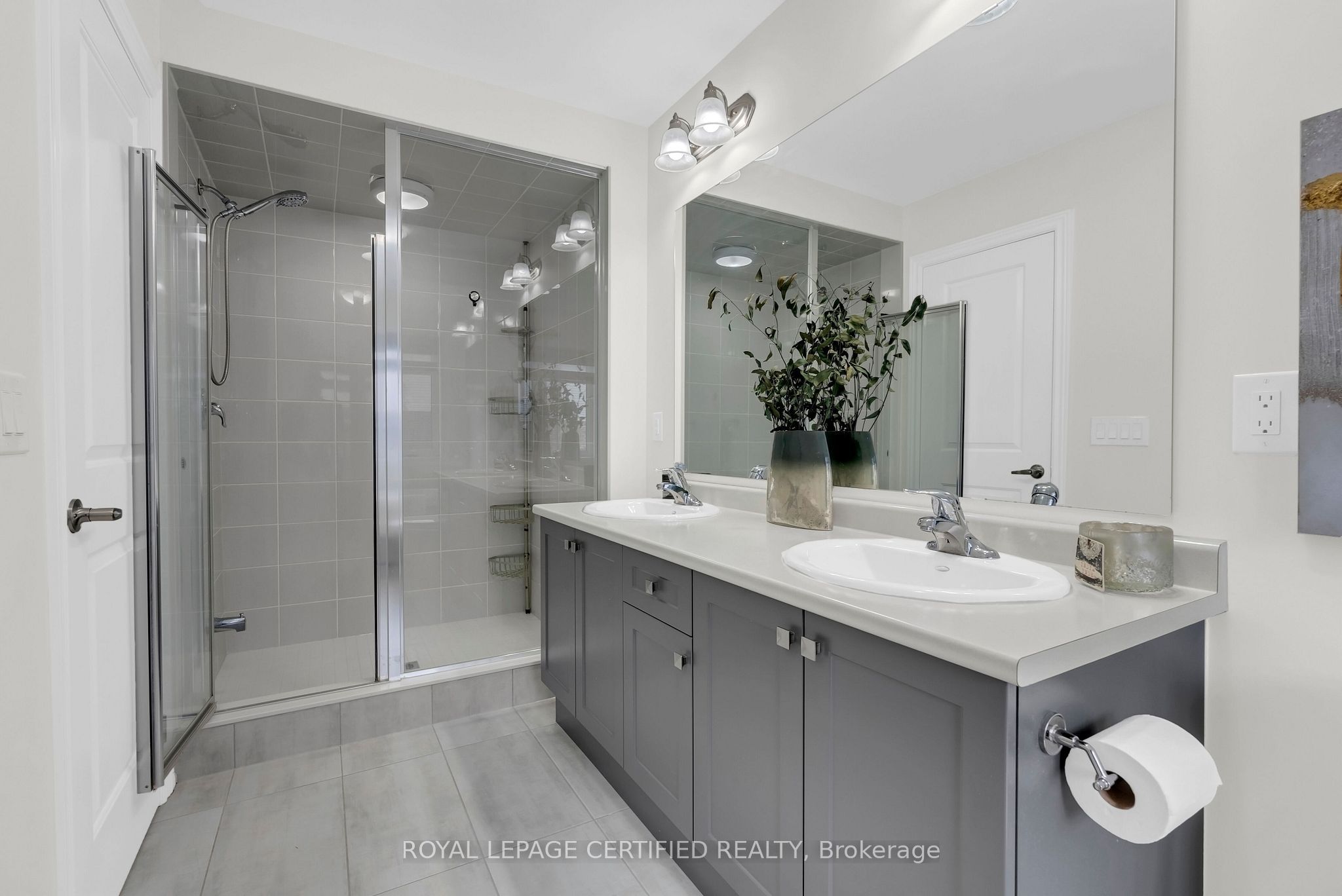 This beautifully maintained freehold townhouse, featuring luxury finishes constructed by renowned builder heathwood, is located in one of kitchener's most desirable, family-friendly neighbourhoods, just minutes from highway 401, shopping, dining, and everyday conveniences. Featuring 3 bedrooms and 3+1 bathrooms, this home offers a fully finished basement, garage, and 9-ft ceilings on the main floor, along with modern finishes throughout. The bright open-concept main level seamlessly connects the living, and kitchen areas, highlighted by large windows, upgraded lighting, and a cozy fireplace. The kitchen is equipped with white cabinetry, quartz countertops, stainless steel appliances, double sinks, and a large eat-in island, plus a convenient pantry. Additional storage is provided with coat closets at both the front entry and garage access. Hardwood stairs lead to the second level, featuring two spacious bedrooms with oversized closets, a full bathroom, and second-floor laundry. The primary suite includes a walk-in closet and a luxurious ensuite with double sinks, a soaker tub, and a glass stand-up shower. The finished basement offers versatile space ideal for a rec room, home office, or potential 4th bedroom, complete with high ceilings and a 3-piece bathroom. Additional features include an owned water softener, water purifier, and garage shelving for extra storage. Located close to top-rated schools, scenic trails, and the highly sought-after rbj schlegel park, which offers sports fields, a cricket pitch, courts, playgrounds, splashpad, and an upcoming state-of-the-art indoor recreation facility, this home delivers exceptional lifestyle and convenience in a rapidly growing community.