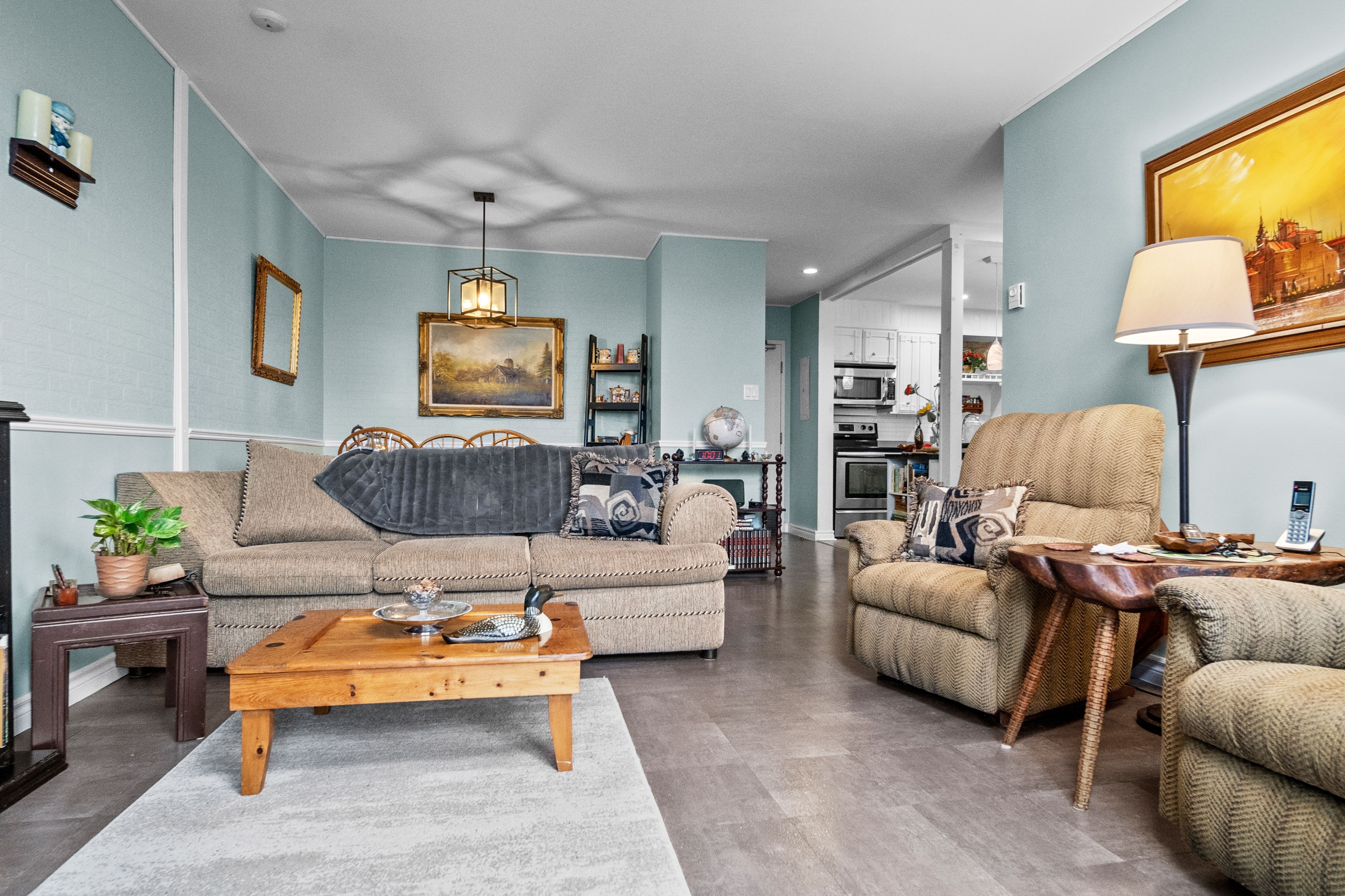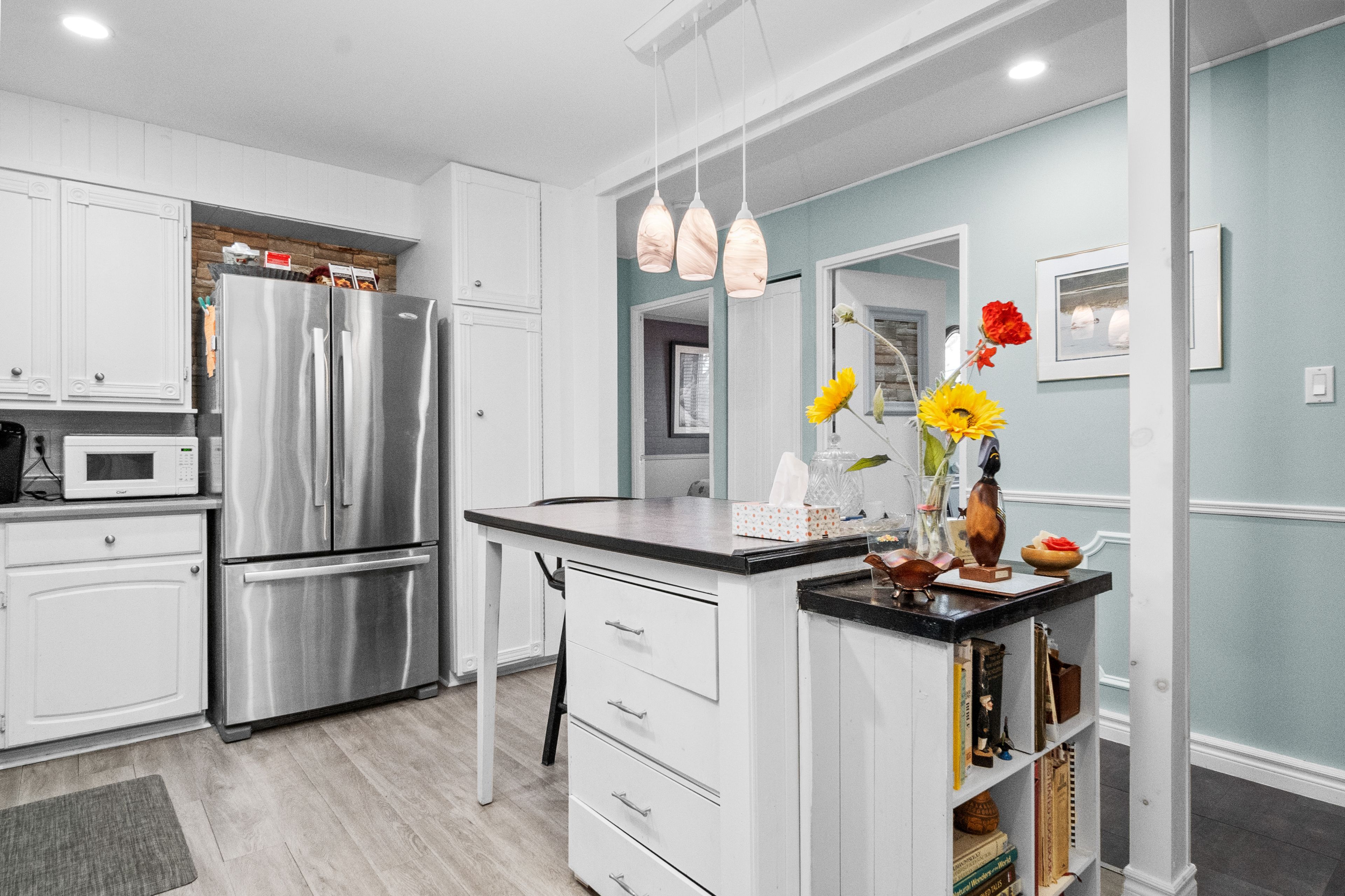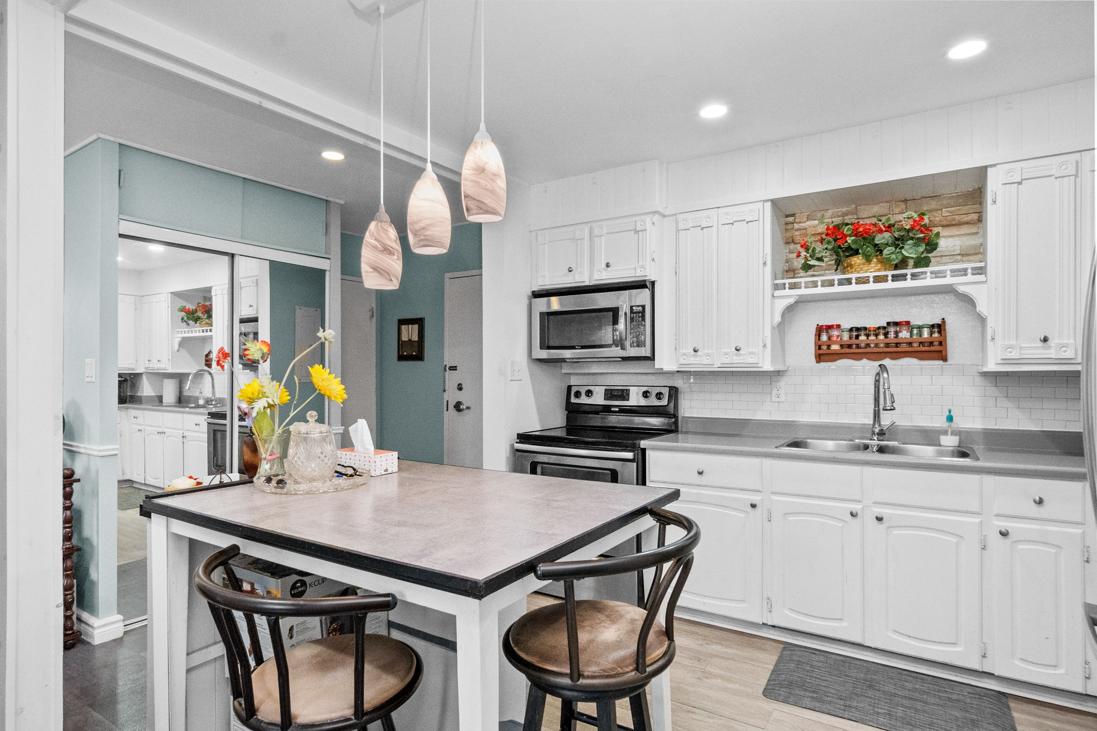 • Freshly painted interior with updated flooring and stylish kitchen appliances.