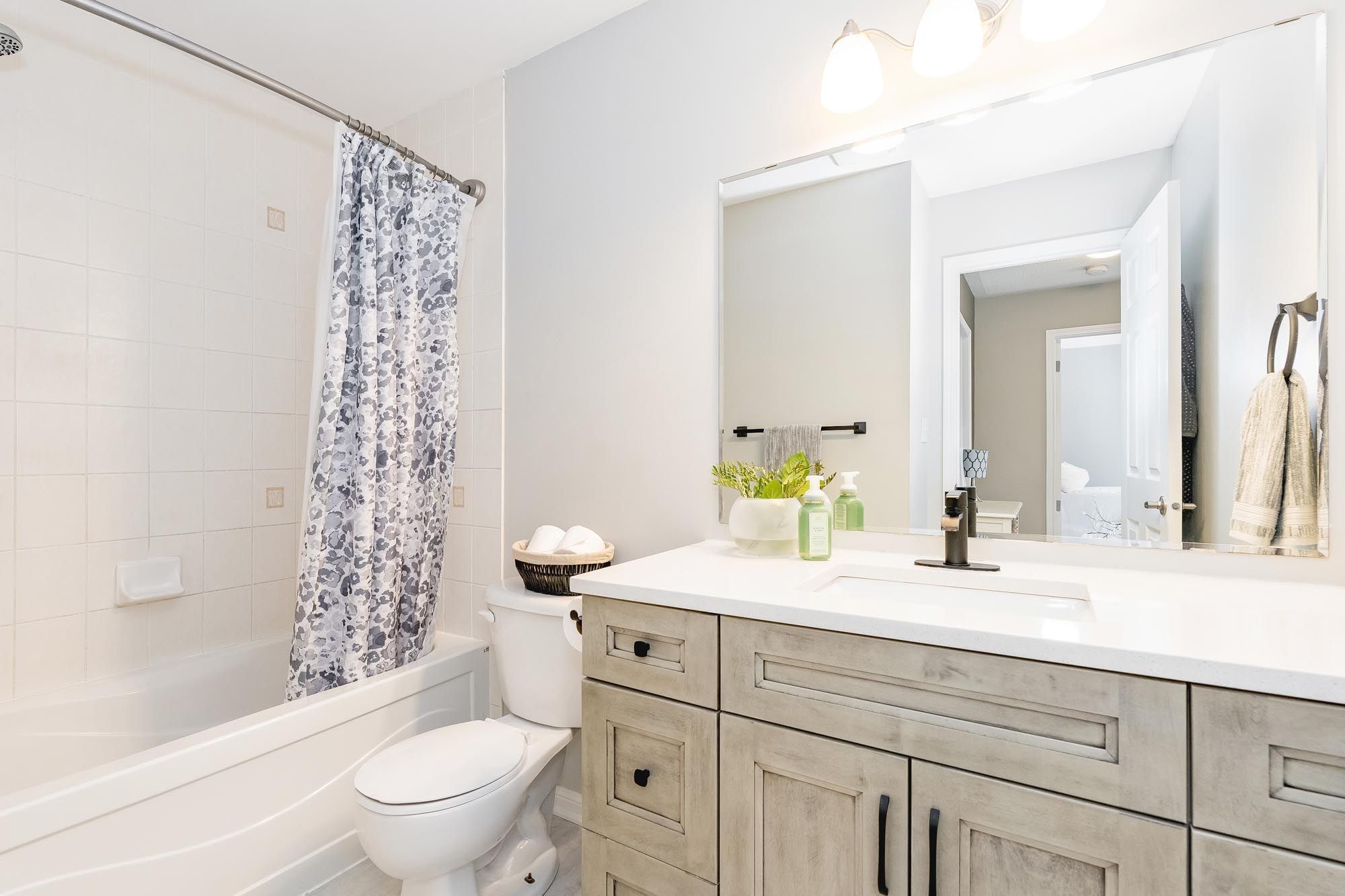 • Updated tile flooring and modern vanities in foyer and bathrooms.