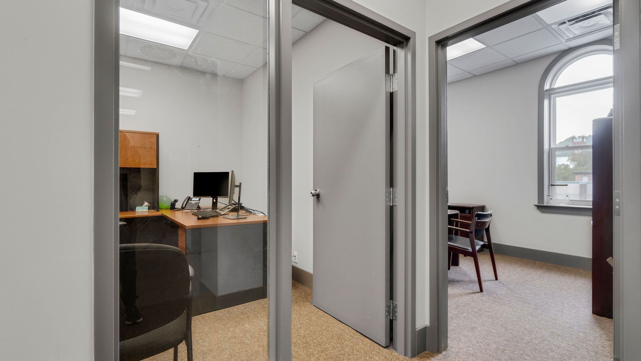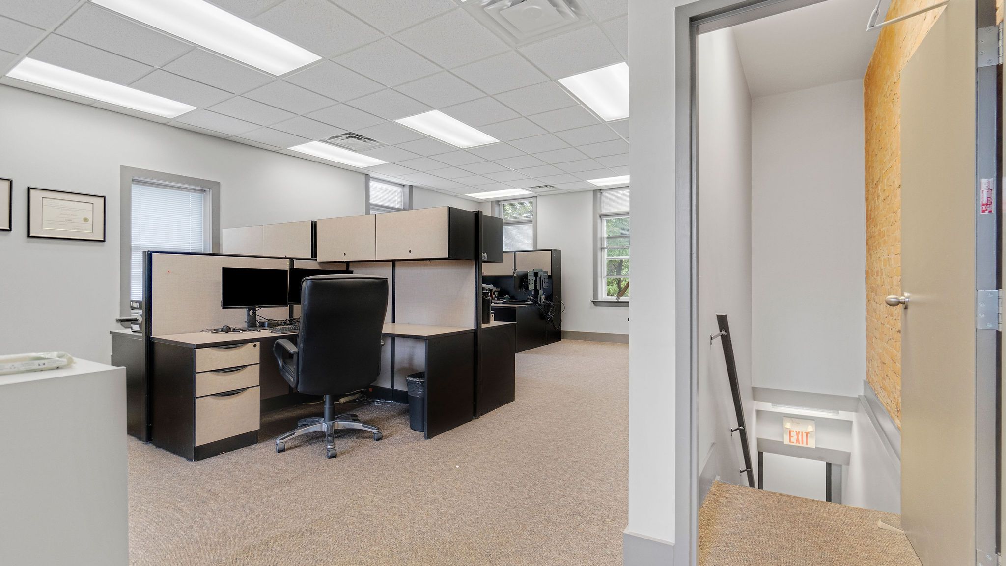 • Includes private offices, cubicle spaces, and access to essential facilities.