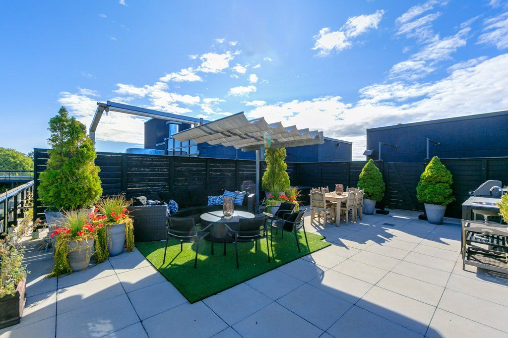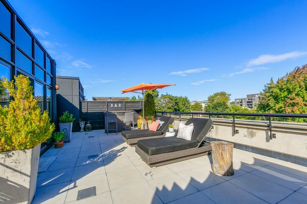 Stunning penthouse in the kew located on a quiet street south of queen just steps to the beach, boardwalk and woodbine beach. A rare opportunity to purchase one of the few oversized units in this boutique building. Bright and spacious with 10 foot ceilings and floor to ceiling windows. Multi level with approx. 1600 sq ft of living space with a 1357 sq ft rooftop terrace. Perfectly curated and designed. A fantastic blend of form and function. This 2 plus 2 bedroom fantastic condo with 3 full baths could easily serve as a 3 bed. Walk up the stairs to the sun room that is large enough for a queen size pull out for guests. Through the sliding doors on the second floor you will find an amazing outdoor space. A private, serene oasis and entertainers dream space. Parking for two cars underground and storage locker are conveniently located directly off the elevator. Incredible visitor parking is the buildings best kept secret! Located steps away from transit, it is an easy commute to downtown, you will live your best life in this much sought after boutique building. Walk to the beach, restaurants, shopping, yoga, tennis or the pool. Or just enjoy the sunset from the privacy of your own terrace. This stunning property is a must see.