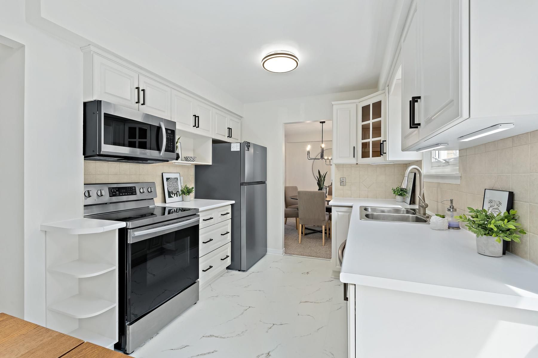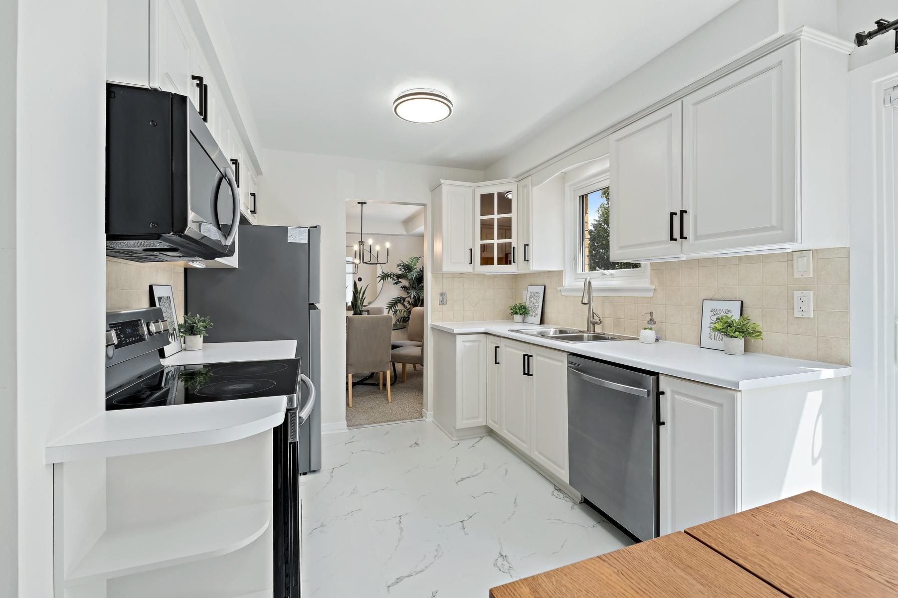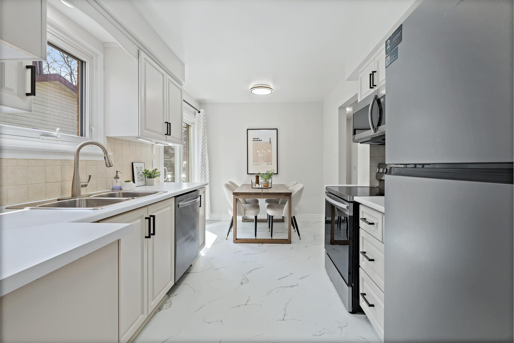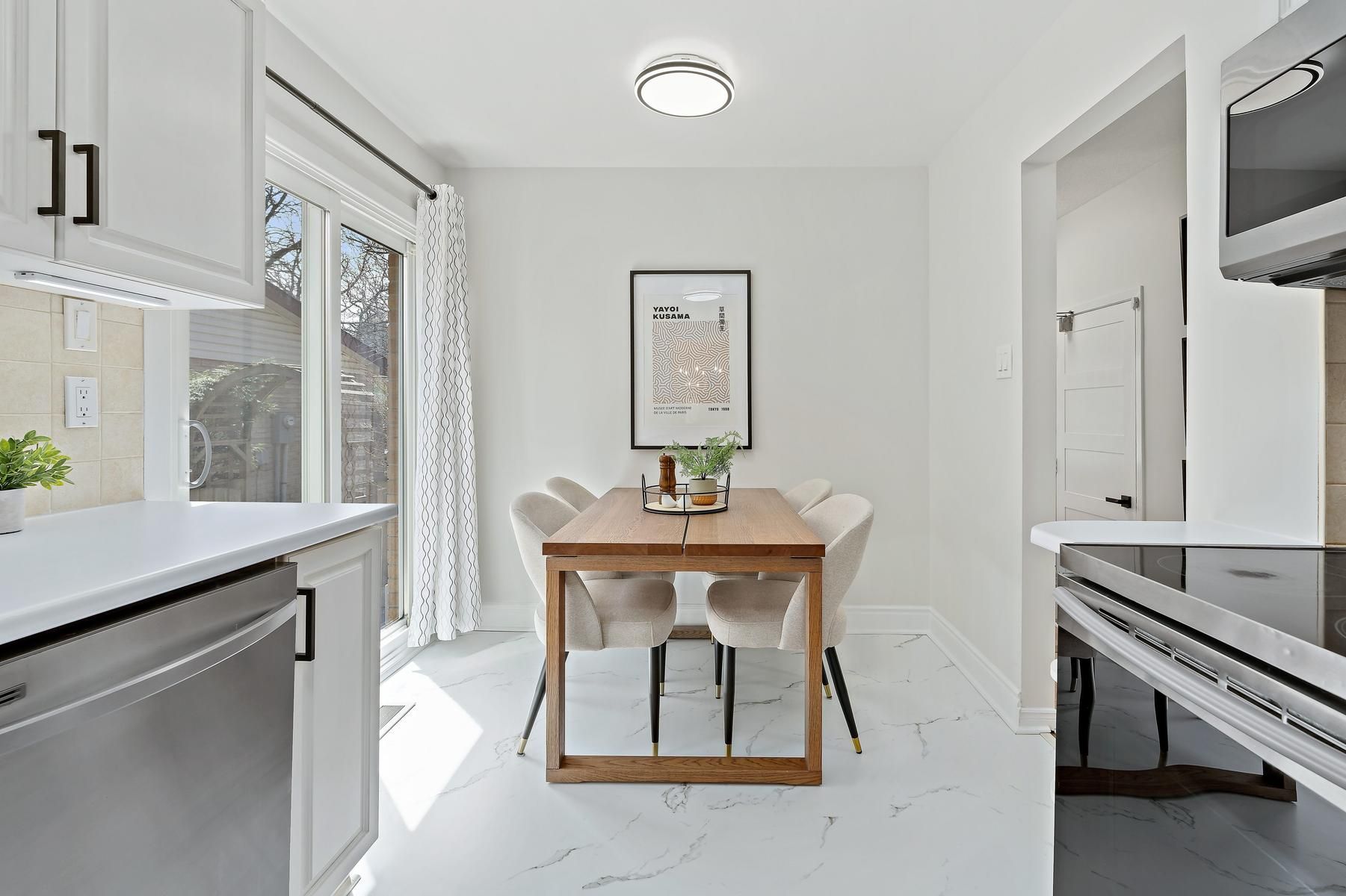 • Bright eat-in kitchen with stainless-steel appliances and walk-out to yard.
