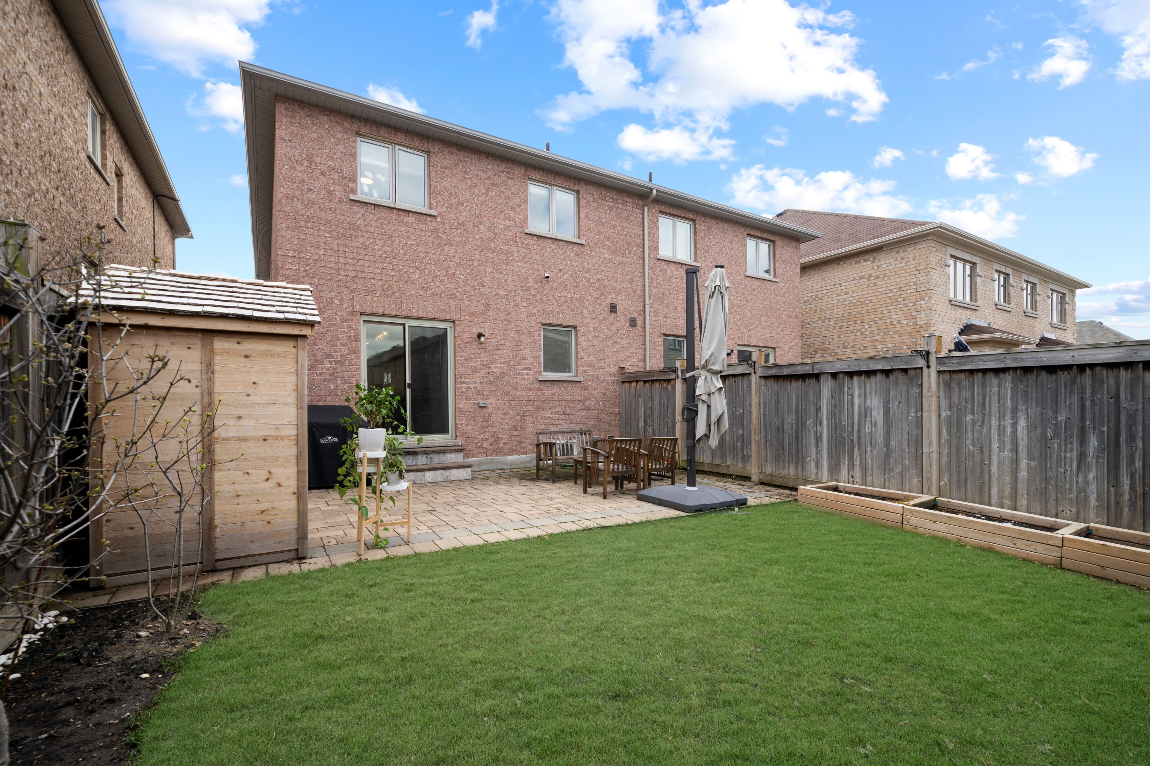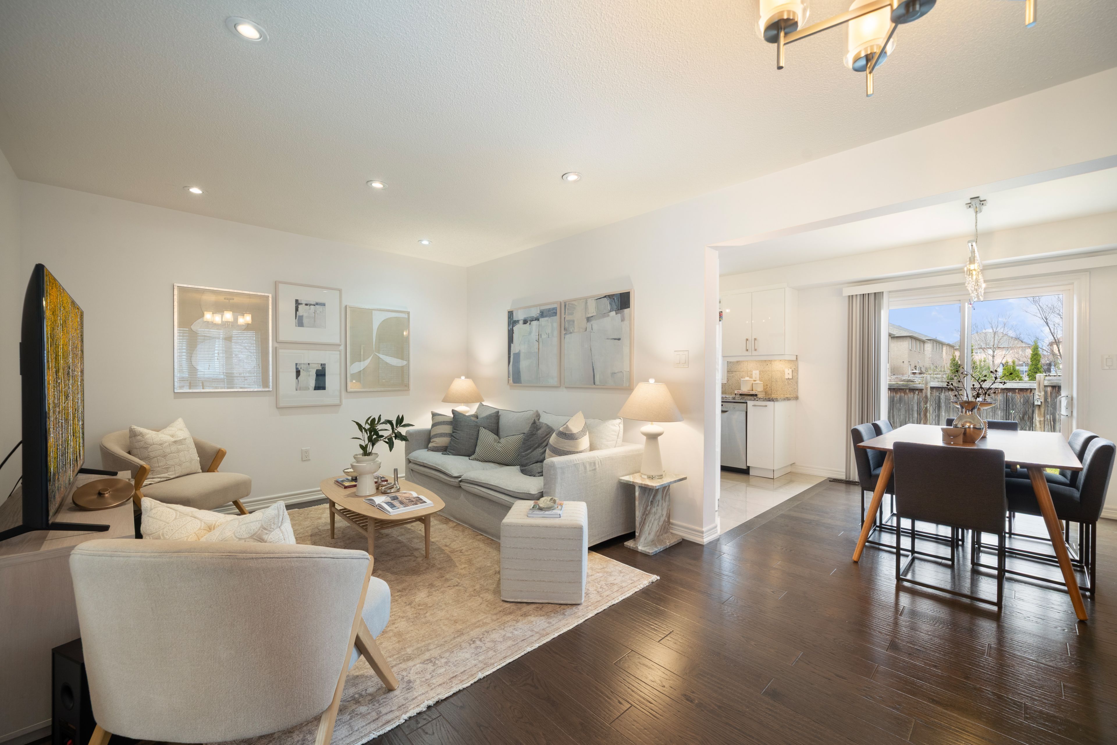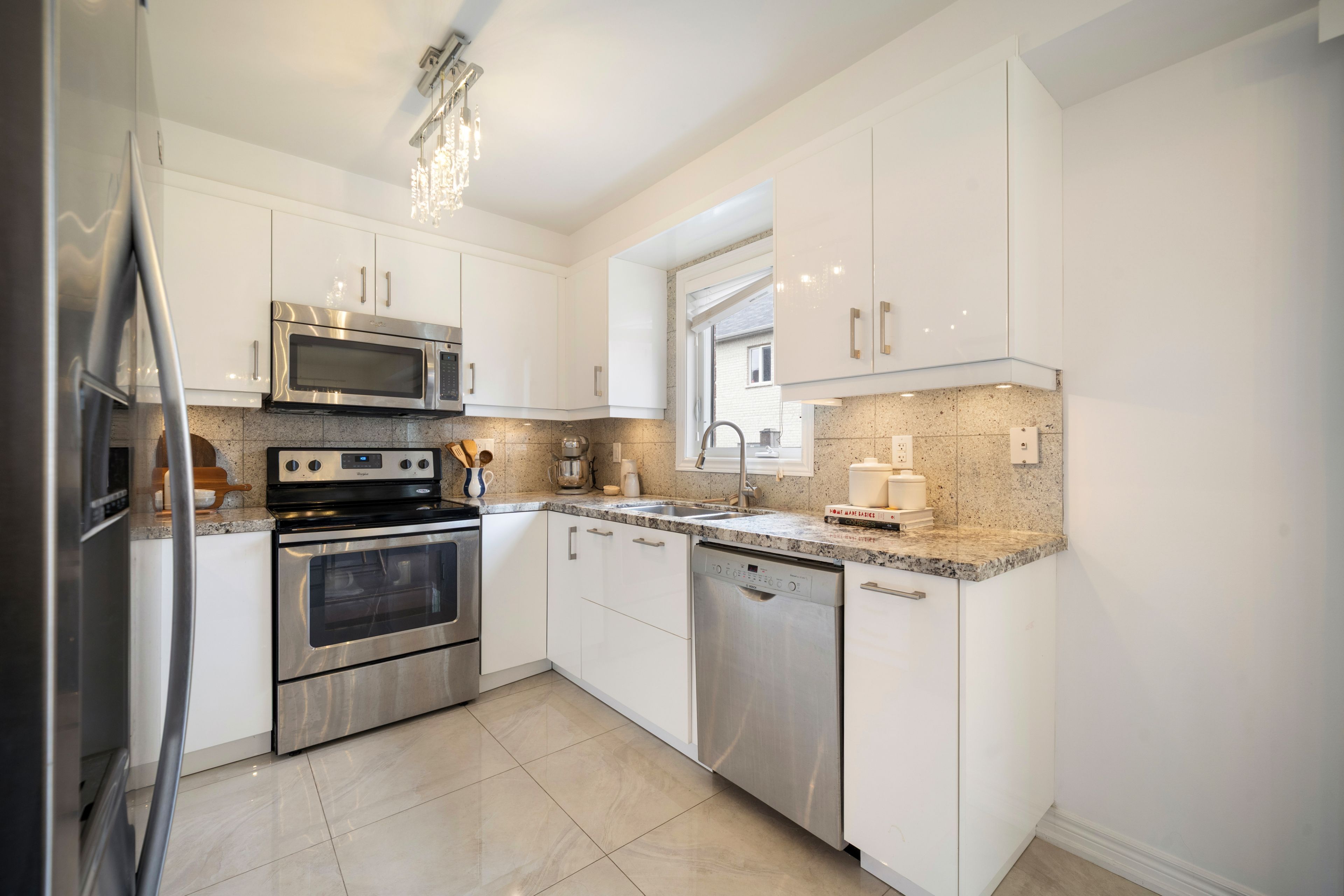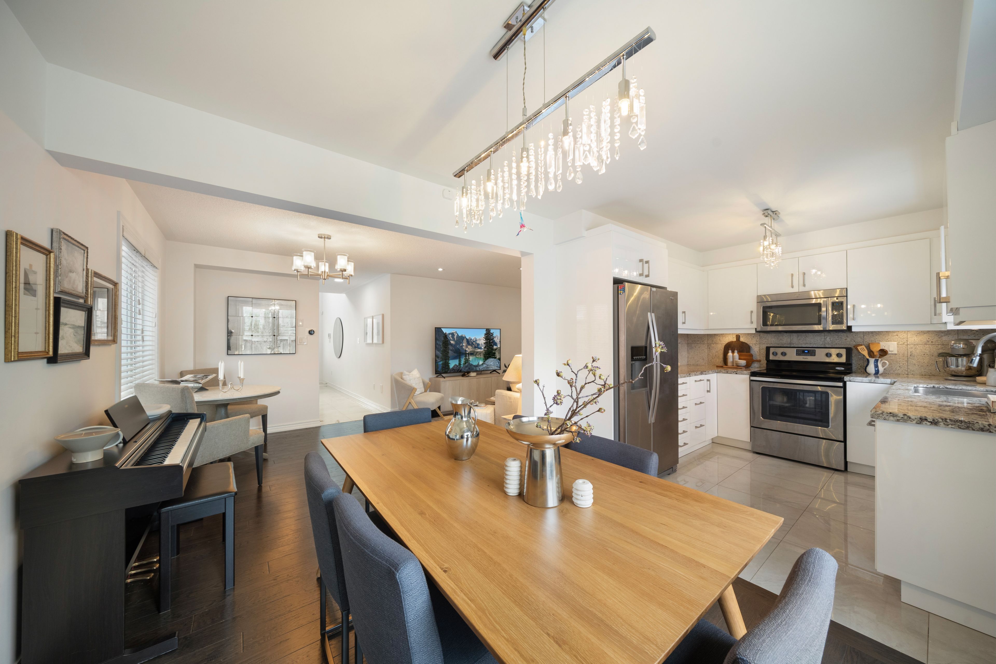 This spacious & beautifully maintained home in the highly sought-after "thornberrywoods" community offers an exceptional layout, approximately 2,000 sf of interior living space (in total) with generous principal rooms & tasteful finishes throughout. A grand double-height entrance welcomes you into an impressive tiled foyer, creating a bright & elegant first impression from the moment you arrive. The inviting living room flows seamlessly into the dining area, both enhanced by rich hardwood flooring & large windows that fill the home with natural light. The bright, family-sized updated kitchen overlooks the private backyard & features sleek tile flooring, granite countertops & ample cabinetry, offering both functionality & style. A convenient powder room completes the thoughtfully designed main level. Upstairs, a staircase featuring a brand-new runner leads to the private 2nd floor. The spacious primary bedroom offers a walk-in closet & a well-appointed renovated 4-piece ensuite, creating a comfortable retreat. Two additional bedrooms provide generous closet space & peaceful views of the backyard, ideal for family, guests or a home office. A renovated 4-piece family bathroom completes the 2nd level. The finished lower level adds valuable additional living space, featuring a larger recreation room perfect for relaxing or entertaining, along with a dedicated office area, generous storage, a 3-piece bathroom & a separate laundry room - ideal for growing families or those working from home. Outside, the home continues to impress with a private driveway accommodating up to 3 vehicles, along with a built-in one-car garage. The super private backyard showcases a large interlock patio, perfect for outdoor dining & entertaining, as well as a grassy area ideal for children & outdoor enjoyment. A wonderful opportunity to own a spacious, move-in-ready home in the highly desirable thornberry woods/patterson community, close to parks, fantastic schools, transit &everyday amenities.