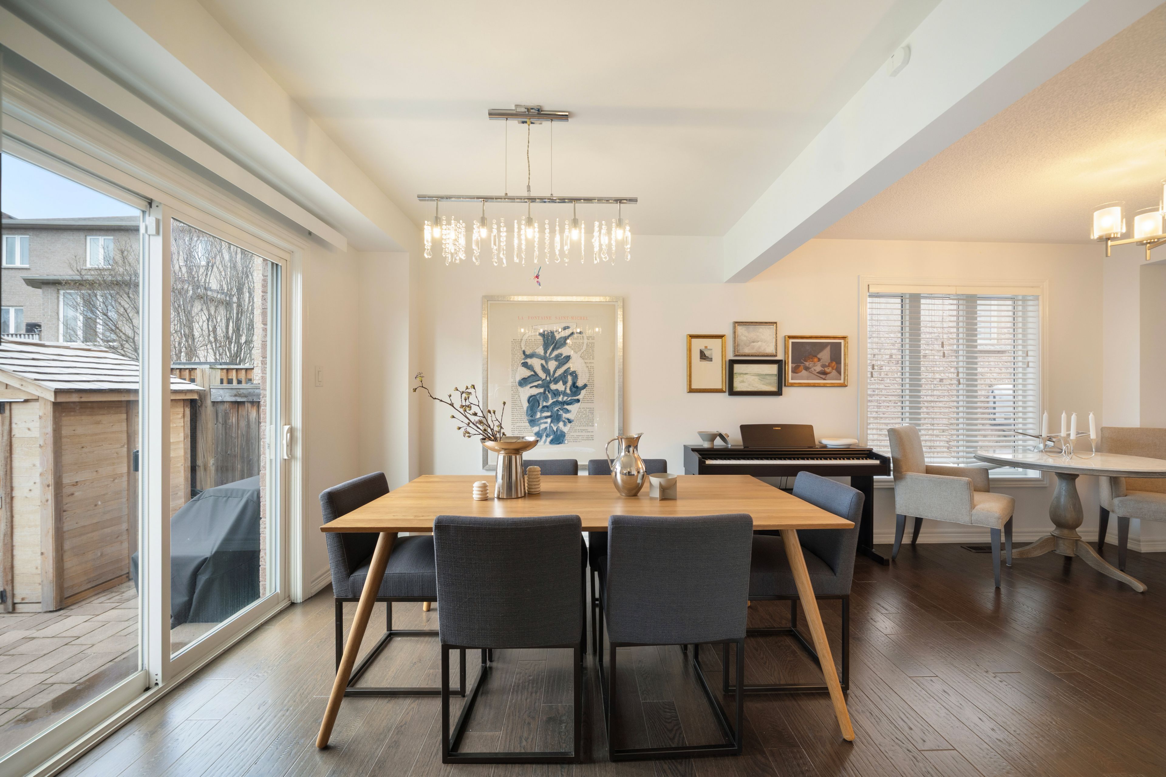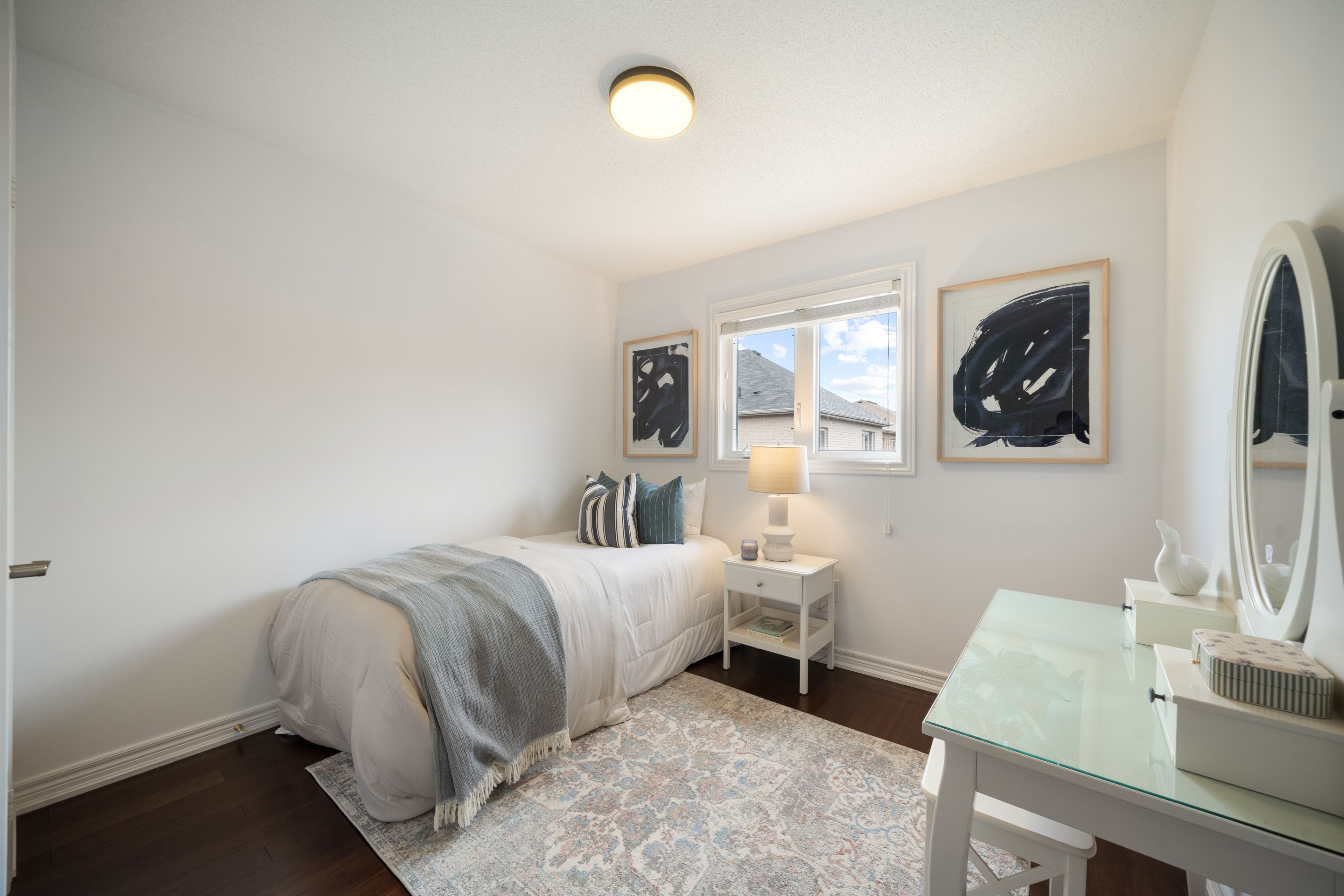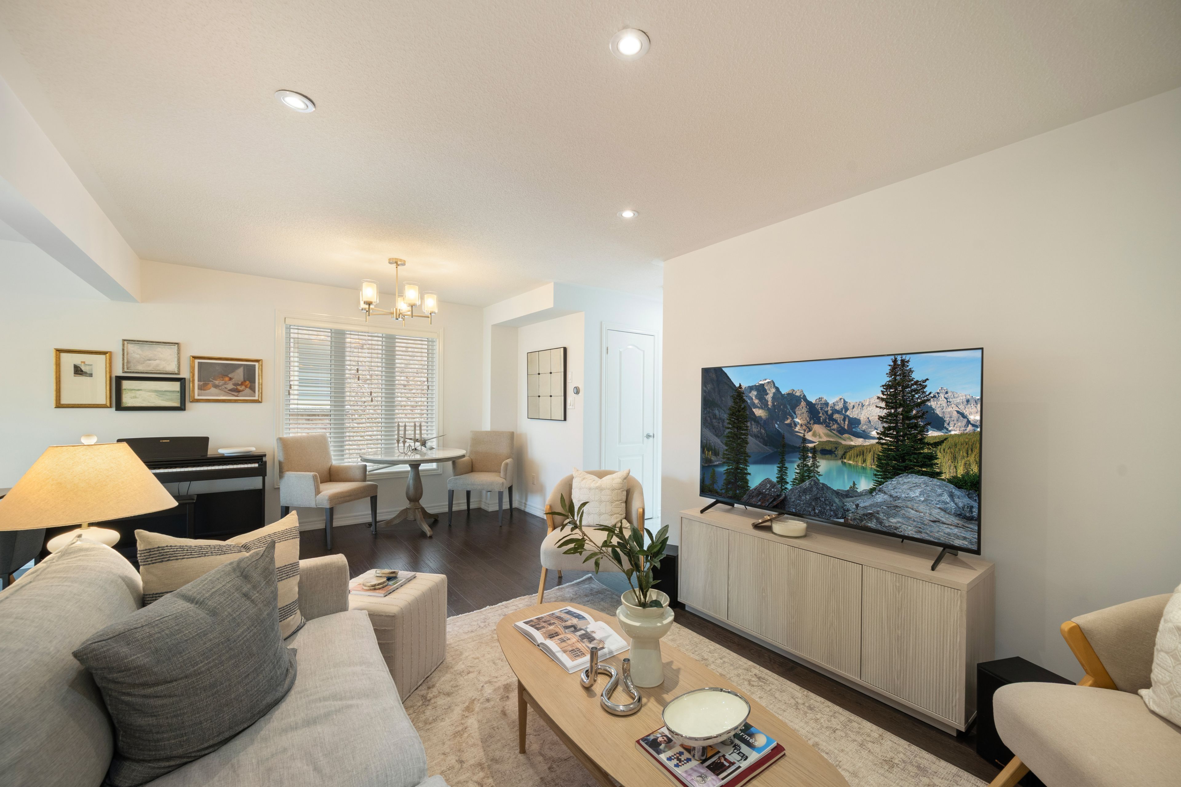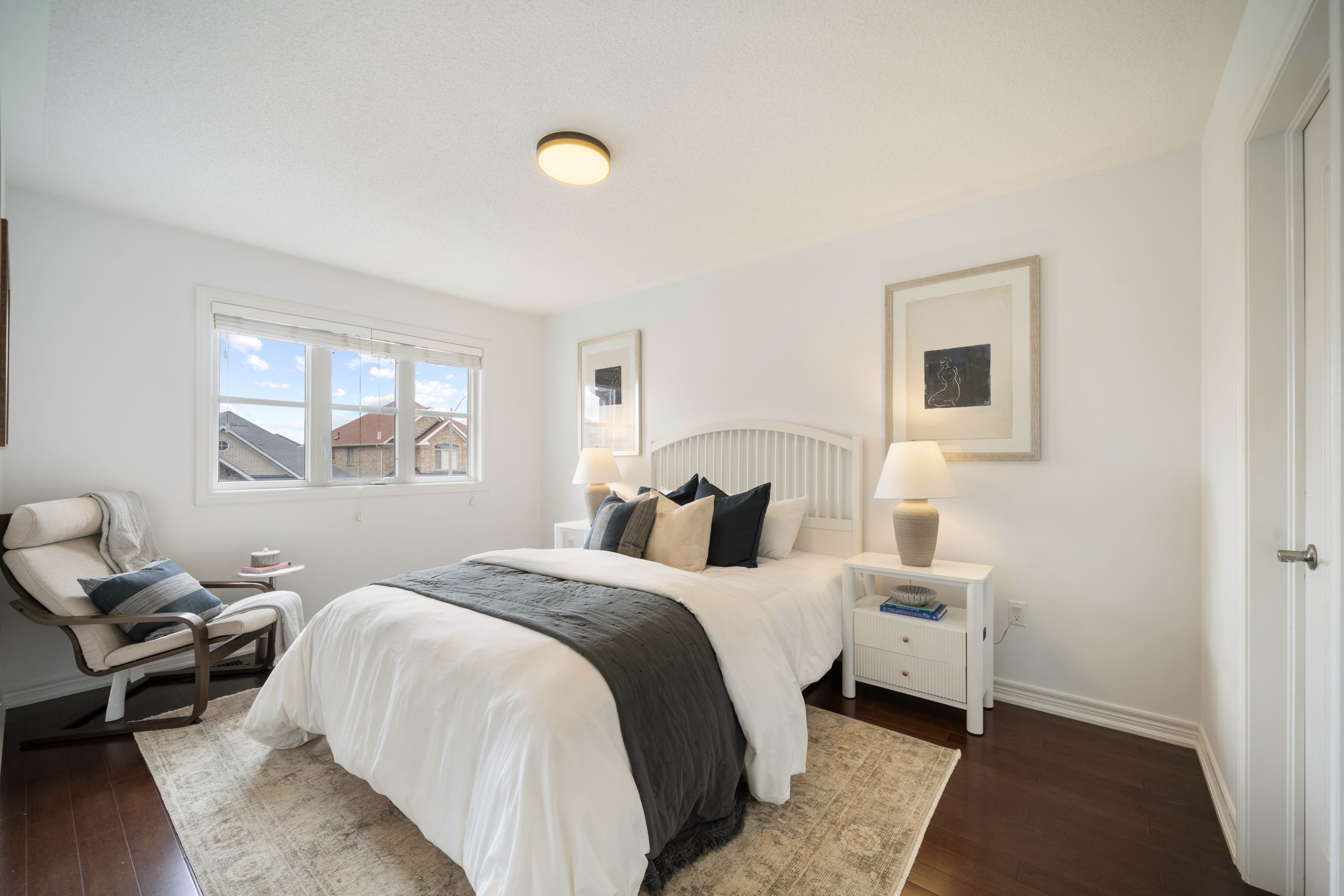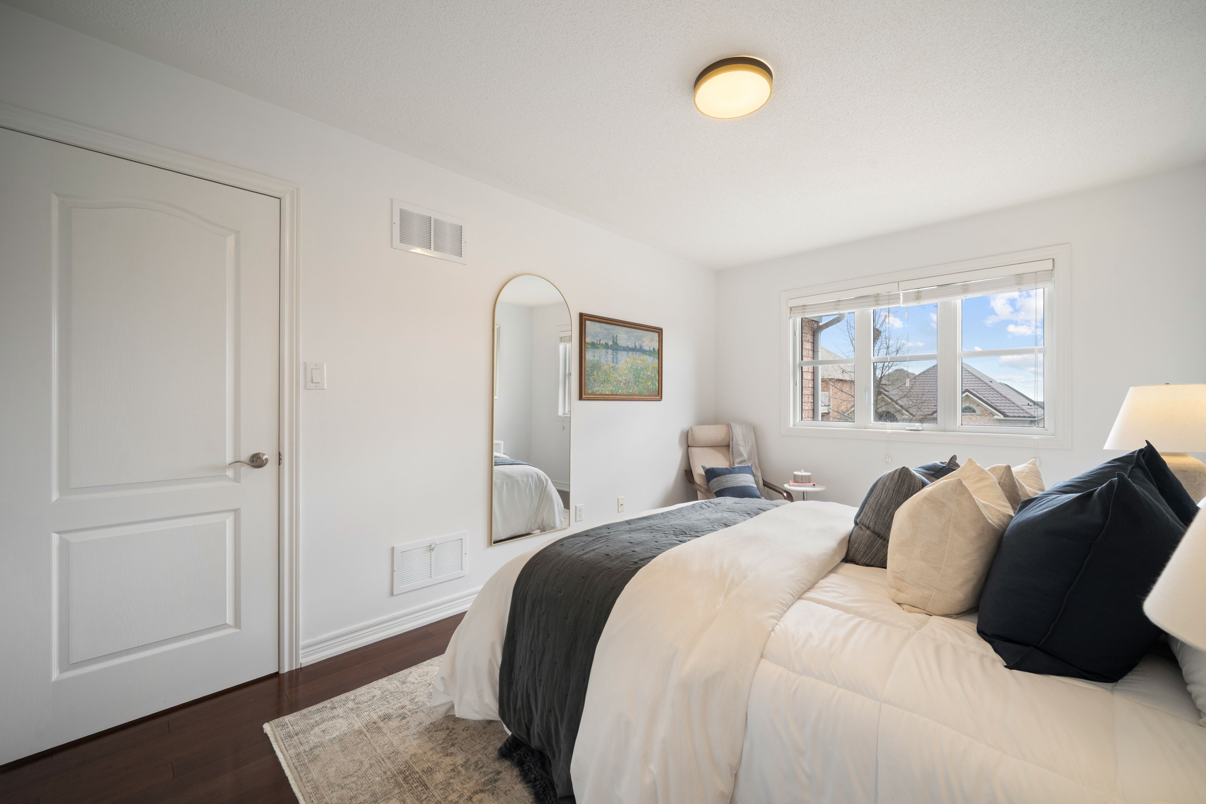 This spacious & beautifully maintained home in the highly sought-after "thornberrywoods" community offers an exceptional layout, approximately 2,000 sf of interior living space (in total) with generous principal rooms & tasteful finishes throughout. A grand double-height entrance welcomes you into an impressive tiled foyer, creating a bright & elegant first impression from the moment you arrive. The inviting living room flows seamlessly into the dining area, both enhanced by rich hardwood flooring & large windows that fill the home with natural light. The bright, family-sized updated kitchen overlooks the private backyard & features sleek tile flooring, granite countertops & ample cabinetry, offering both functionality & style. A convenient powder room completes the thoughtfully designed main level. Upstairs, a staircase featuring a brand-new runner leads to the private 2nd floor. The spacious primary bedroom offers a walk-in closet & a well-appointed renovated 4-piece ensuite, creating a comfortable retreat. Two additional bedrooms provide generous closet space & peaceful views of the backyard, ideal for family, guests or a home office. A renovated 4-piece family bathroom completes the 2nd level. The finished lower level adds valuable additional living space, featuring a larger recreation room perfect for relaxing or entertaining, along with a dedicated office area, generous storage, a 3-piece bathroom & a separate laundry room - ideal for growing families or those working from home. Outside, the home continues to impress with a private driveway accommodating up to 3 vehicles, along with a built-in one-car garage. The super private backyard showcases a large interlock patio, perfect for outdoor dining & entertaining, as well as a grassy area ideal for children & outdoor enjoyment. A wonderful opportunity to own a spacious, move-in-ready home in the highly desirable thornberry woods/patterson community, close to parks, fantastic schools, transit &everyday amenities.
