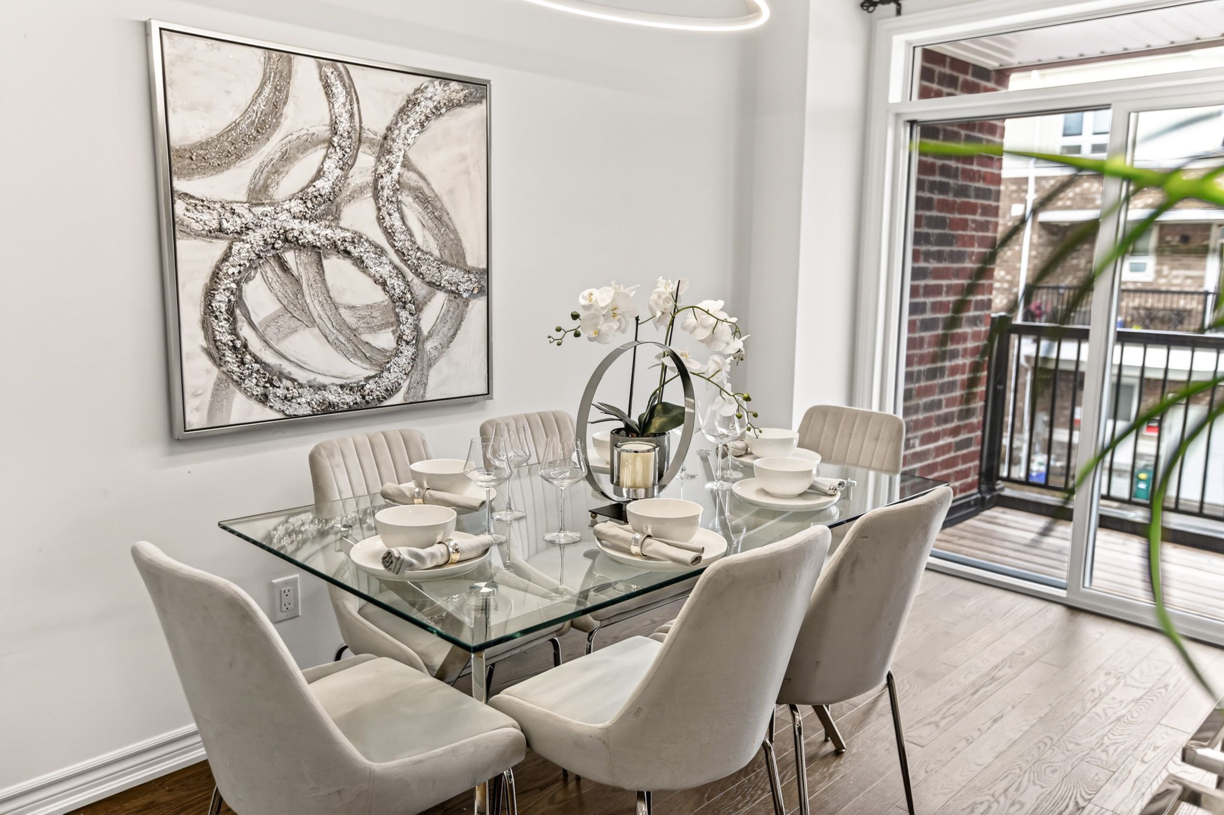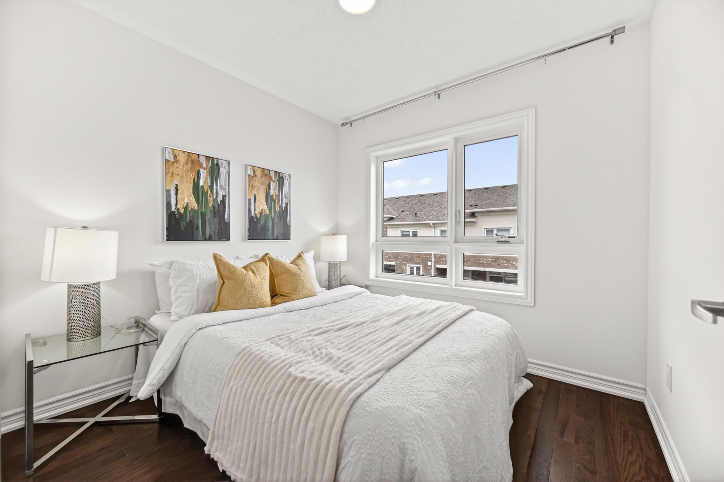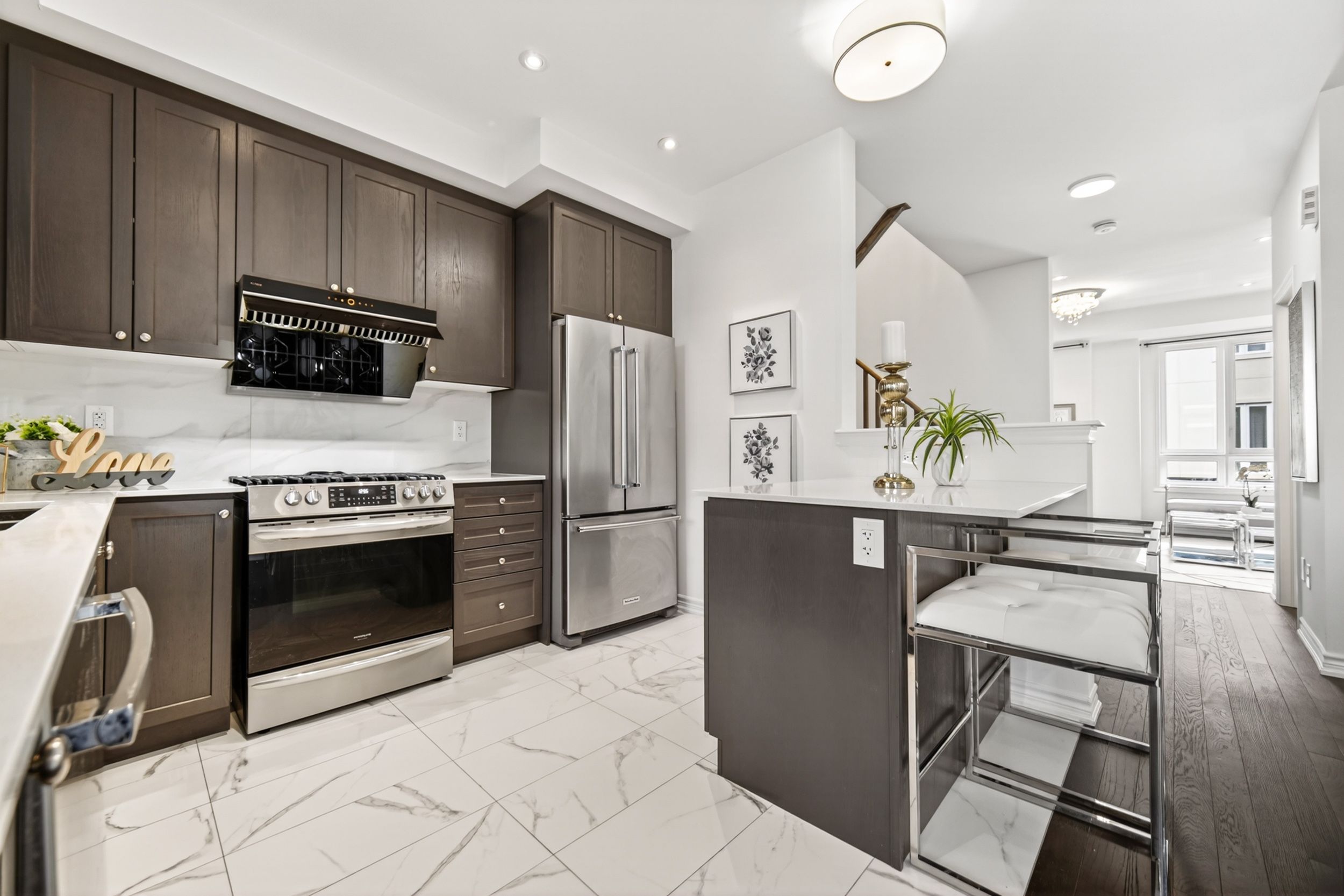 Gorgeous, warm and inviting four year old 3 bedroom freehold townhouse, flooded with natural light in the desirable wismer community. Meticulously maintained with extensive upgrades throughout: 9' high w/smooth ceiling, large kitchen with granite counter, centered island! Hardwood floor throughout, waterline to fridge, gas stove rough-in. Ceiling fixture rough-in, dining room walk out to balcony. Upgraded floor tiles, new light fixtures, pot light fixtures, all upgrade washroom, convenient visitor parking. Direct access to garage. Minutes to park, schools, plaza, restaurant, supermarket, mount joy go station, public transit & more. Top ranking donald cousens ps & bur oak ss. A must see! **extras** upgraded centre island and counter in kitchen, upgraded light fixtures, whole house water softener system installed. Potl $133. 24/month (snow removal/garbage)