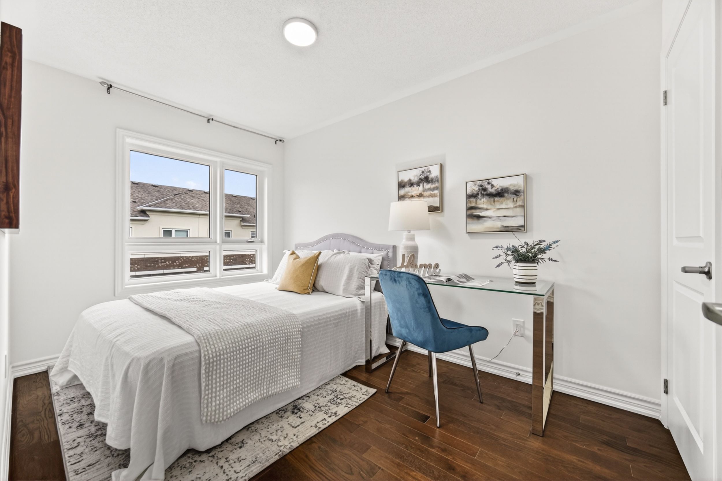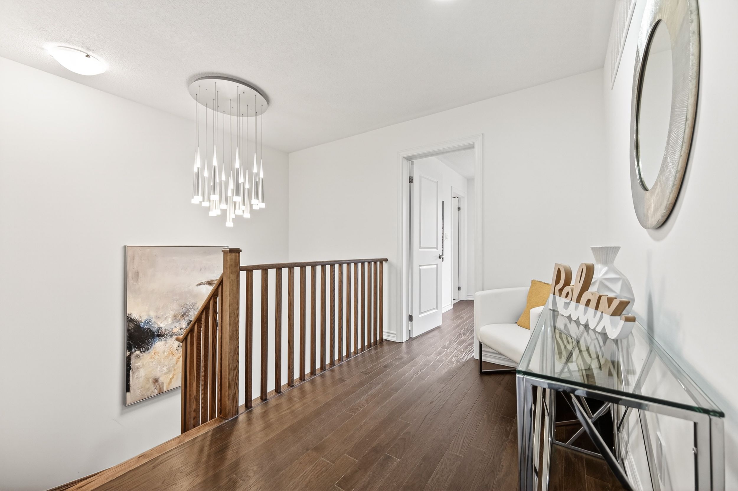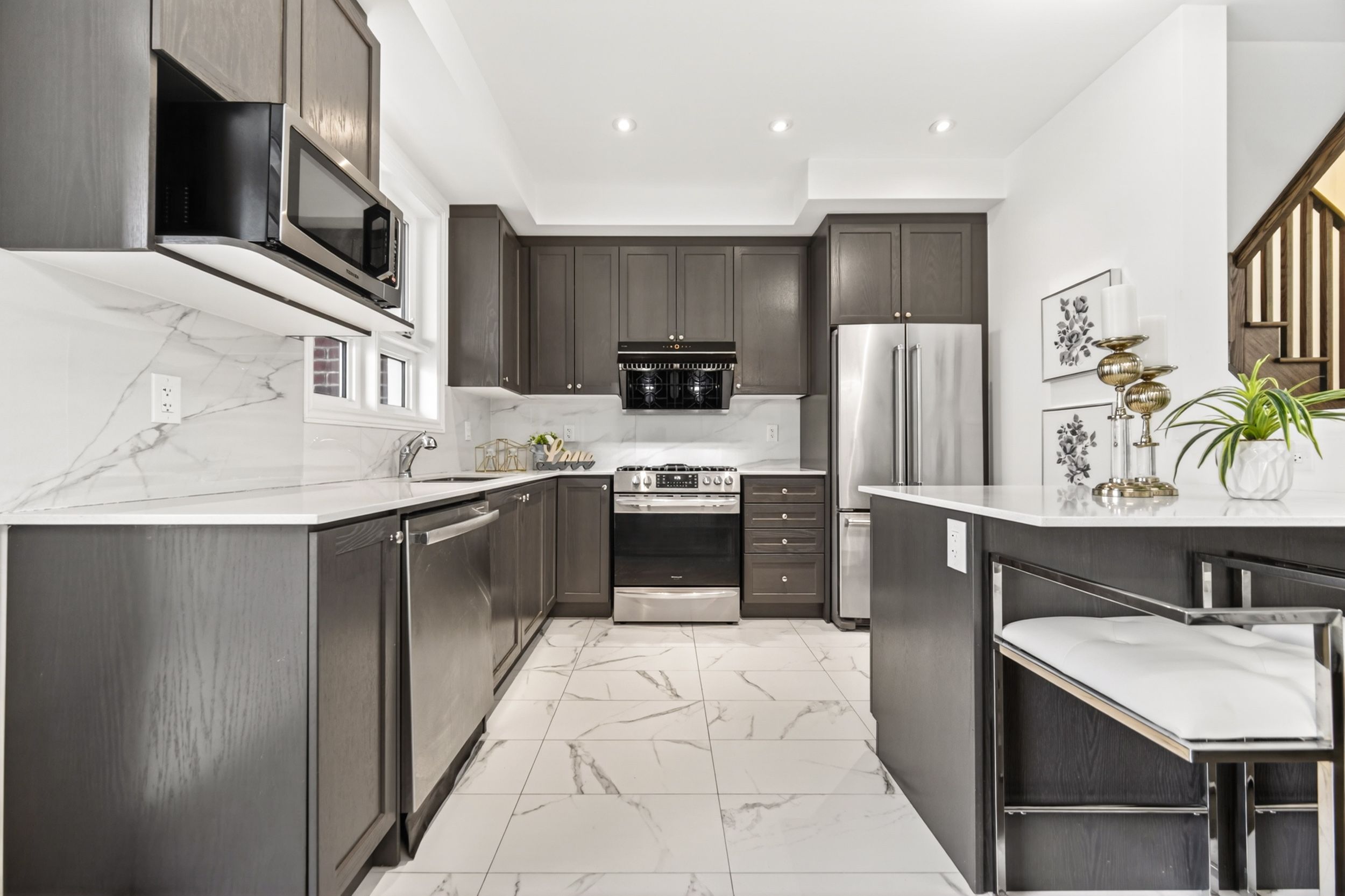Gorgeous, warm and inviting four year old 3 bedroom freehold townhouse, flooded with natural light in the desirable wismer community. Meticulously maintained with extensive upgrades throughout: 9' high w/smooth ceiling, large kitchen with granite counter, centered island! Hardwood floor throughout, waterline to fridge, gas stove rough-in. Ceiling fixture rough-in, dining room walk out to balcony. Upgraded floor tiles, new light fixtures, pot light fixtures, all upgrade washroom, convenient visitor parking. Direct access to garage. Minutes to park, schools, plaza, restaurant, supermarket, mount joy go station, public transit & more. Top ranking donald cousens ps & bur oak ss. A must see! **extras** upgraded centre island and counter in kitchen, upgraded light fixtures, whole house water softener system installed. Potl $133. 24/month (snow removal/garbage)