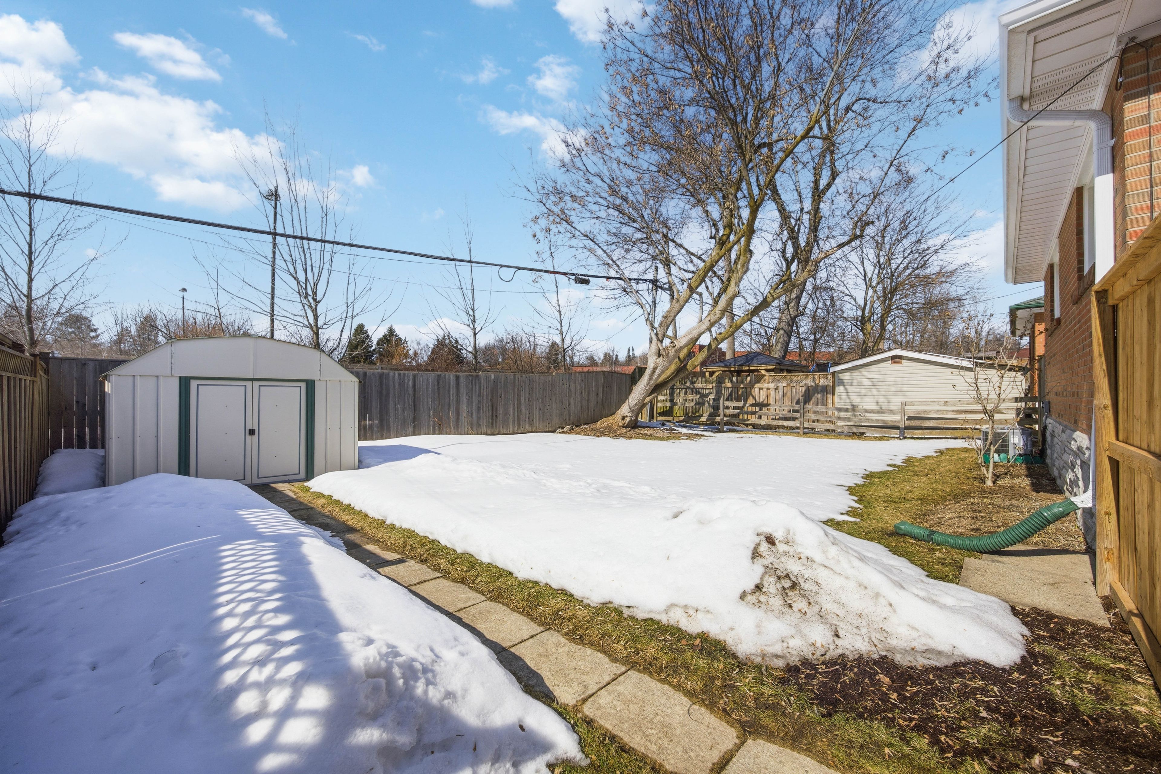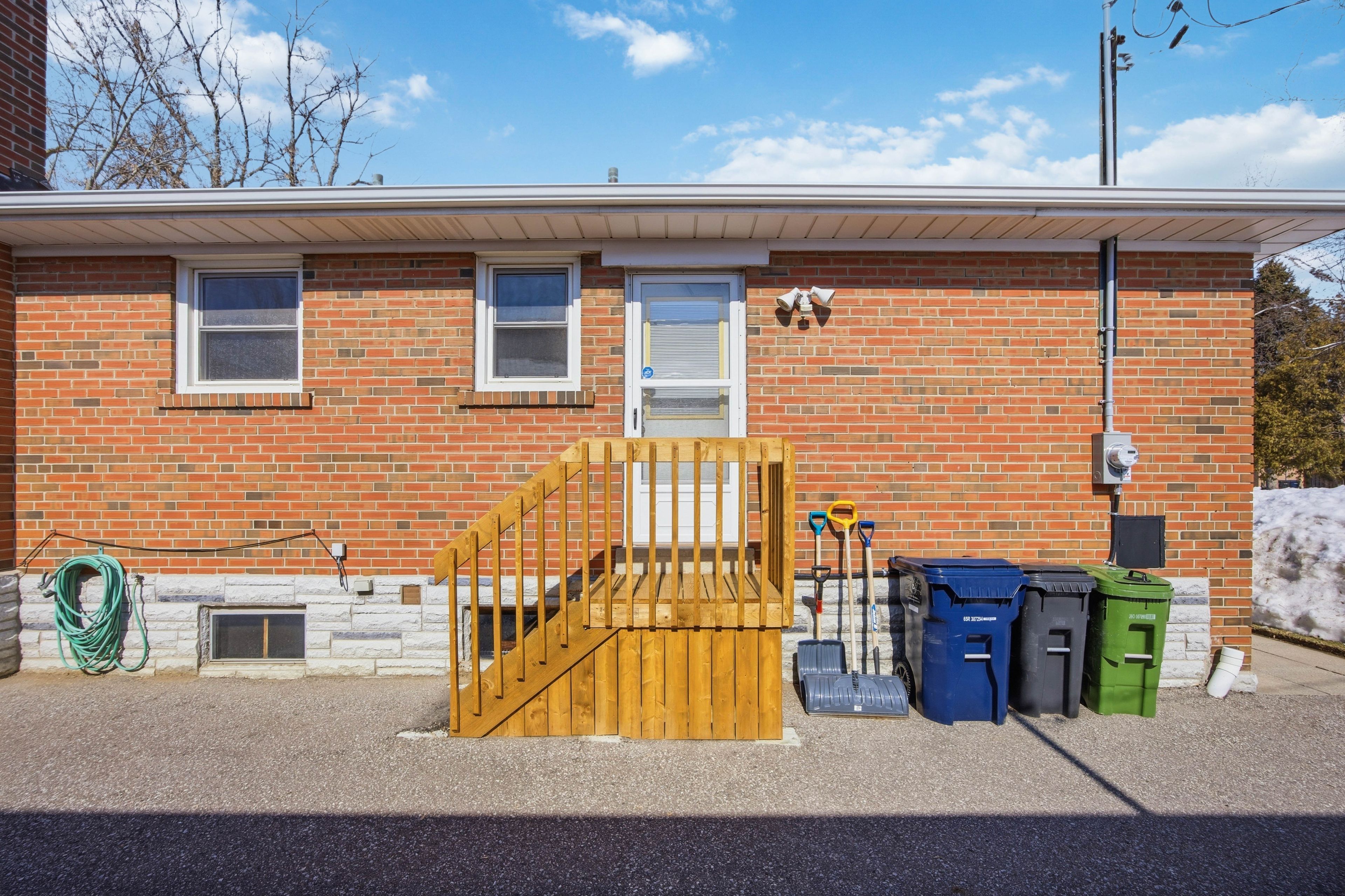 • Large fenced backyard with new wood landing and private driveway for parking.