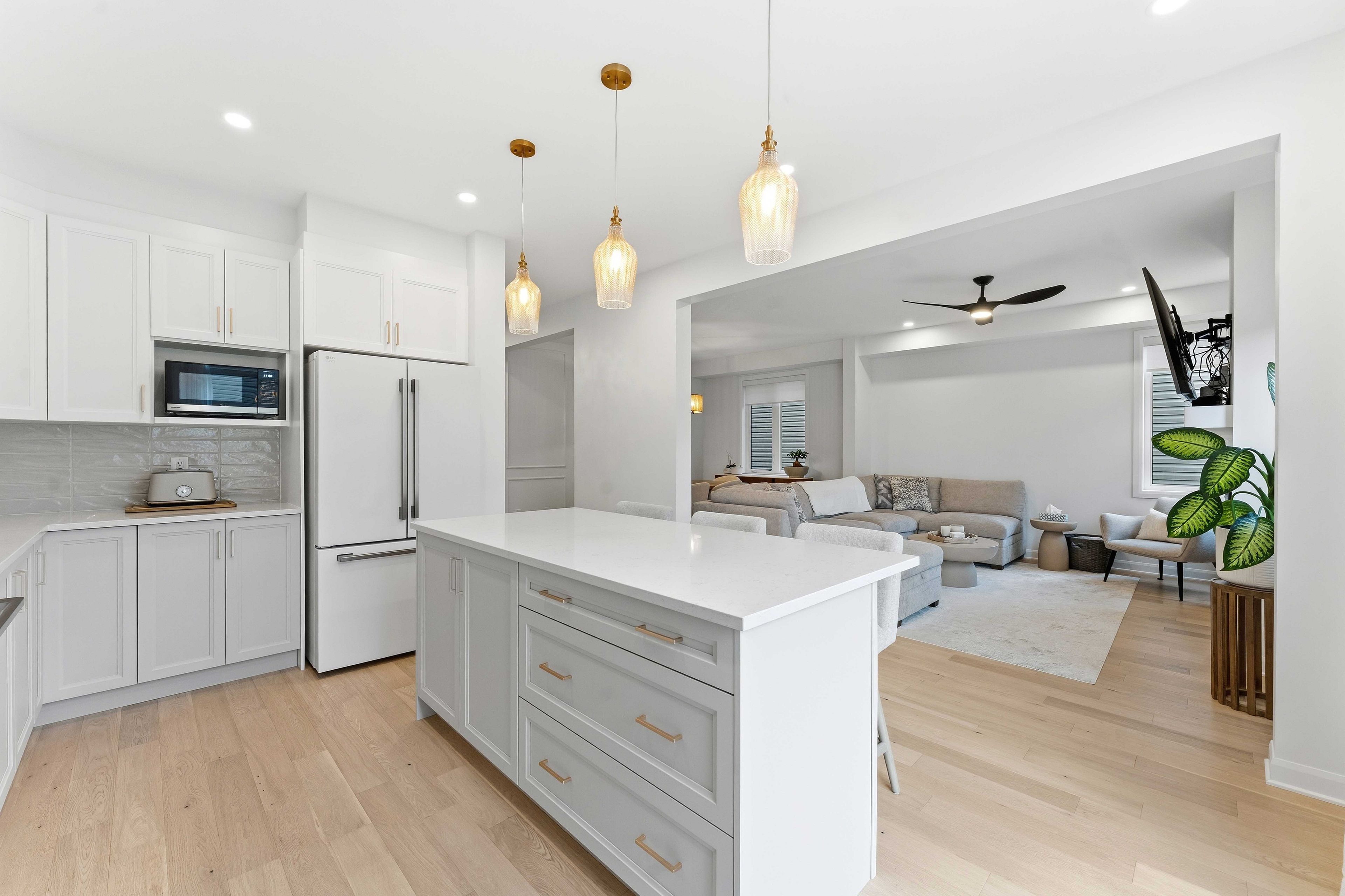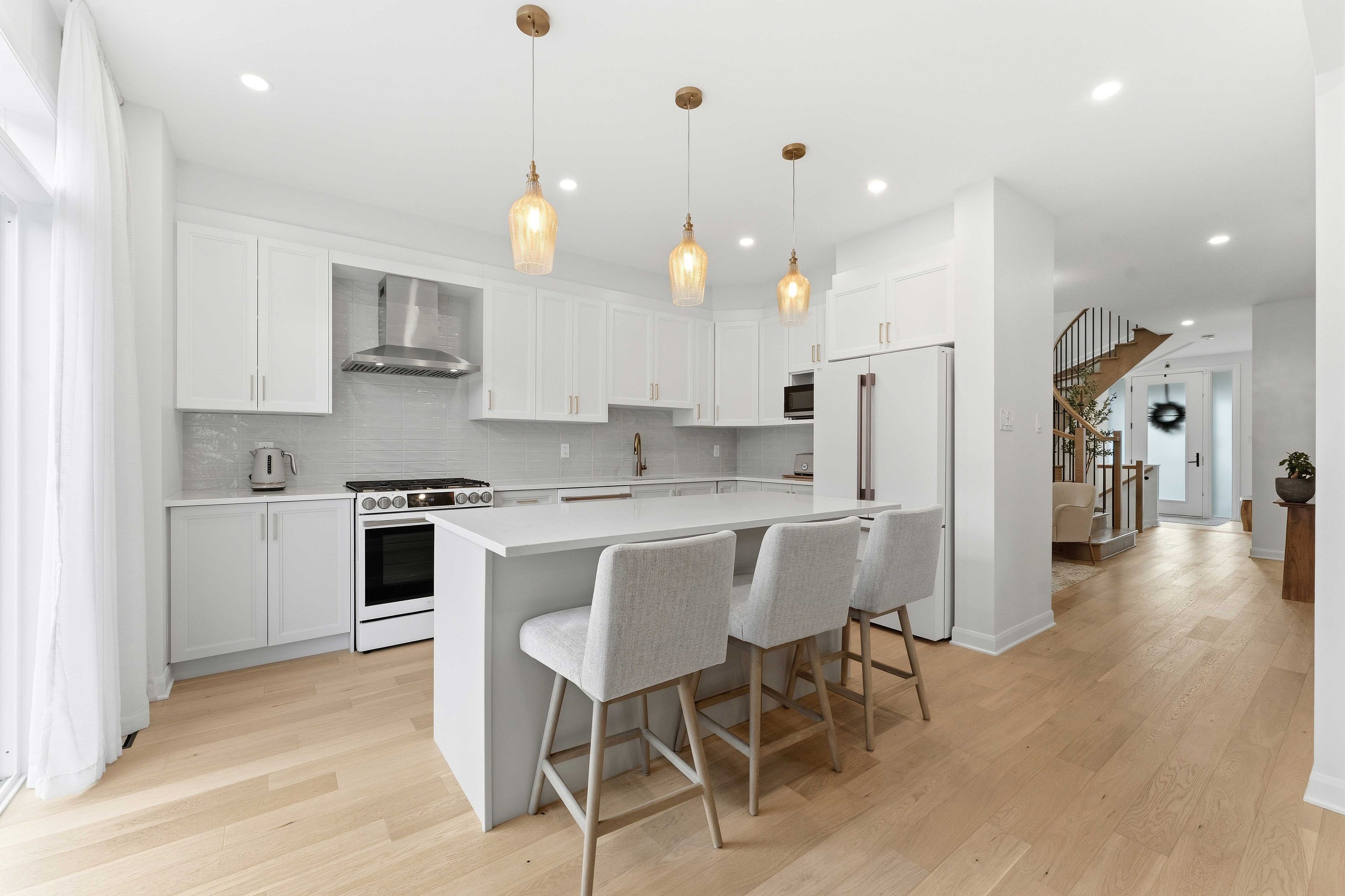 • Custom-designed kitchen featuring quartz countertops and soft-close cabinetry.