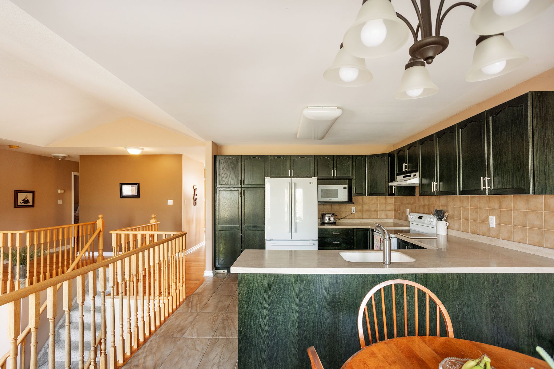 Quality-built gregor all-brick bungalow set in a highly sought-after neighbourhood, backing onto a ravine with a walkout basement designed for elevated living and effortless entertaining. This spacious 2+2 bedroom home showcases an inviting eat-in kitchen with quartz countertops, soaring vaulted ceilings over the games and family rooms, and a bright open-concept layout enhanced by spectacular two-storey ravine views that impress from the moment you step inside. The fully finished walkout basement extends your living space with a warm and welcoming family room featuring a gas fireplace, wet bar, two additional bedrooms, and a full bath-perfect for hosting guests or multi-generational living. The main level also offers a separate living room, convenient main floor laundry with inside entry from the double garage, upgraded hardwood and tile flooring, and two full bathrooms including a 5-piece ensuite. Additional features include a high-efficiency furnace, central air, central vacuum, and water softener. Ideally located close to schools, shopping, recreation, transit, and offering quick access to highway 400, this home delivers an exceptional blend of comfort, style, and natural beauty.