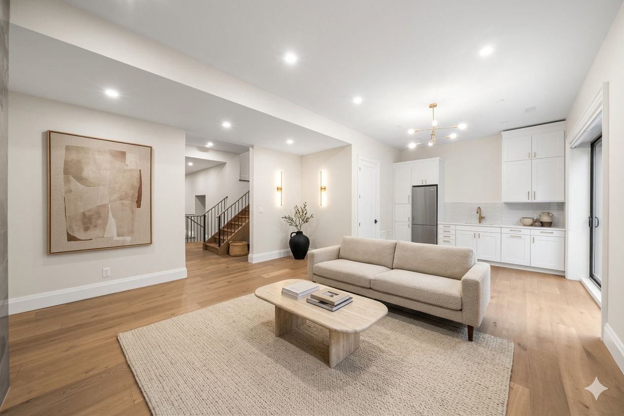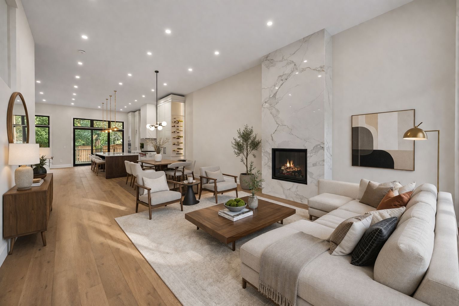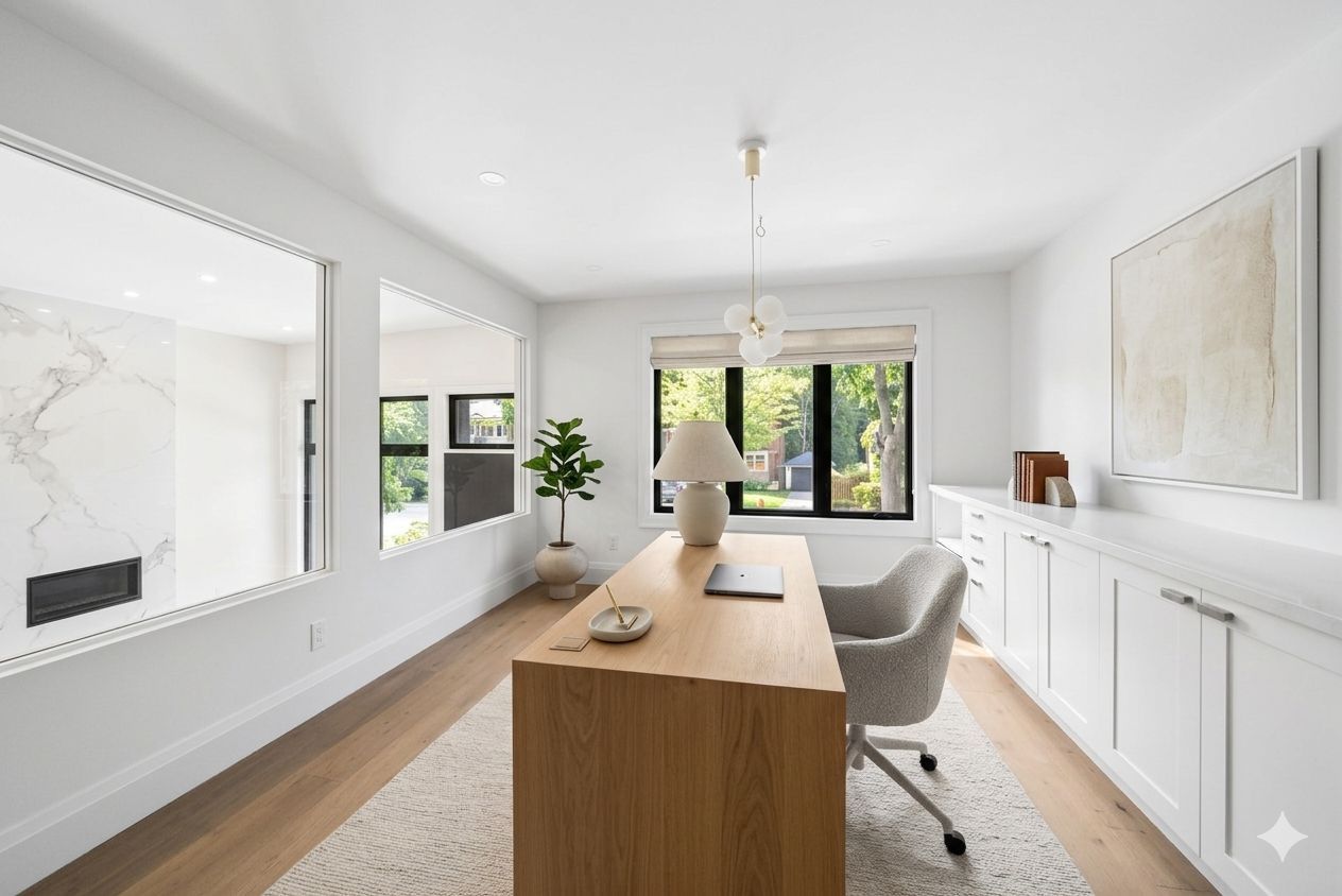 This is the kind of home that makes everyday life feel elevated. Morning light pours through oversized black-framed windows, rising to meet 12. 5-foot ceilings and casting a soft glow across wide-plank white oak floors. The kitchen anchors the space in a way that feels both striking and effortless, centred around a 14-foot island where mornings begin and everything naturally comes together. Evenings feel dialled in, with the fireplace adding warmth, the island becoming the natural gathering spot, and the space handling both family nights and a full house with ease. A bright front office offers a calm, light-filled place to work, while weekends move easily between the kitchen, the deck, and the backyard. Upstairs, the primary suite feels like a true retreat, with dual closets and a spa-like ensuite finished with a modern, elevated edge, while the additional bedrooms are well-sized and thoughtfully designed, each with its own sense of space and privacy. Downstairs adds another layer to how the home lives, with a guest or nanny suite, a theatre room for movie nights, a dedicated gym space, and plenty of storage, all finished with the same level of care as the rest of the home. The mudroom is built for real life, complete with a dog wash for muddy paws after a walk through leaside. With top-tier schools like bessborough and leaside nearby and quick access downtown via the bayview extension, the location keeps daily routines simple. Designed by rubinoff design group and offering over 4,000 square feet of finished living space, this is a home that stands out for its scale, design, and the way it lives. Some images have been virtually staged.