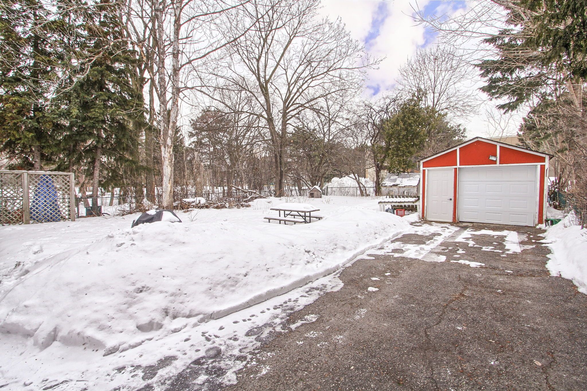 • Rare 6-car driveway and fully fenced yard with mature trees.