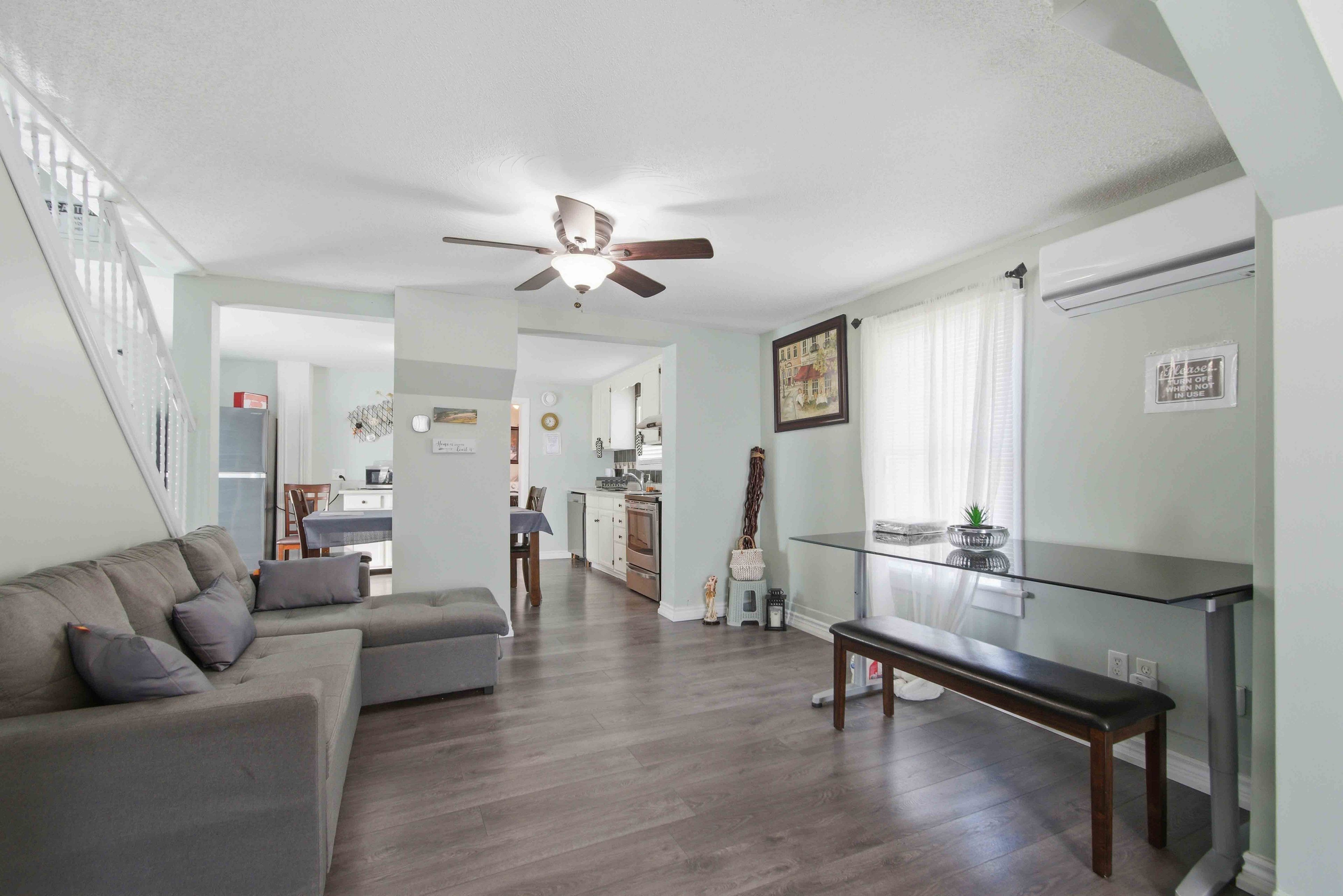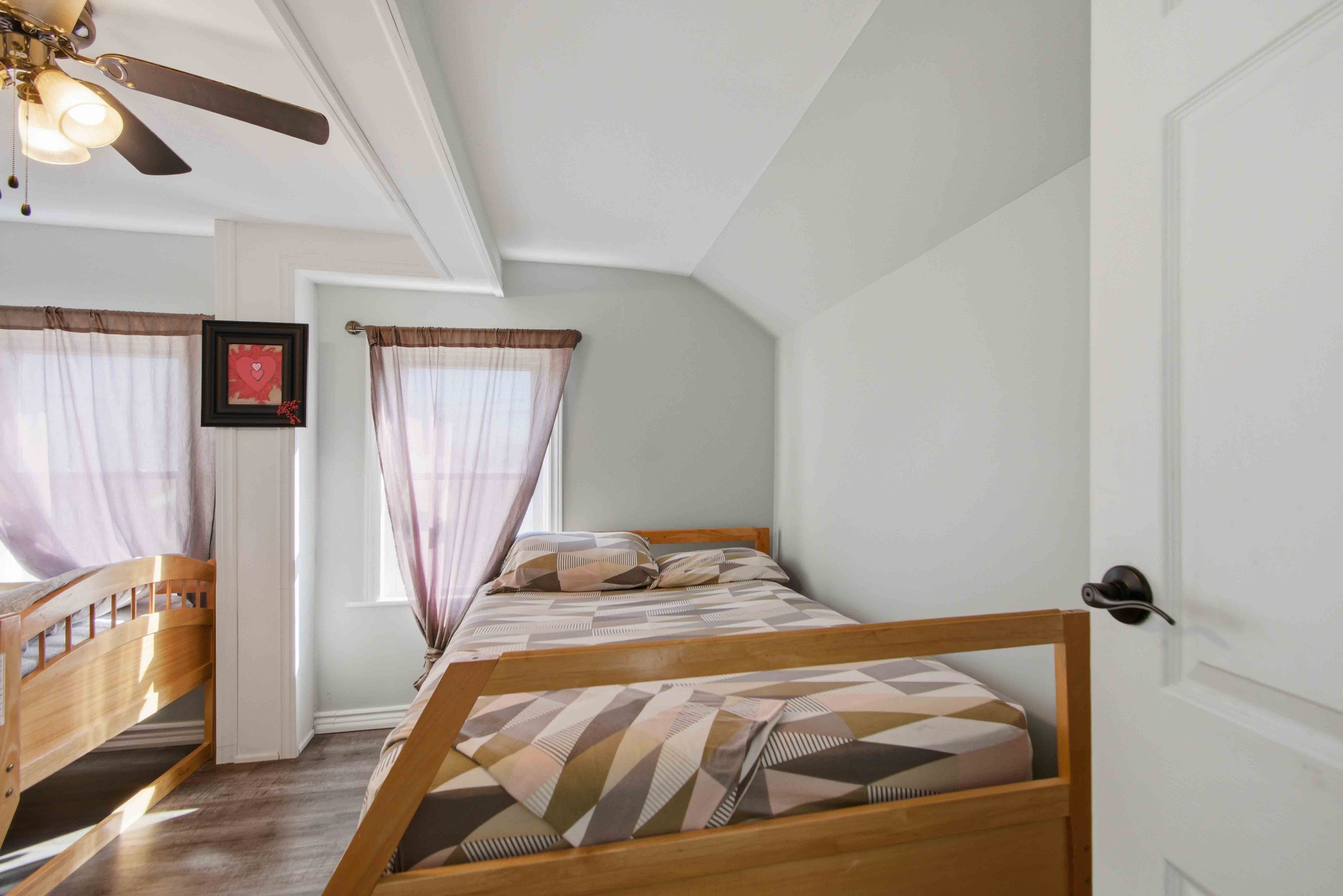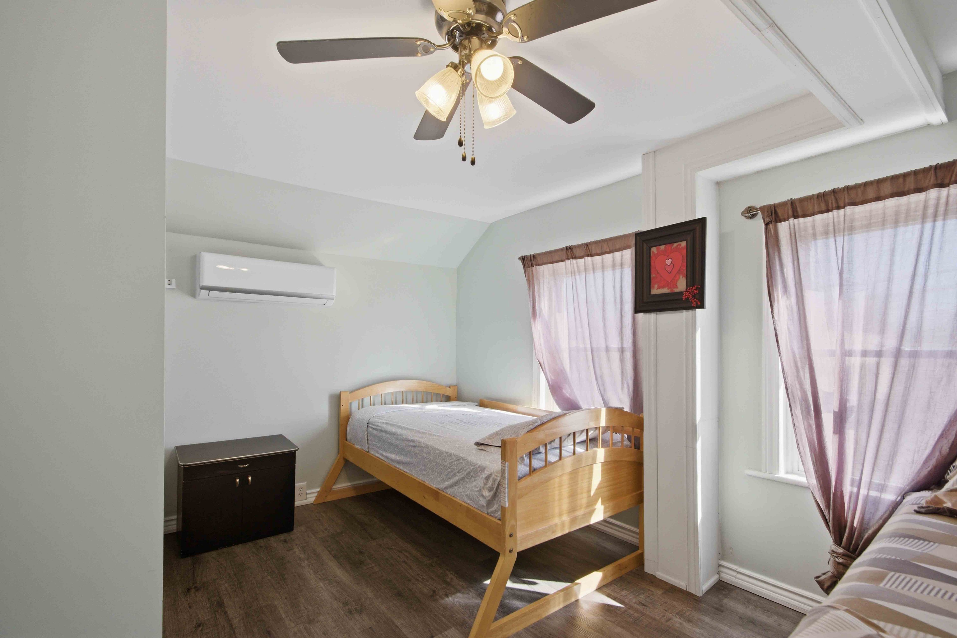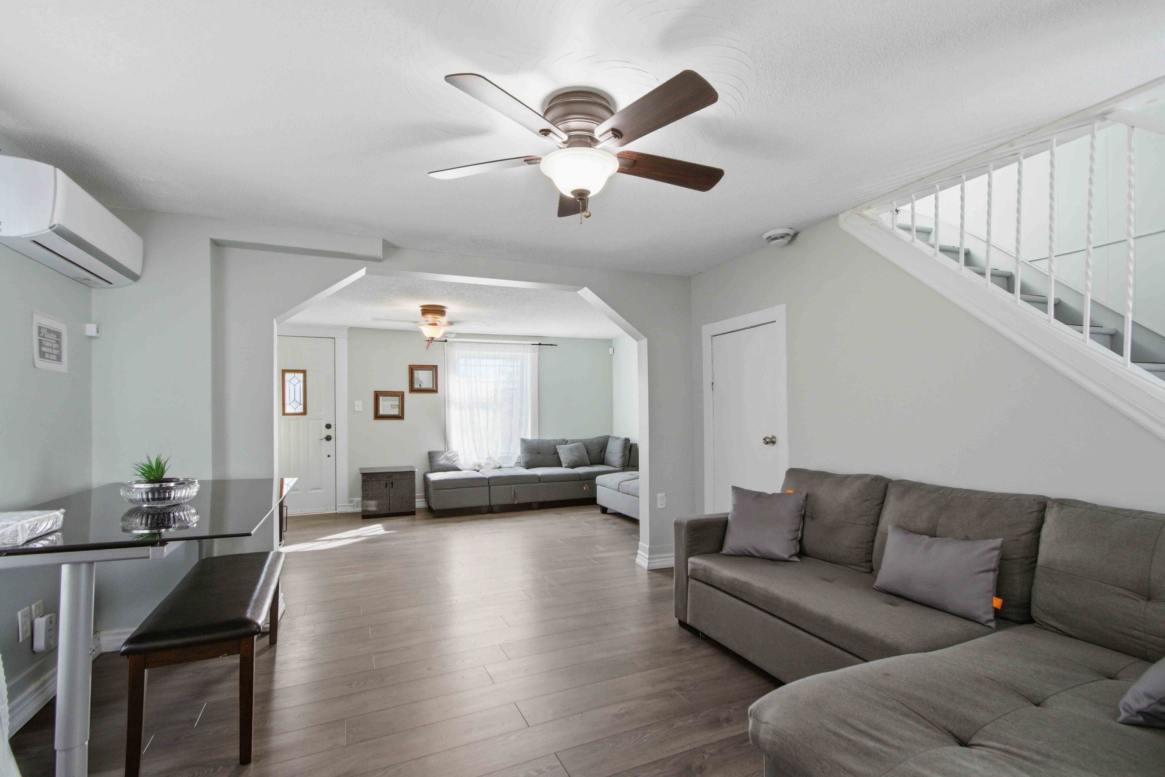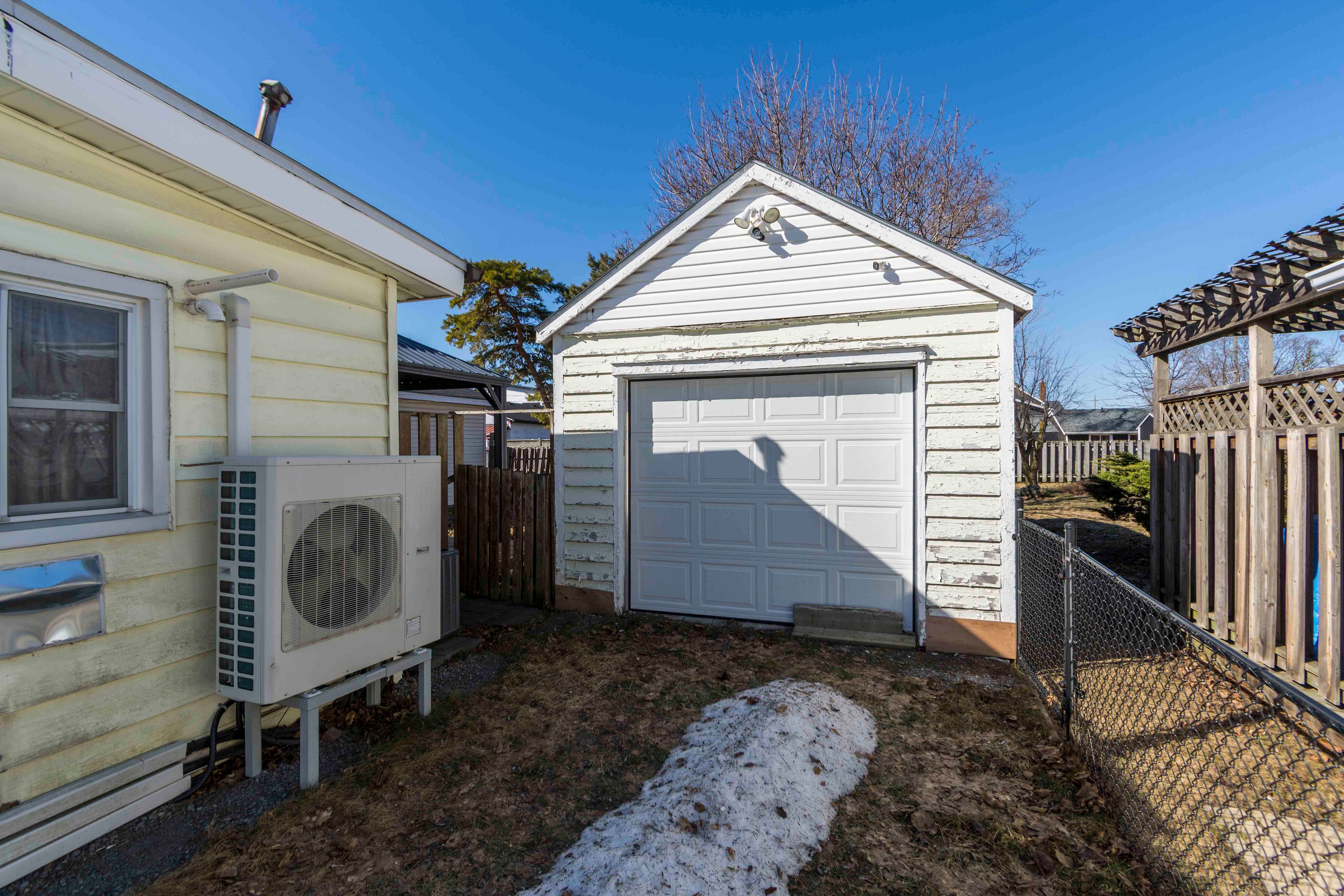 Welcome to 66 south john st, belleville-offering cozy, flexible living in the city's revitalized south end, just steps from the bay of quinte, meyers pier, victoria harbour, public boat launch, and scenic walking trails. This charming 1. 5-storey home, once a 3-bedroom and easily convertible back, features a spacious eat-in kitchen with white cabinetry that flows into a bright dining and living area, creating an ideal layout for everyday living and entertaining. Upstairs offers two generously sized bedrooms, including a freshly updated primary with potential to be reconfigured into a third bedroom, along with ample storage throughout. Enjoy year-round comfort with multiple wall-mounted heating and cooling units, updated electrical, and a well-appointed 4-piece bath on the main floor. The rear laundry/mudroom provides convenient access to a private deck overlooking a sizeable fenced yard, perfect for relaxing or hosting. A detached garage adds incredible versatility-currently used as a recreation space with potential for a hot tub or workshop-while exterior upgrades include newer eavestroughs with gutter guards and an extended driveway for ample parking. An excellent opportunity to own an affordable home in one of belleville's most up-and-coming neighbourhoods, with flexible living options and room to make it your own, with select inclusions negotiable.