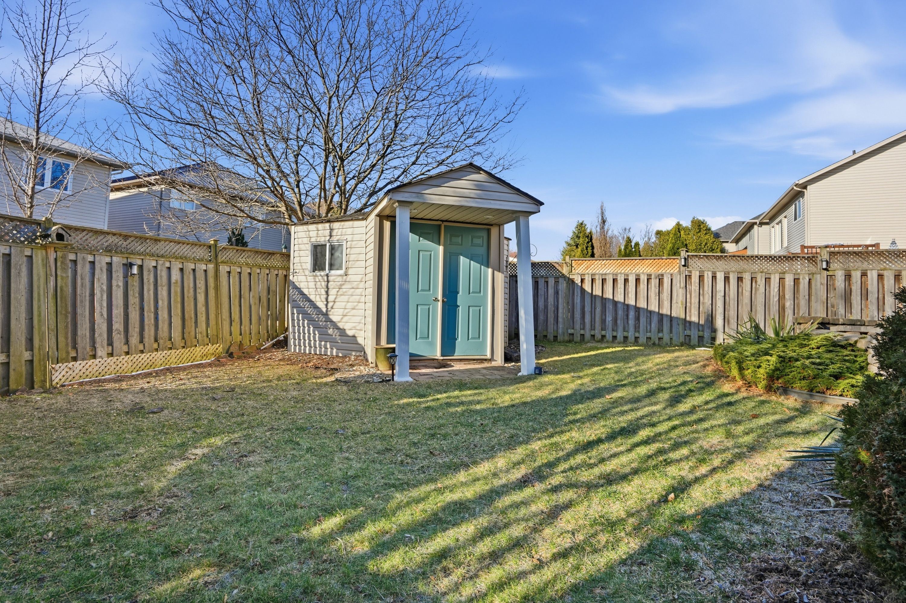 Welcome to this beautifully updated two-storey home nestled in the highly desirable meadowlands neighbourhood of ancaster. The main floor has been tastefully refreshed with an open, flowing layout designed for both everyday living and effortless entertaining. Recent improvements include updated kitchen cabinetry, countertops, flooring, and modern lighting, creating a bright and inviting atmosphere throughout the space. The kitchen overlooks a comfortable family room and sun-filled breakfast area, with walk-out access to a thoughtfully landscaped backyard featuring an interlock patio, mature gardens, and a detached garden shed-ideal for outdoor dining, relaxing, or hosting guests. A separate dining room provides additional space for formal gatherings and special occasions, while a powder room and a practical laundry/mudroom with direct garage access add everyday convenience. Upstairs offers three generous bedrooms plus a versatile sitting area that can easily function as a fourth bedroom, home office, or reading nook. The primary suite includes its own private ensuite, while a second bedroom also enjoys ensuite access. The third bedroom features a walk-in closet, providing ample storage for the family. The basement is partially finished with framing and electrical already completed, offering a head start for buyers looking to customize additional living space such as a recreation room, gym, or play area. Combining thoughtful updates, flexible living spaces, and a prime location close to parks, schools, shopping, and transit, this home represents a fantastic opportunity in one of ancaster's most sought-after communities.
