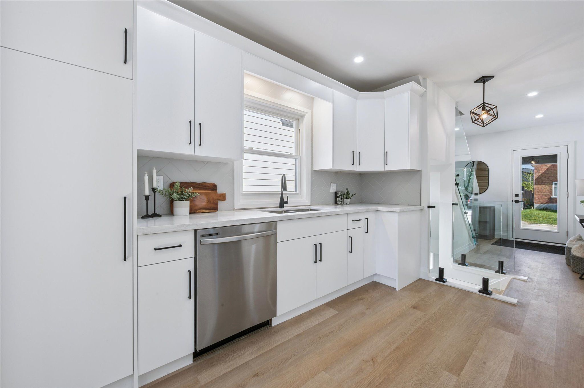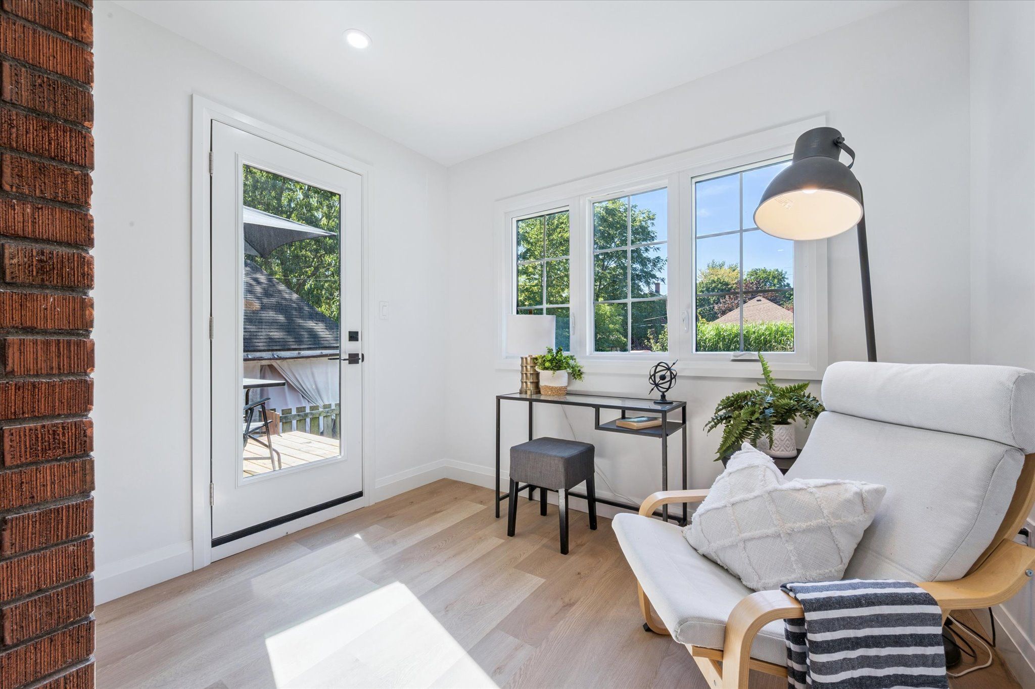 Step into this beautifully renovated 3-bedroom, 2-bathroom home offering over 1300 sqft of thoughtfully designed living space. Boasting luxurious finishes throughout, this turn-key home features durable vinyl flooring, sleek quartz countertops, and brand new appliances that blend style and functionality. The bright and airy main floor includes a spacious living room accented by a stylish barn door, and a versatile flex room just off the kitchen-perfect for a home office, playroom, or mudroom-with direct access to a new deck and a deep, fully fenced backyard, ideal for entertaining or relaxing outdoors. Upstairs, the main bath is a true retreat with a double vanity, elegant fixtures, and a large walk-in glass shower. The modern glass railing adds an open, contemporary feel to the staircase and upper level. Downstairs, the partially finished basement provides additional living space-great for a rec room, gym, or guest area. Located in one of stratford's most desirable neighbourhoods, this home blends timeless charm with modern updates-move in and enjoy! Renovations (2024-2025)