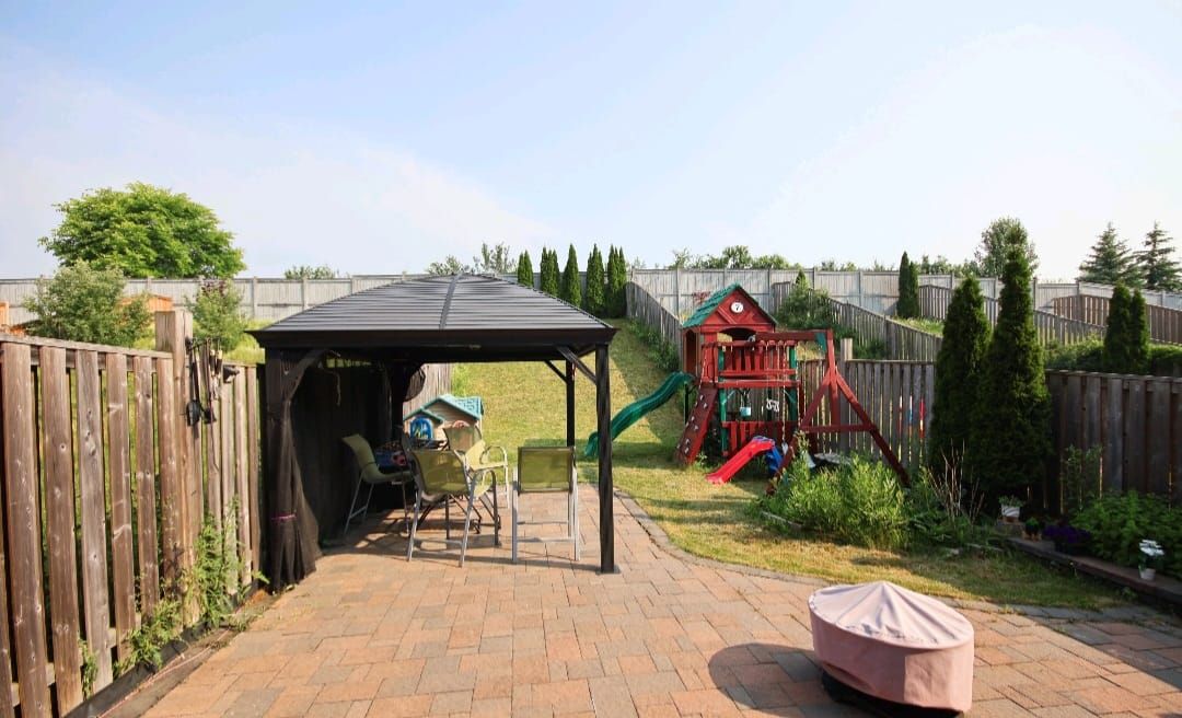 Beautifully upgraded 3-bedroom, 3-bathroom semi-detached home in the highly desirable tribute north ajax hamlet community! This stunning home offers a functional layout with elegant hardwood flooring on the main level, an oak staircase with iron pickets, and a modern kitchen featuring stainless steel appliances, pot lights, and a bright breakfast area with walk-out to a spacious backyard perfect for entertaining. The primary bedroom features a private 4-piece ensuite retreat. Enhanced with partial interlock in the driveway, side yard and backyard, plus a newer furnace (2021). Ideally located close to excellent schools, parks, golf, recreation centre, shopping, transit, and minutes to highways 401 & 412 - an exceptional opportunity to own in one of north ajax's most sought-after communities. Jacuzzi in master bedroom, handicap ramp in backyard.