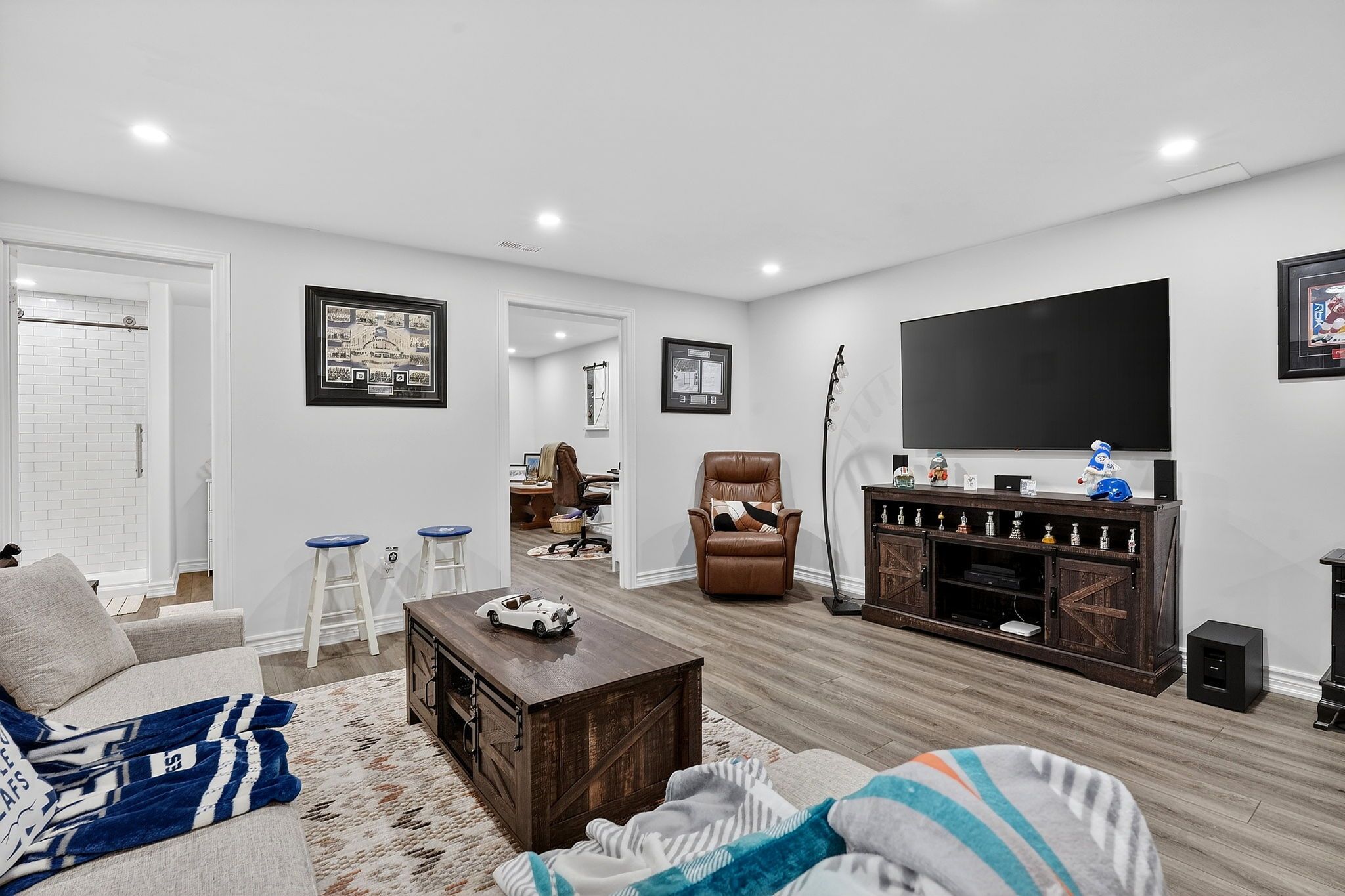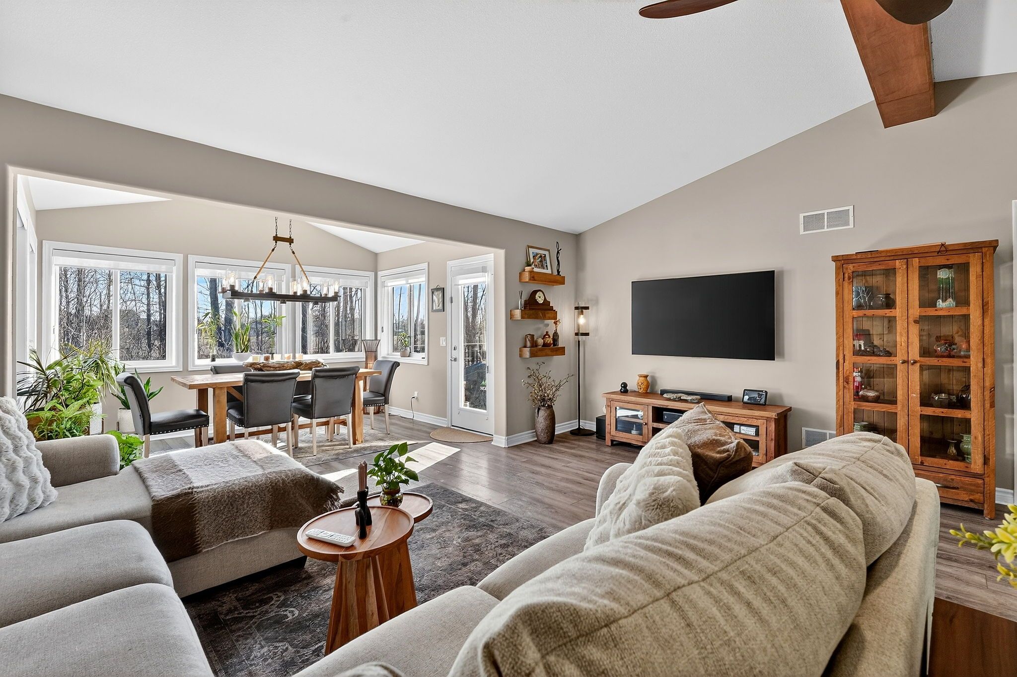 • Spacious main-floor layout with vaulted ceilings and extra room.