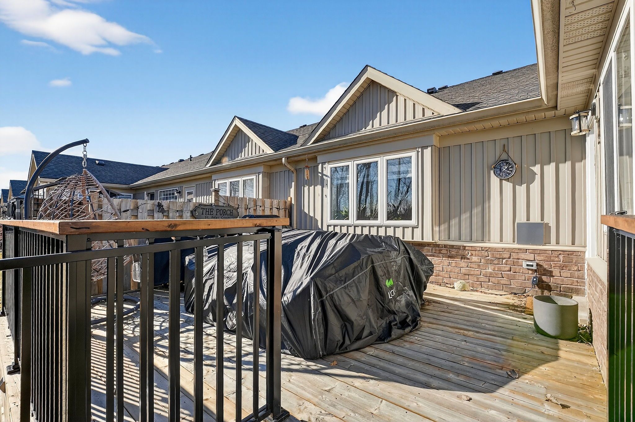 • Private deck overlooks green space and wildlife, providing a serene outdoor experience.
