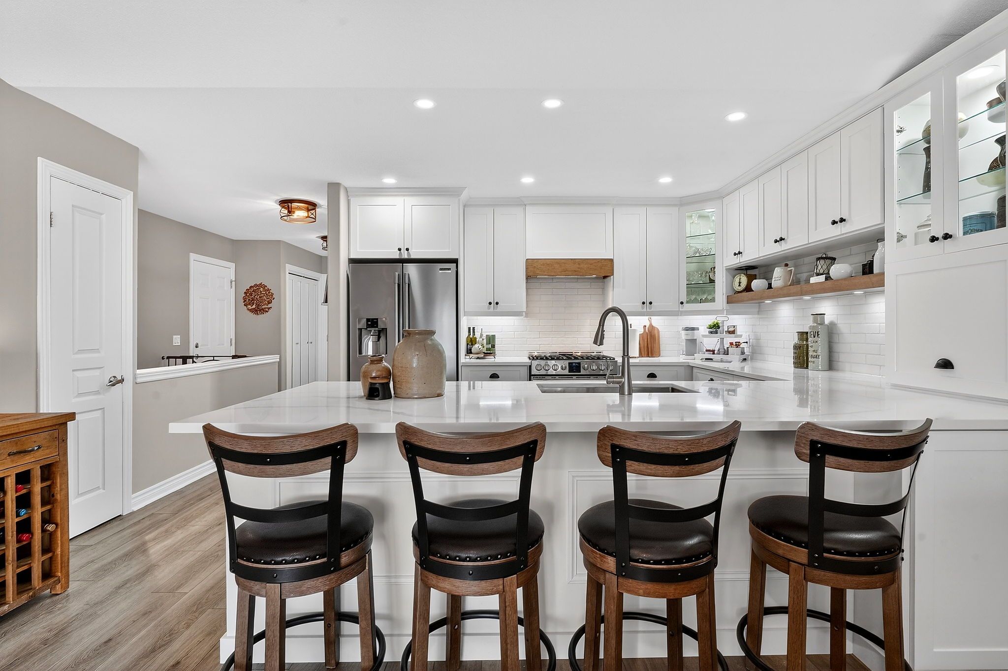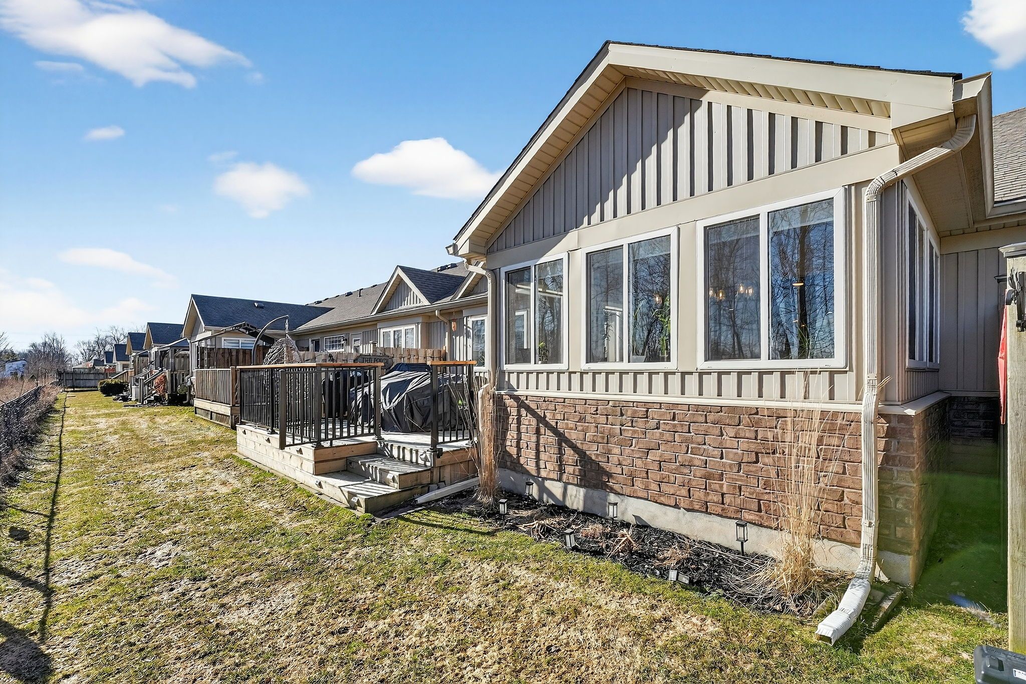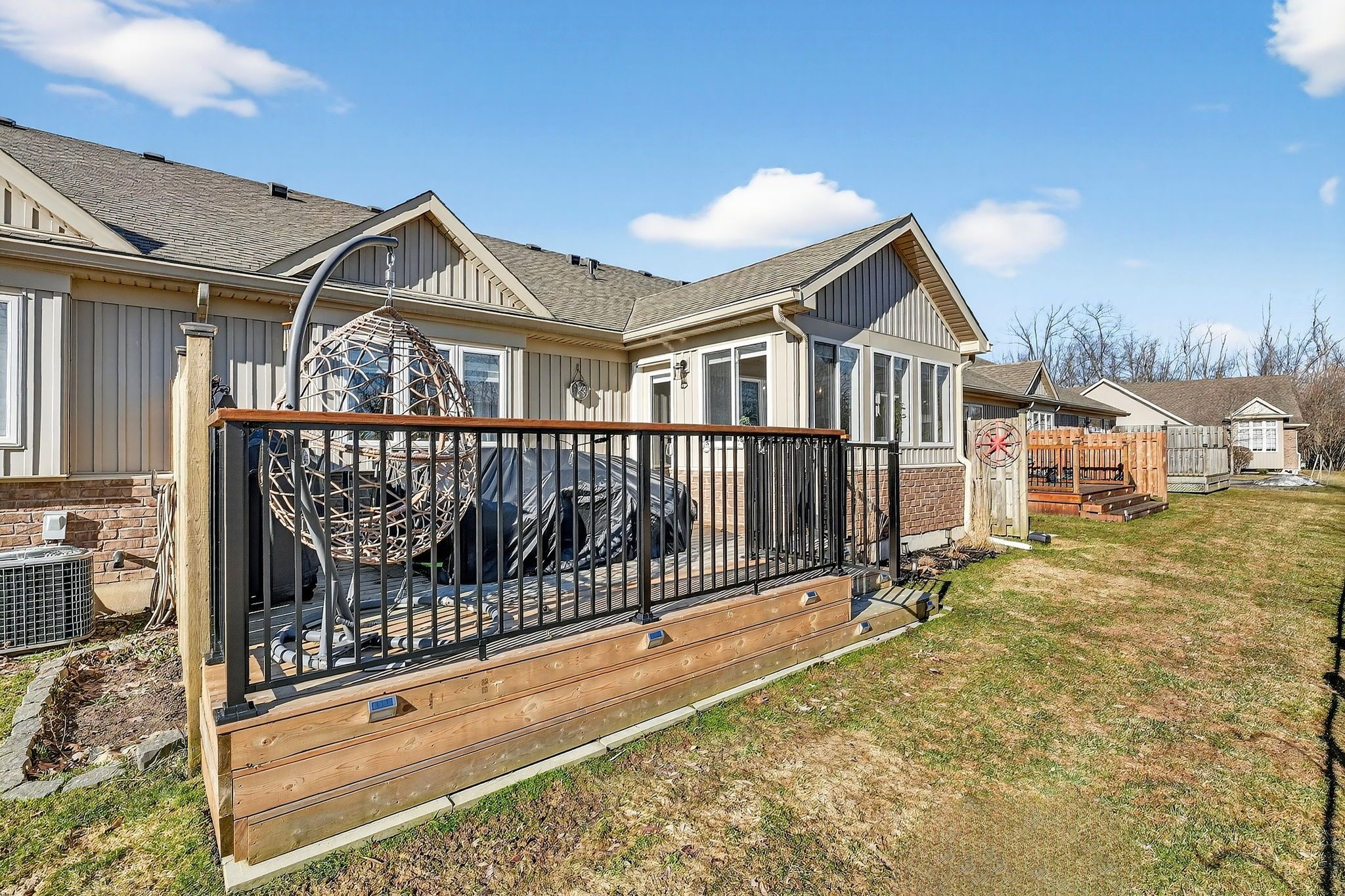 Say hello to 9 - 660 albert street. This is what retirement is supposed to look like. A beautifully finished bungalow townhouse where the lawn gets cut, the snow gets shoveled, the eavestroughs get cleaned, and you have absolutely nothing to do about it. That's not a selling feature - it's the whole point. Inside, the brand new kitchen is a showstopper - white cabinetry, wood accents, clean lines, the kind of finish that makes you want to cook. Vaulted ceilings with a new faux wood beam, main-floor primary bedroom, main-floor laundry, and an additional room most units in this complex simply don't have. The fully finished basement adds nearly 1,000 more square feet of living space - family room, third bedroom, office, and a bar area. Out back, the oversized private deck looks out over a greenspace buffer with a stormwater pond beyond it. Trees, water, and only wildlife as rear neighbours staring back at you. Quietly spectacular. Condo fees cover water, building insurance, roof, windows, doors, pest control, and full outdoor maintenance. You're not paying for a gym you'll never use. You're getting a life with a shorter to-do list. Book your private showing today.