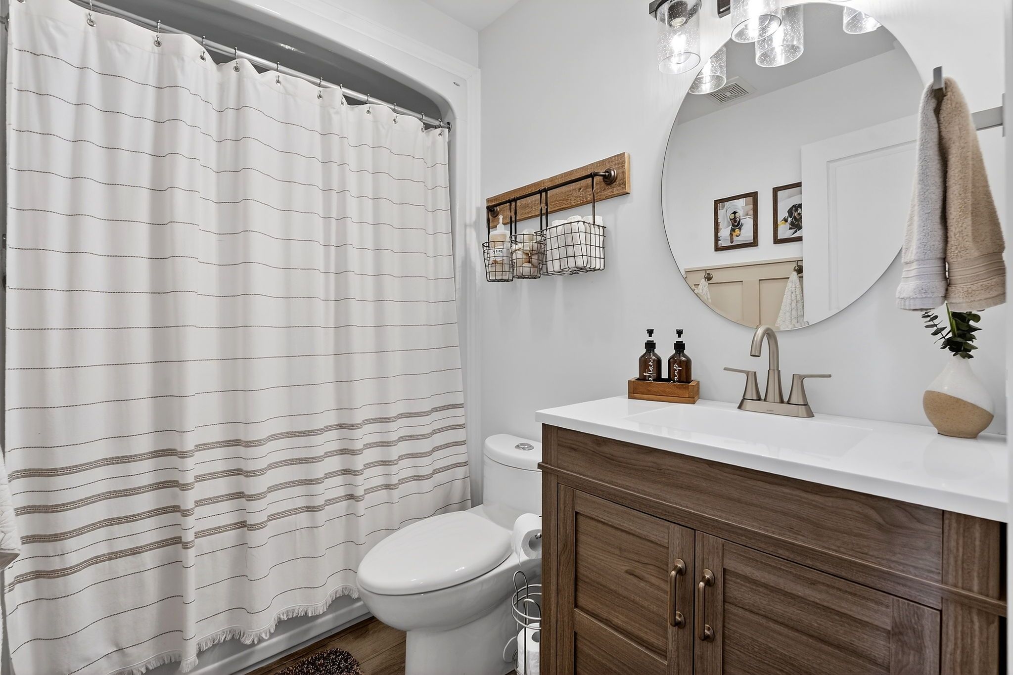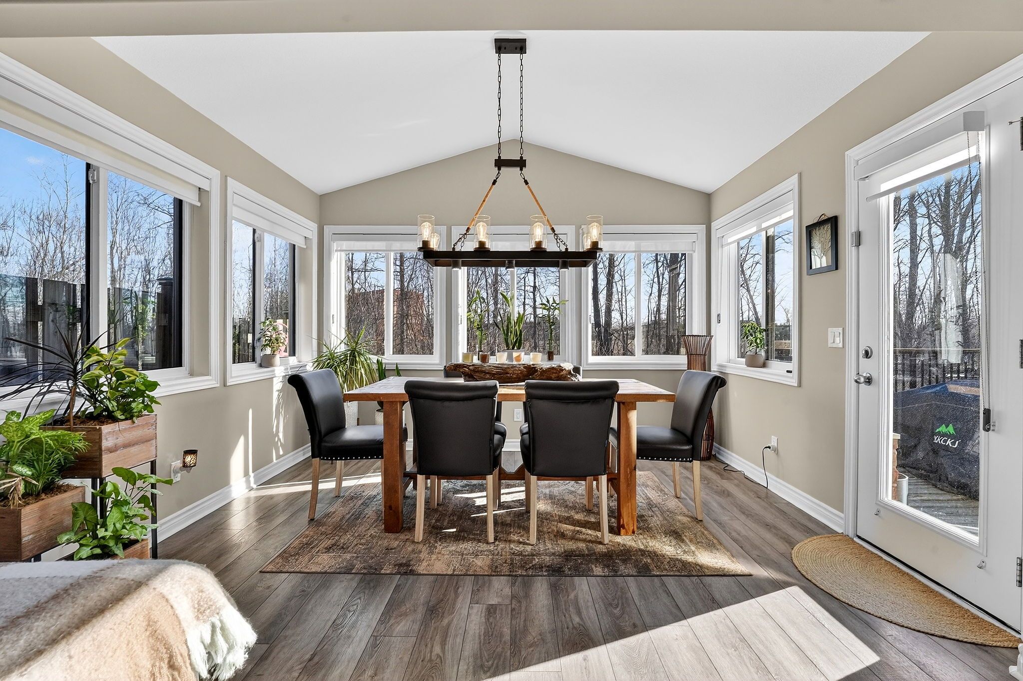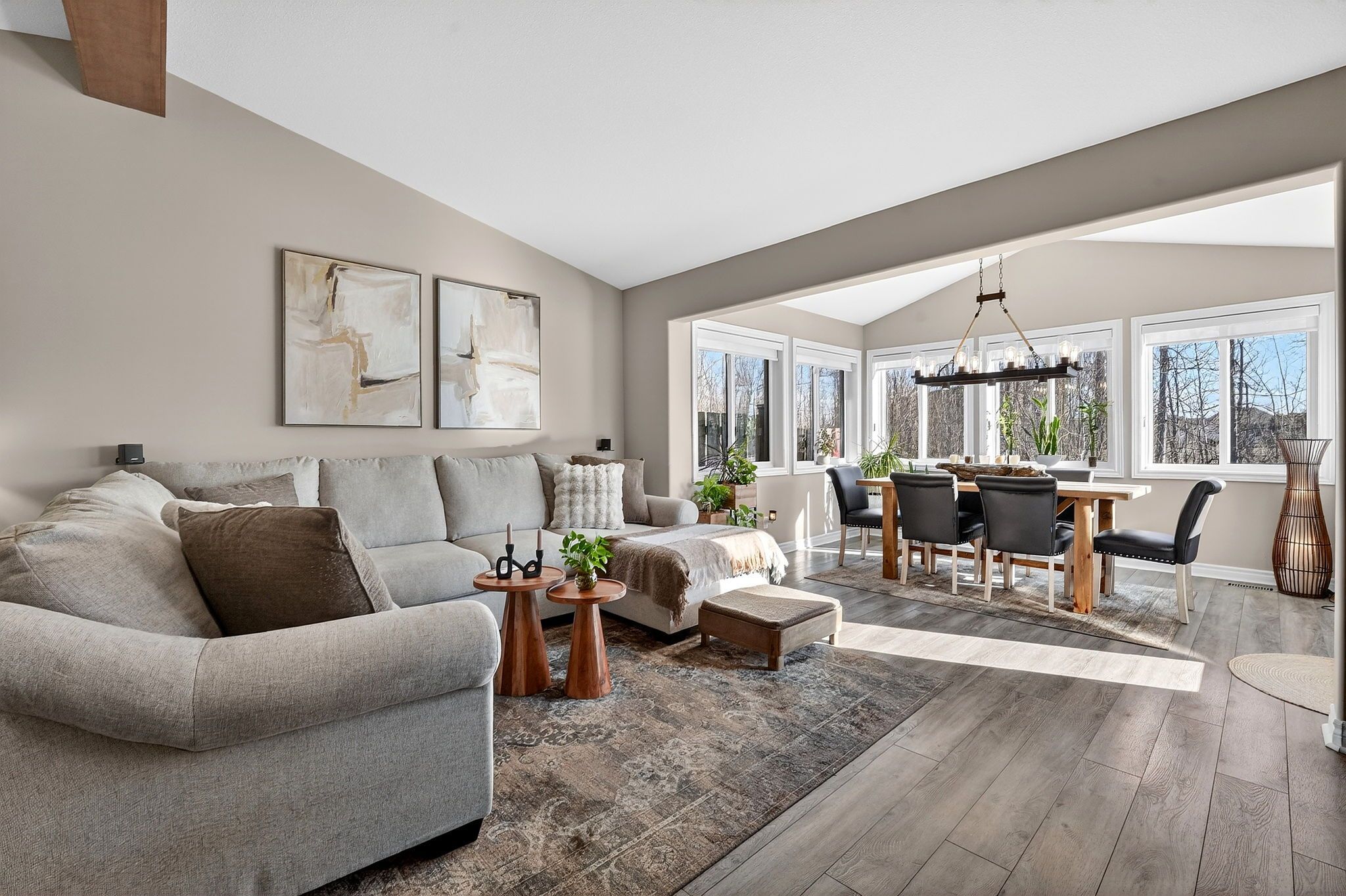 • Vaulted ceilings with a stylish new faux wood beam.