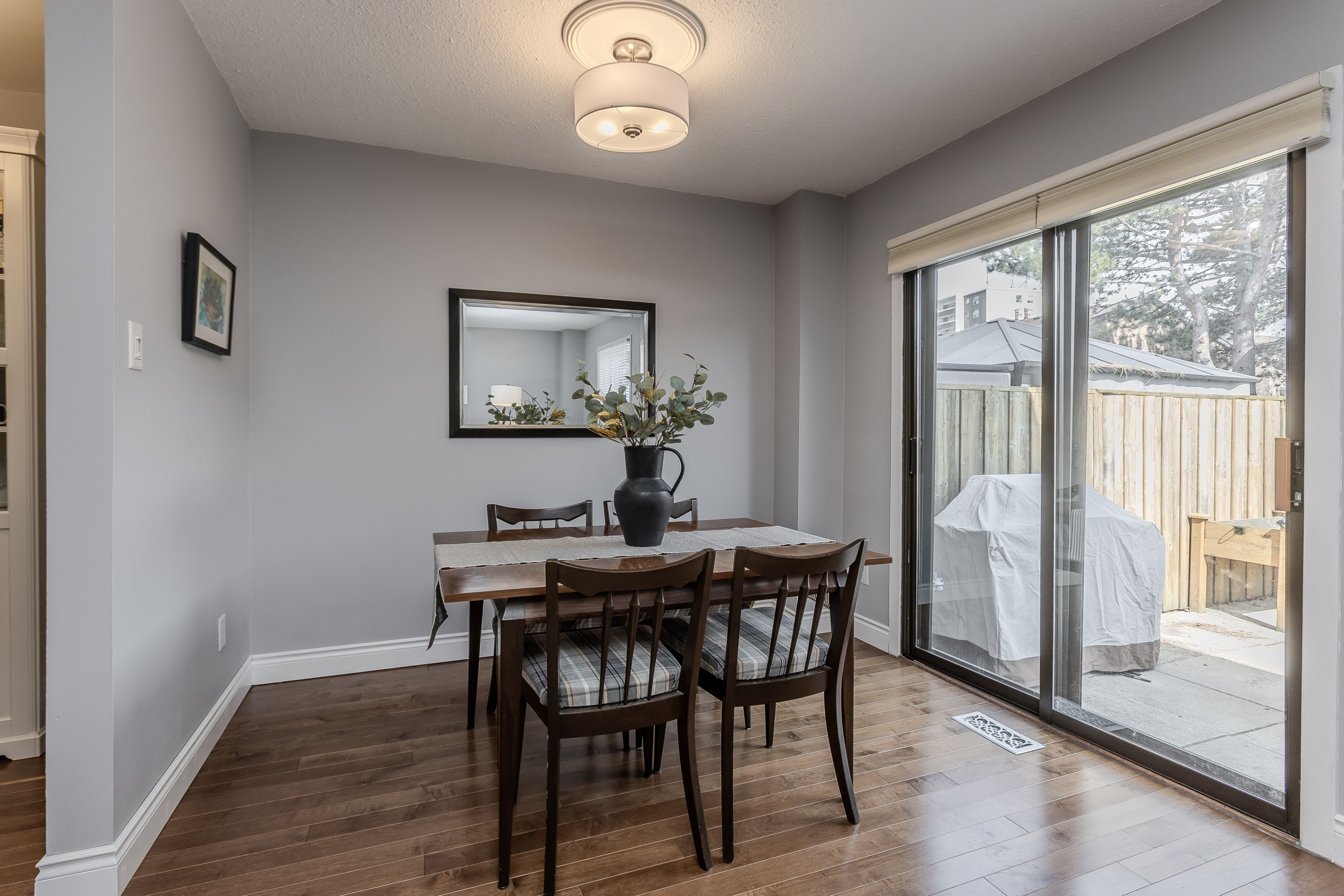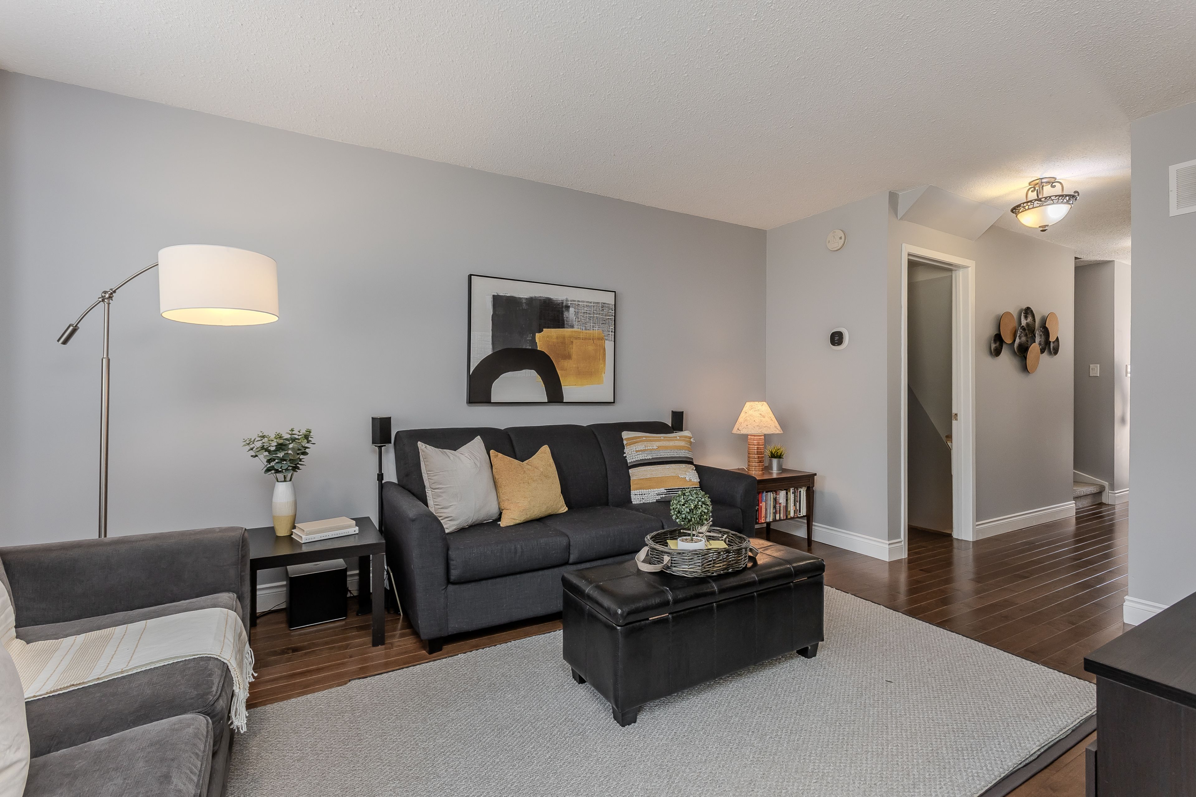 Welcome to this beautifully maintained condo townhome nestled in the heart of south burlington-an ideal opportunity for new families seeking comfort, convenience, and a true lifestyle location. Offering 1704 sq ft of total living space, this home is perfectly positioned just minutes from the lake, vibrant downtown, parks, schools, and all day-to-day amenities, making everyday living effortless. From the moment you arrive, you'll appreciate the home's charming curb appeal and inviting presence. Step inside to a bright and freshly painted main floor, where rich hardwood flooring flows throughout and large windows fill the space with natural light. The open-concept living and dining area creates a warm and welcoming atmosphere, perfect for family time or entertaining guests, with a seamless walkout to the backyard for easy indoor-outdoor living. The kitchen has been thoughtfully updated with newer lower cabinetry, a new countertop, and stainless steel appliances-offering both functionality and style. A convenient 2-piece powder room with updated flooring and vanity completes this level. Upstairs, you'll find newer carpeting (2020) and three well-sized bedrooms, including a spacious primary retreat. The 4-piece main bathroom features a large vanity, perfect for busy family mornings. The fully finished lower level extends your living space even further, complete with newer carpeting (2020) and a large, versatile rec room-ideal for a kids' play area, media room, home gym, or additional family lounge. Step outside to your private, fully fenced backyard featuring a concrete patio and gate access to a common area-perfect for kids and pets to enjoy. A fantastic opportunity to own a move-in ready home in a sought-after, family-friendly community with unbeatable lifestyle convenience!
