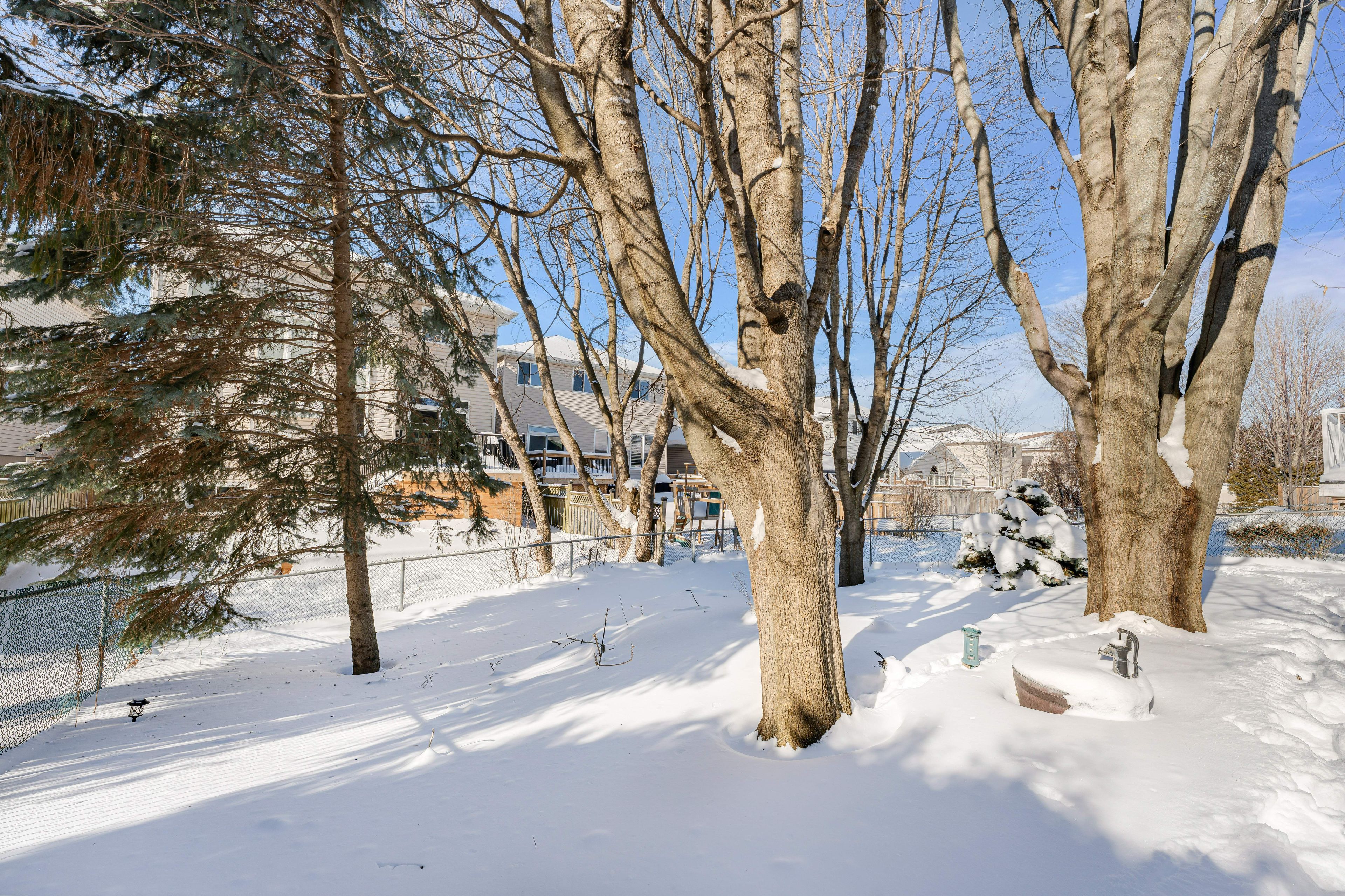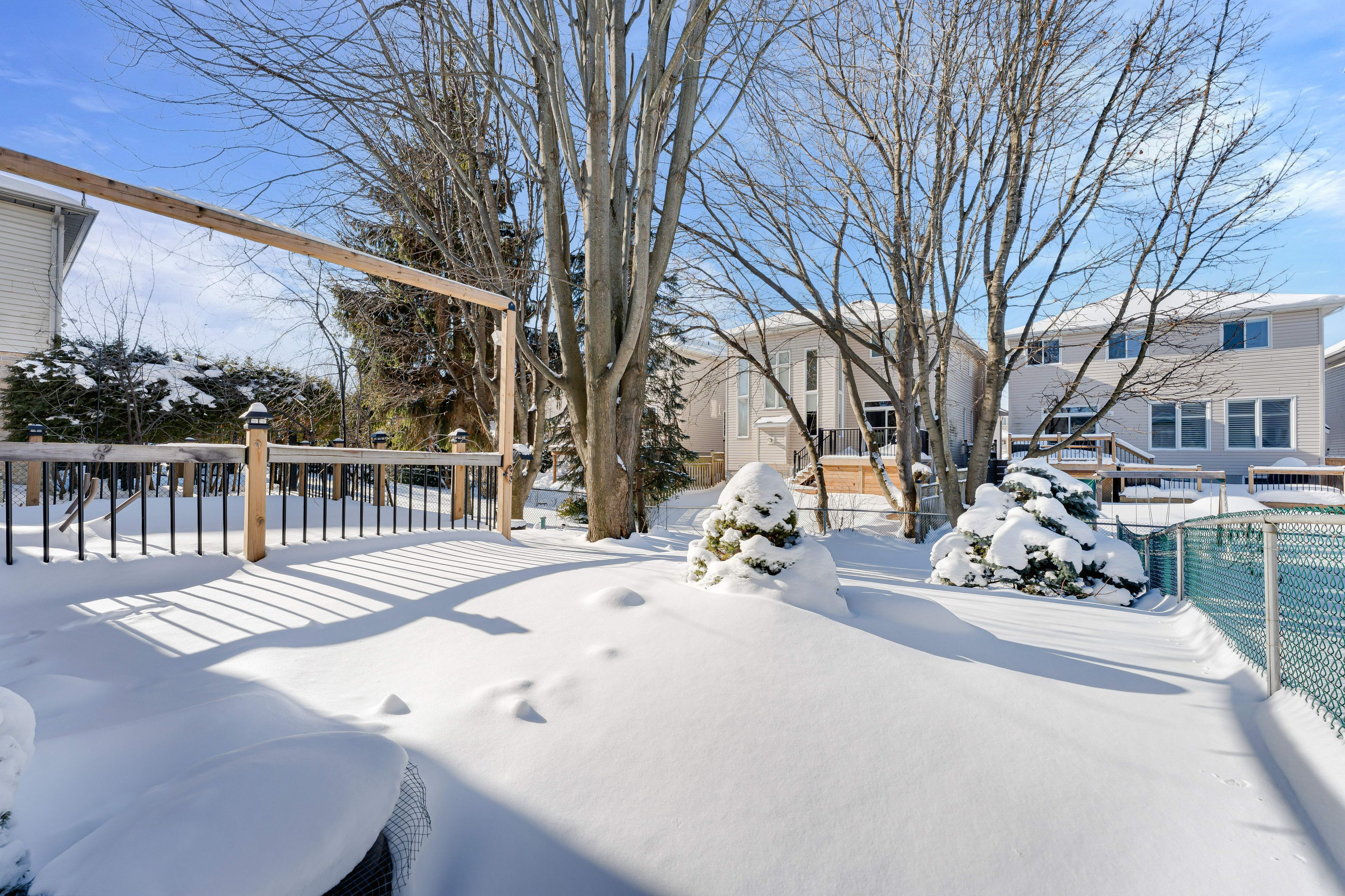 • Backyard oasis featuring a newer deck, gardens, and water features.