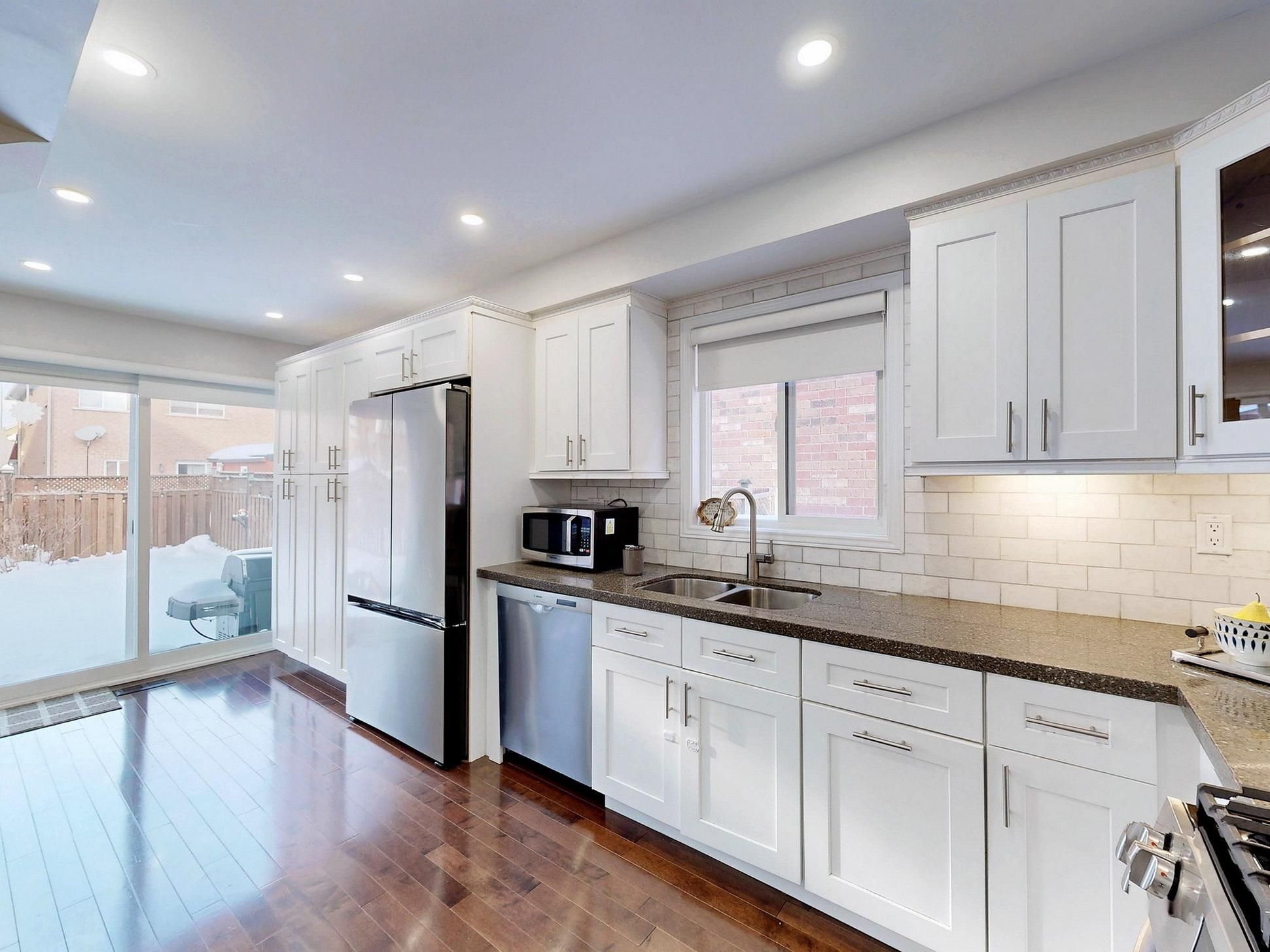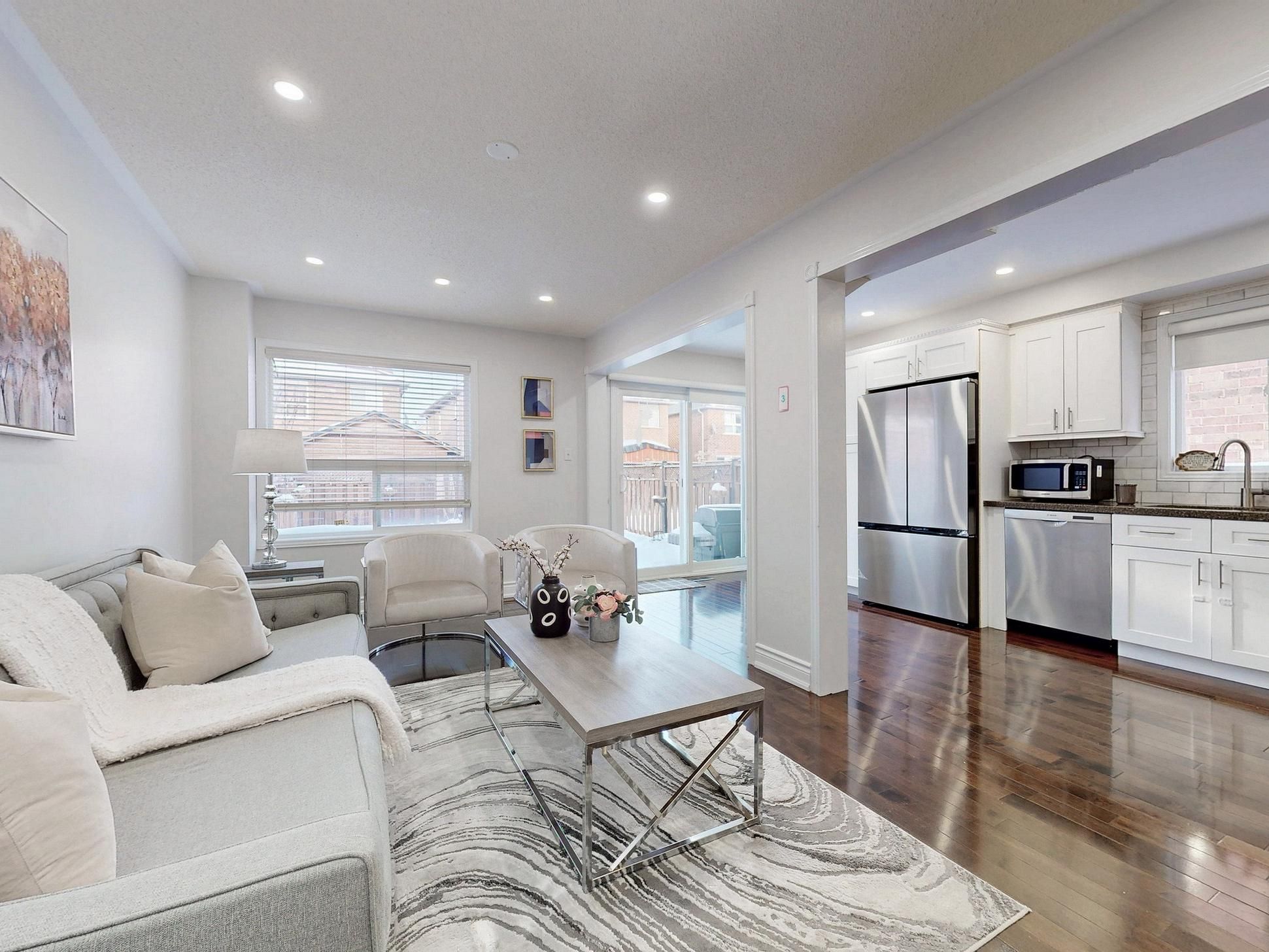 Very bright and spacious 4-bedroom semi-detached home offering approximately 1,900 sq. Ft. Of living space. This home features a functional open-concept layout with four generously sized bedrooms and numerous upgrades throughout. Highlights include a wood staircase with iron pickets, new garage door, concrete walkway, and pot lights. The fully renovated kitchen showcases granite countertops, subway tile backsplash, and stainless steel appliances, including a gas stove. Additional upgrades include a new washer and dryer, hardwood flooring on the main level, and laminate flooring in all bedrooms-no carpet throughout the home. Major updates include ac (2021), furnace (2018), roof (2015), updated primary ensuite (2022), and new front entry door and porch (2022), interlock stones patio in the back yard. The home also offers a separate basement entrance through the garage, adding excellent future potential. Prime location with quick access-2 minutes to hwy 401, 10 minutes to hwy 407, and walking distance to st. Marcellinus catholic secondary school.