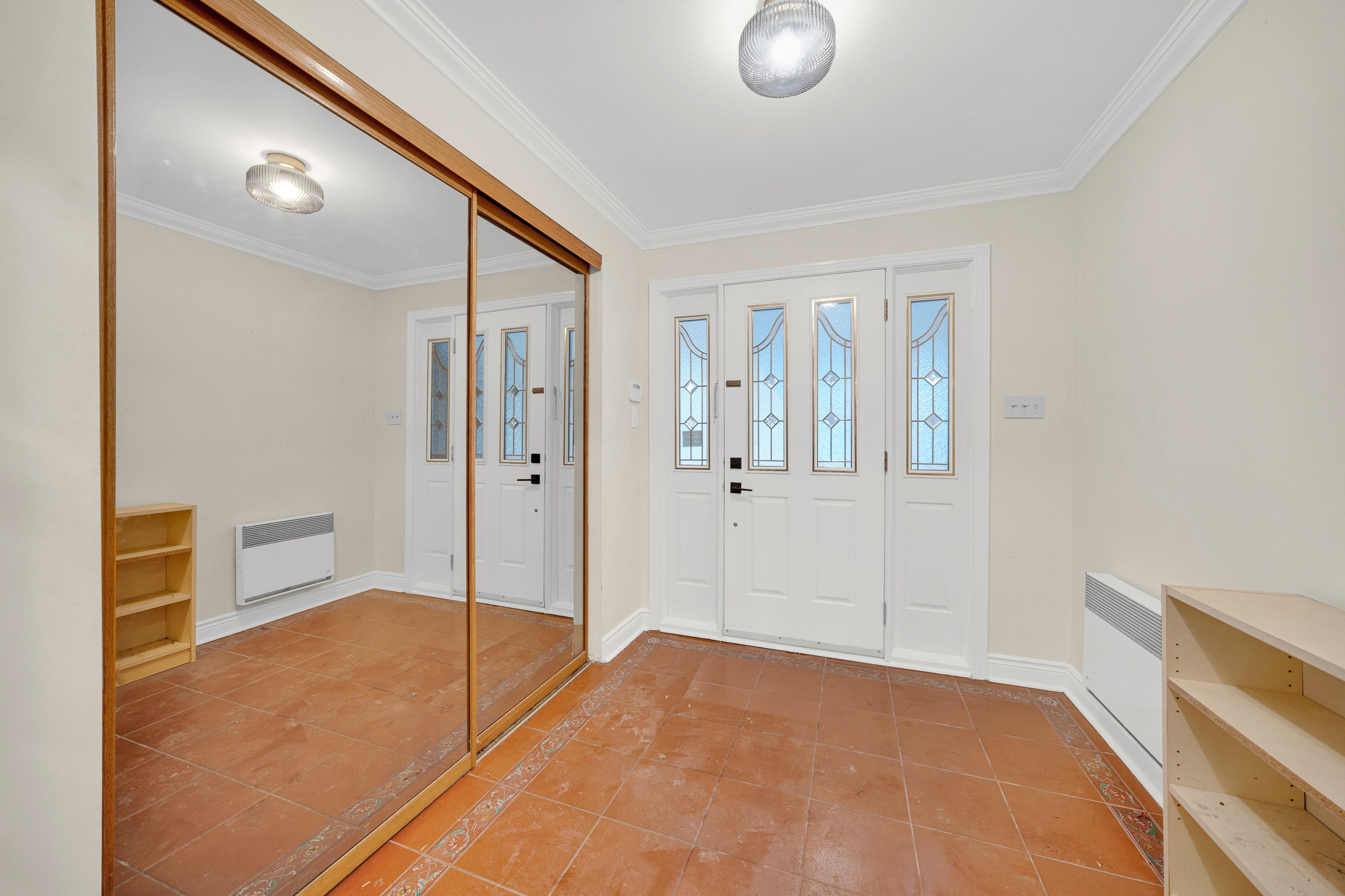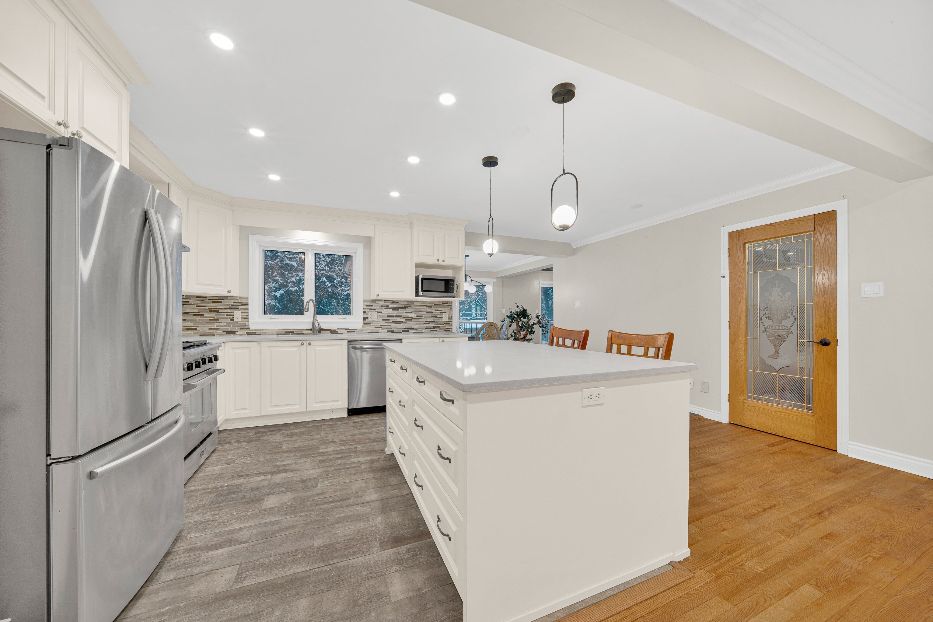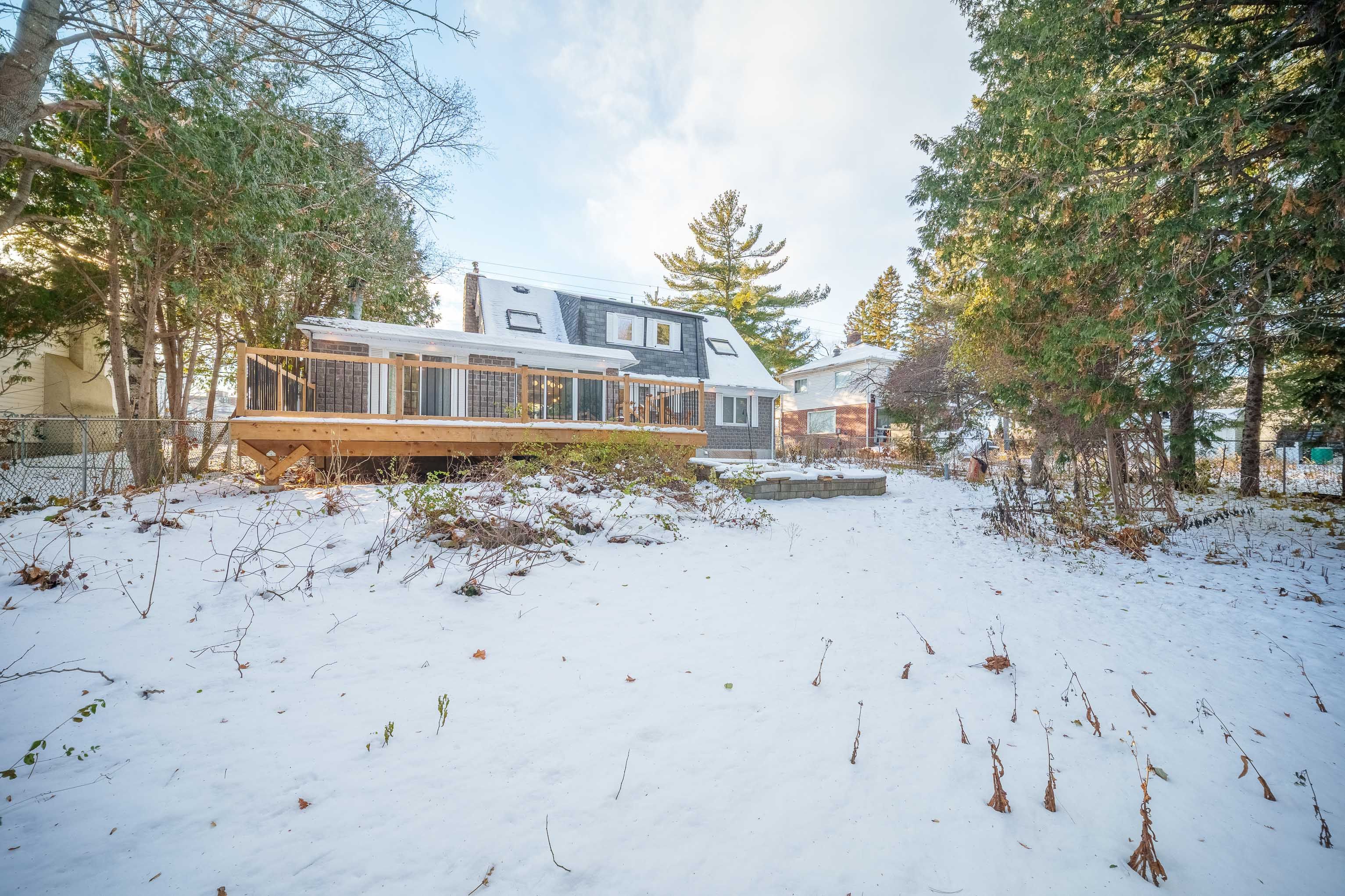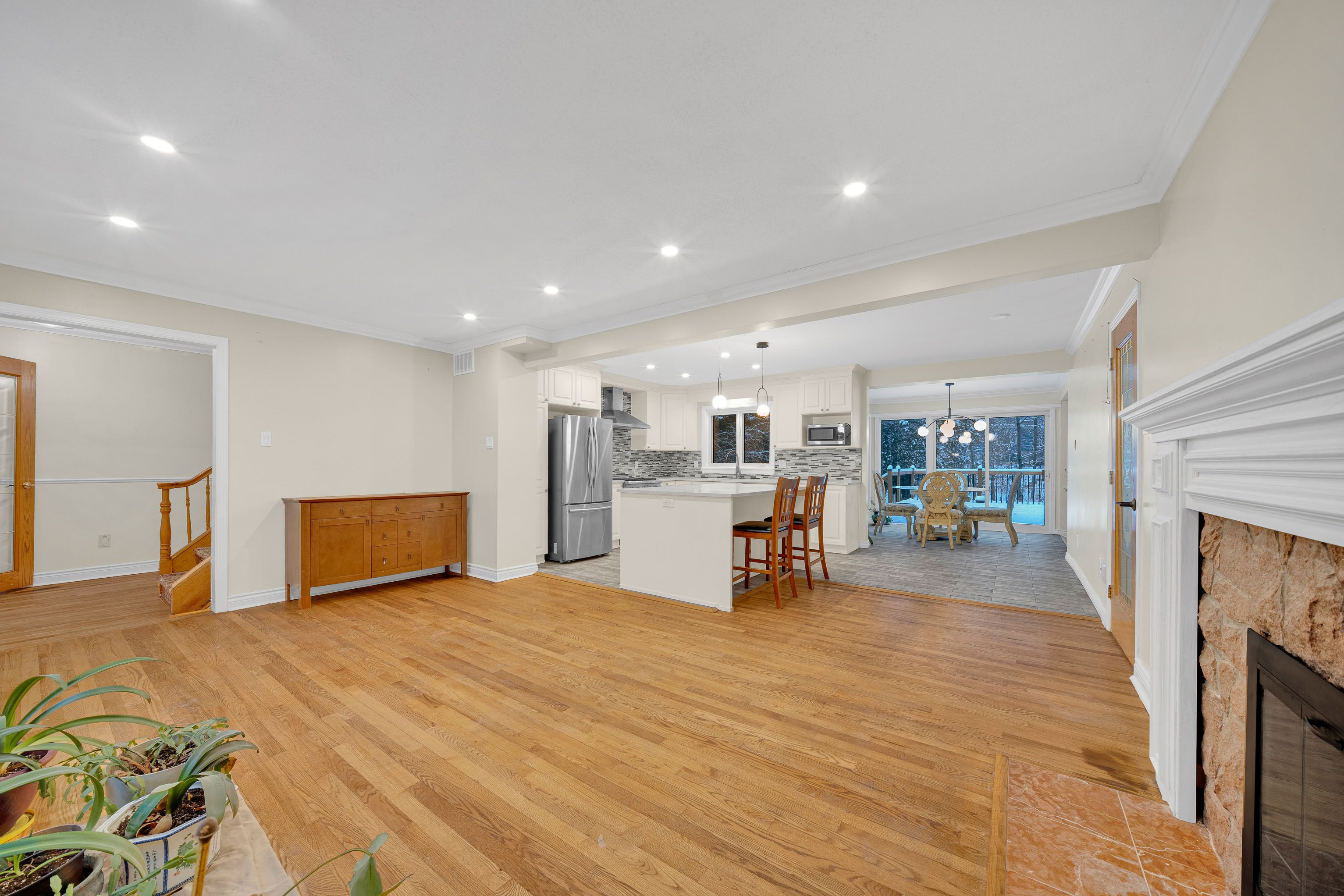 Located in the prestigious rothwell heights, this beauty showcases an exceptional collection of thoughtful upgrades throughout. Recent enhancements include kitchen, main floor bathroom, den, family room (2016), basement, upper bath (2025), front metal gates sandblasted and painted (2025), exterior paint (2025), and backyard deck (2024), creating a home that is both modern and functional. Set on a 75x175 lot with low-maintenance perennials, striking curb appeal, and privacy from mature trees, the home impresses from the moment you arrive. The main floor features a spacious bedroom with full bathroom on one side, ideal as a primary bedroom or in-law suite, while the other side opens to a bright open-concept living, dining, and kitchen area. The kitchen boasts off-white cabinetry, a large island, quartz counters, stainless steel appliances, and fully updated lights through-out, seamlessly flowing into the dining area with floor-to-ceiling windows and double patio doors leading to a massive new deck with scenic views, bathing the space in sunlight and offering four-season beauty. A well-positioned office and spacious family room complete this level. Upstairs, enjoy two generous bedrooms and a newly renovated five-piece bathroom, while the finished basement features two additional bedrooms, a full bath, open recreation space, and a walkout entrance to the backyard, ideal for a teenager retreat or income-generating unit. Combining elegant finishes, significant upgrades, and spacious design, this home presents a rare opportunity to experience the best of rothwell heights living.