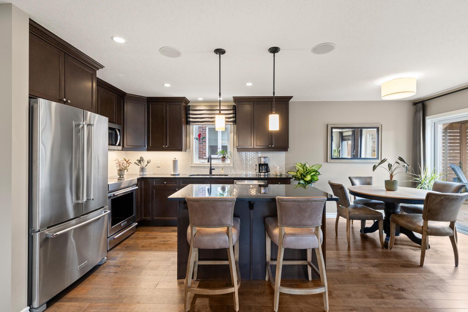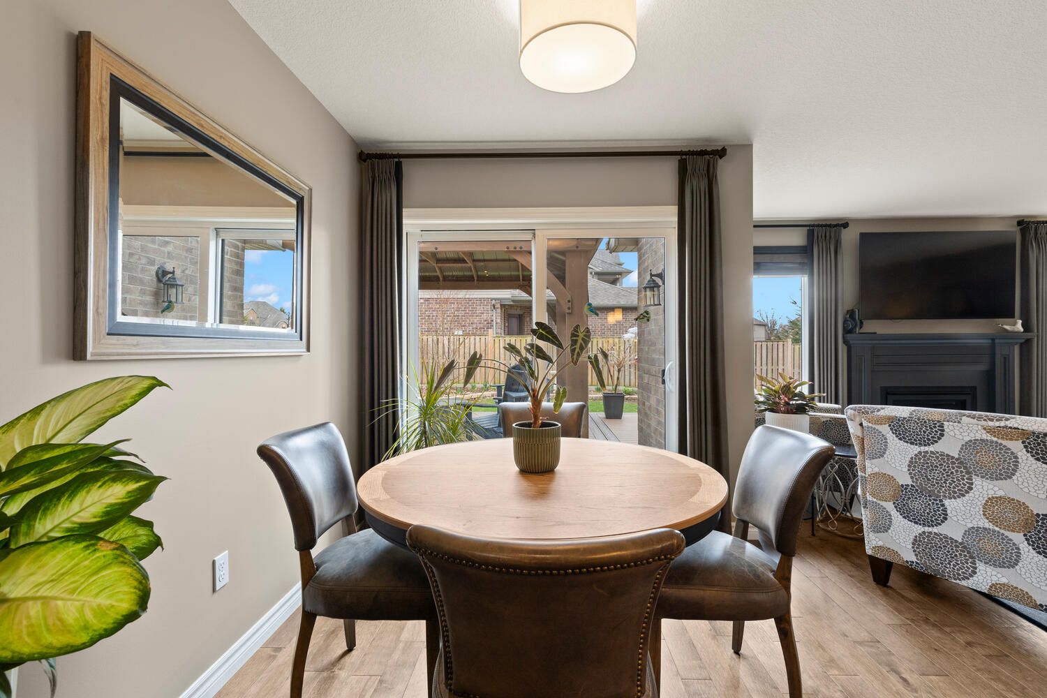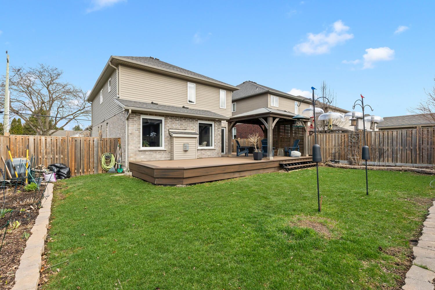 On a scale of 1-10, this one is an eleven! Meticulously maintained & upgraded former wastell model in a prime northridge/north end location conveniently located to all north end amenities, in great school districts (both public & separate) & steps from ab lucas secondary school. Over 2,000 sq ft of tasteful luxury living. Outstanding floor plan/layout & very high quality finishes & upgrades throughout. Main floor provides spacious entrance/foyer, large eat-in kitchen with striking espresso cabinetry, granite counters, granite island with breakfast bar & separate eating area. Separate formal dining room has optionality as a main floor office. Great room features an attractive gas fireplace & two newer picture windows providing an excellent view of the stunningly landscaped (perennials galore-see summer photos), fully fenced & private rear yard with a truly exceptional trex composite deck & 14' x 12' fully permitted (with city of london) gazebo for those appreciative of quality outdoor living. Gas hookup for bbq. Upper level provides 4 spacious bedrooms, including primary with large walk-in closet & a superb 5 piece ensuite with double sinks, separate tub & walk-in tiled/tempered glass shower. Carpet free home with the exception of stair runners with gorgeous, immaculately maintained & rich looking solid hardwood flooring throughout (no laminate or vinyl plank here!!!). Other extras include an abundance of pot lights & crown moulding, in ceiling speakers & attractive upgraded staircase with metal spindles. Unfinished basement w/roughed in bath is well laid out for future development for those desiring additional space. Newer motorized blinds in basement. Hot water heater is owned. Furnace, fireplace, air exchanger & water heater all serviced in 2025 & a/c service prepaid at that time as well to be completed shortly. Other inclusions include custom drapes (2025) & washer/dryer pedestals. This one is a real beauty! Possession may be flexible.