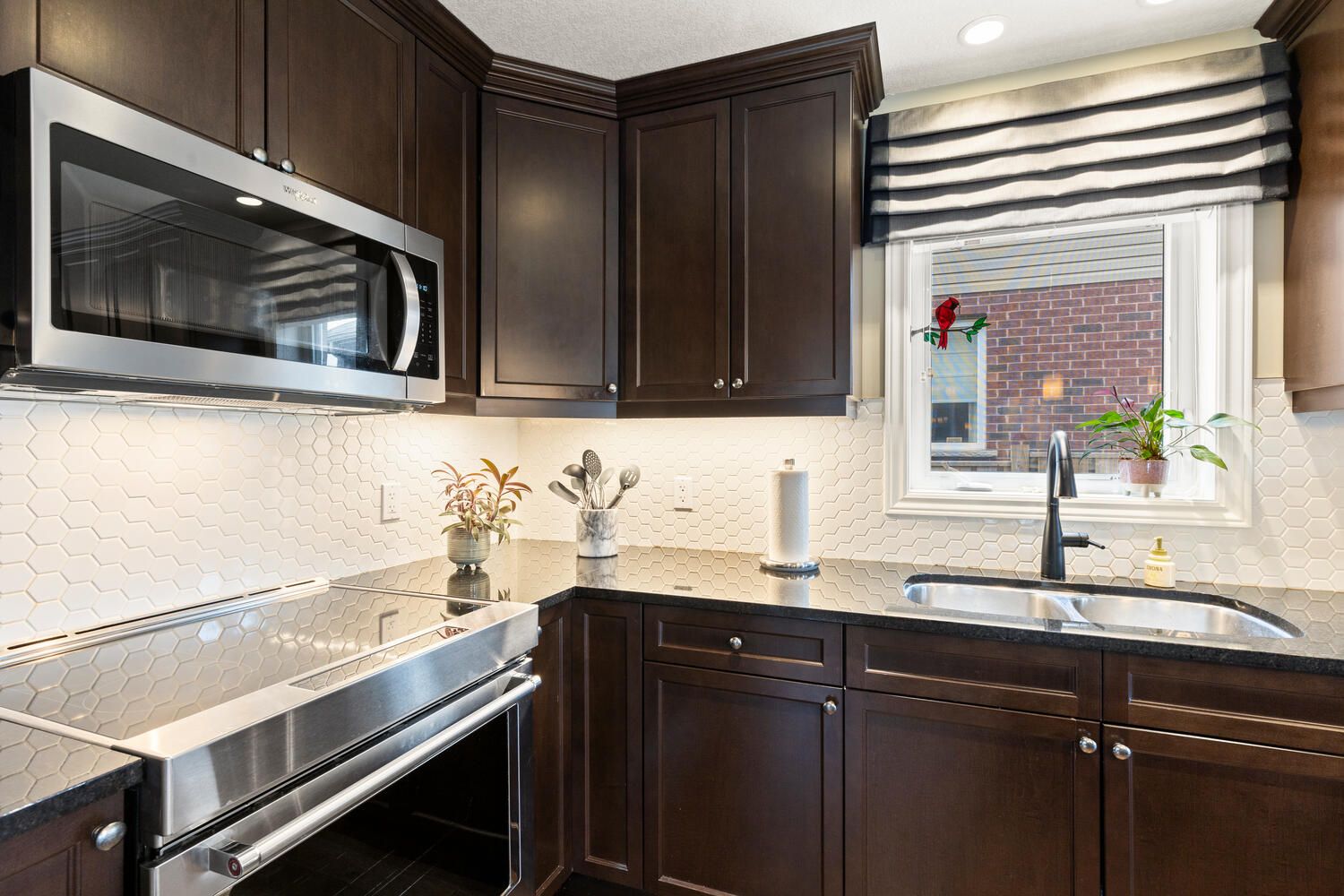 • Spacious layout featuring a large eat-in kitchen with granite counters.