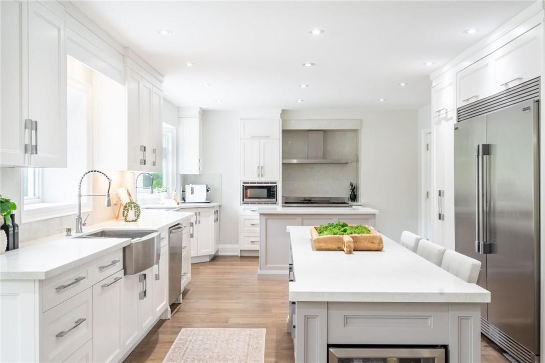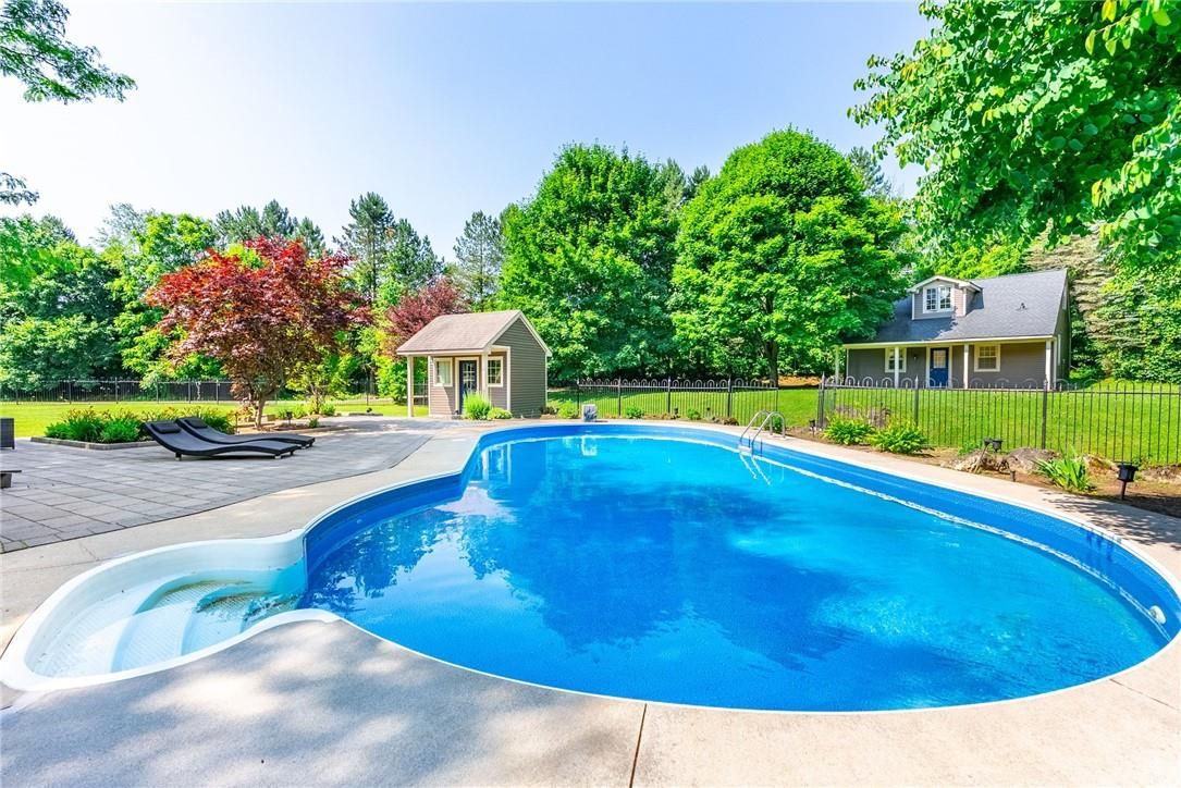 Welcome to your dream country estate, perfectly set on 3. 5 picturesque acres in the highly sought-after community of kilbride. From the moment you step through the front door, this impeccably renovated home will captivate you with its seamless blend of modern elegance and timeless country farmhouse charm. This exceptional property features 4 bedrooms, plus an upper-level primary suite complete with a cozy fireplace, a luxurious ensuite, and a conveniently located laundry room nearby. The thoughtfully designed main floor offers an ideal layout for a growing family, centered around a chef-inspired kitchen with two oversized islands, a spacious dining area enveloped by windows, and an open-concept great room perfect for gathering. Need a bit of quiet? Retreat to the separate living room/office, where you can relax by the inviting gas fireplace. Additional main floor highlights include a large mudroom with exterior access and a vaulted secondary primary retreat offering its own serene ensuite and private walkout to an outdoor living space. The surprises continue in the fully finished lower level, where you'll discover a wet bar, recreation area, and a convenient walk-up to your sprawling backyard oasis. Why head to a resort when this property has it all? Enjoy an inviting inground pool, multiple outdoor seating areas, a volleyball court, and a cozy fire pit - all designed for ultimate outdoor living. As a bonus, this home features a legal accessory dwelling complete with a kitchenette, full bath, and fireplace, providing the perfect solution for multi-generational living. Located in one of north burlington's most coveted villages, this magnificent estate offers a rare opportunity for discerning buyers seeking the perfect blend of luxury, functionality, and family-friendly charm. Lets get you home! Luxury certified