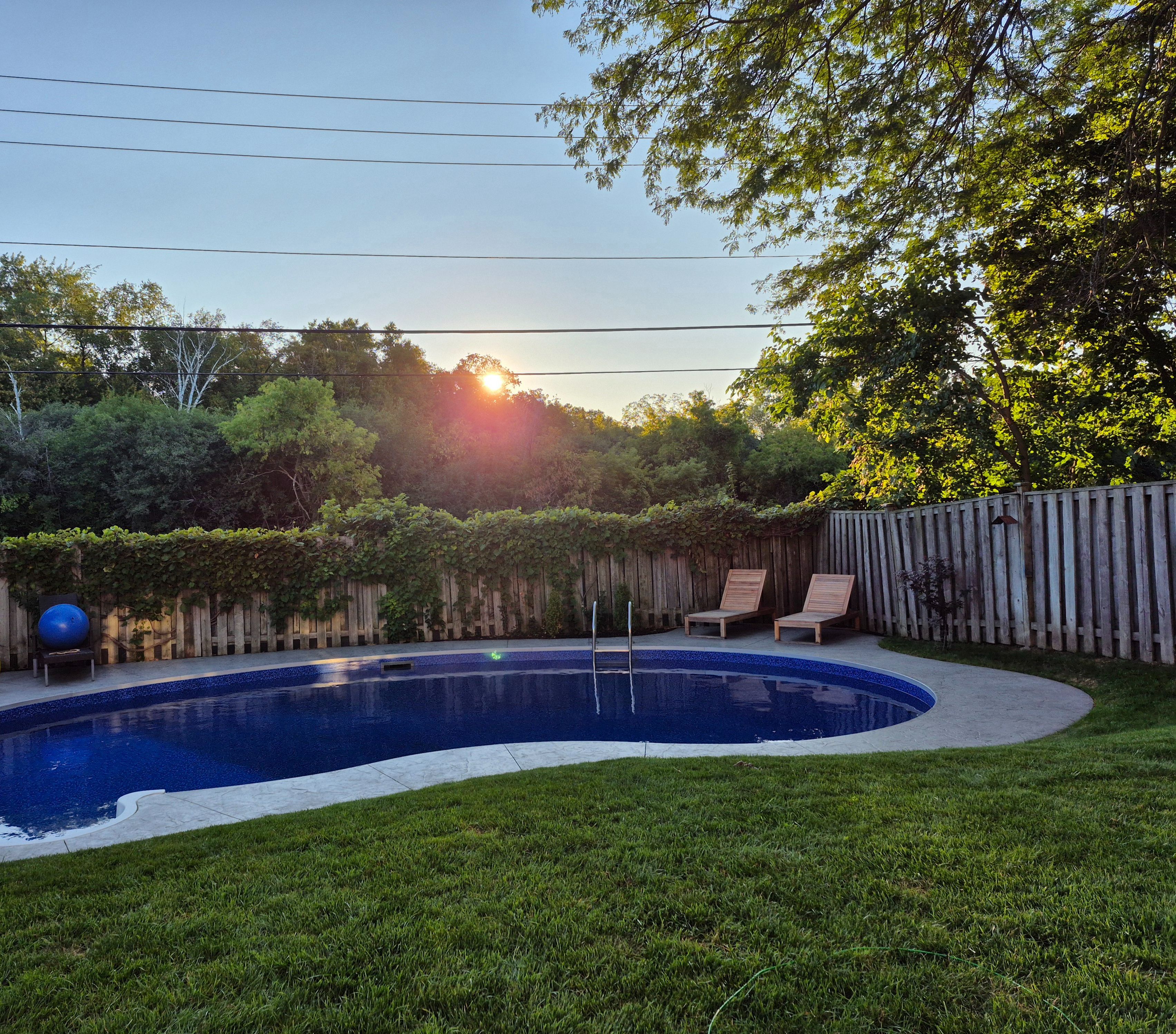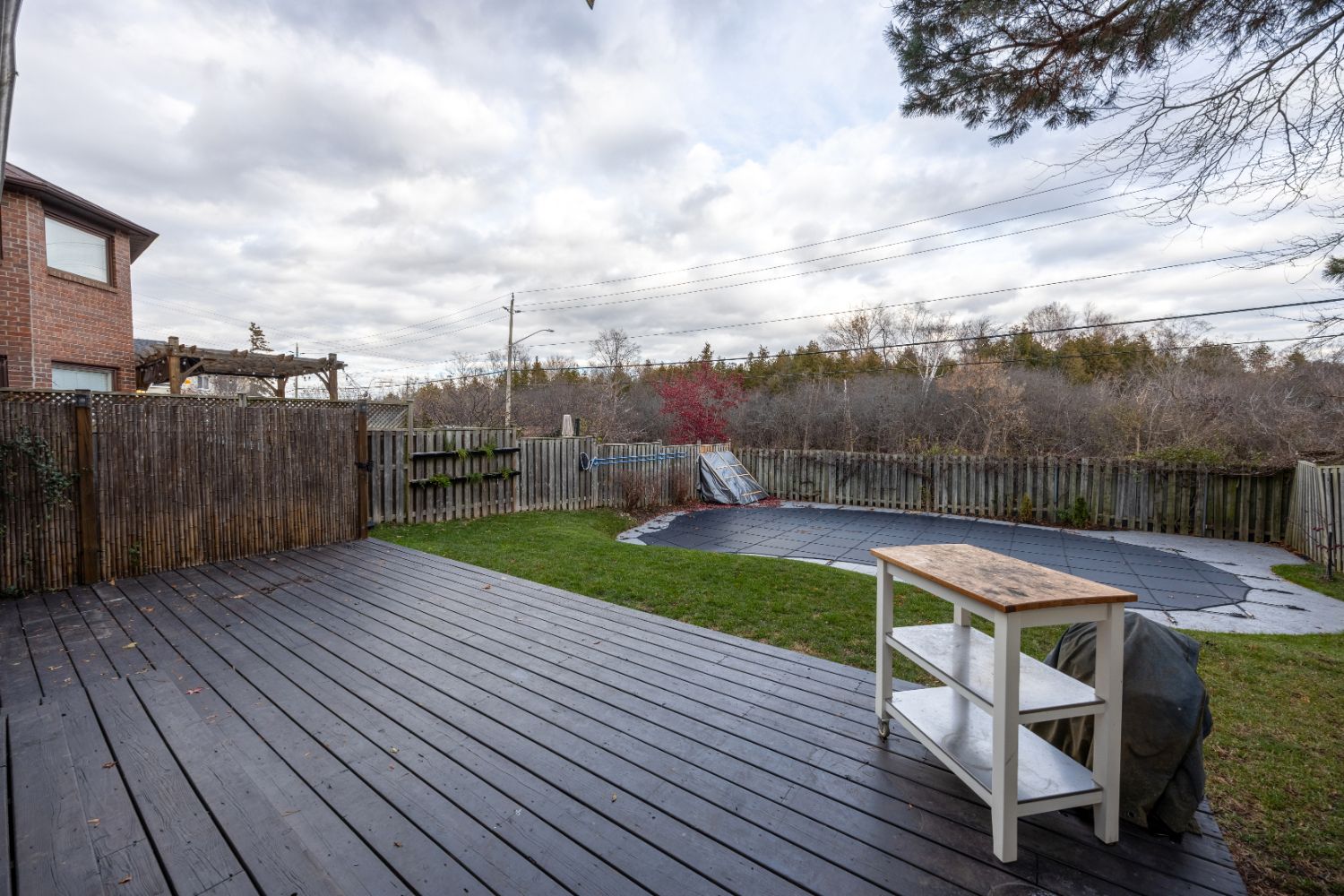 Warm, inviting, and ideally located in a convenient pickering neighbourhood close to hwy 401 and everyday amenities, this charming 4-bedroom home offers space, comfort, and thoughtful updates throughout. The centrally located, updated, eat-in kitchen features quartz counters, tile backsplash, stainless steel appliances, and a convenient walk-out to the deck, ideal for barbecues and easy outdoor living. Adjacent to the kitchen, the spacious dining room is perfect for hosting family and friends, highlighted by two large picture windows that fill the space with natural light. The family room offers a cozy retreat with its wood-burning fireplace and luxury vinyl plank flooring, while the separate living room provides additional gathering space with hardwood flooring and a large bay window. A handy, main-floor laundry/mudroom includes updated cabinets, a modern counter, and interior garage access for everyday convenience. Upstairs, discover four good-sized bedrooms. The primary suite features elegant wainscoting, a walk-in closet, and an updated 4-piece ensuite bath. The basement is designed to meet a variety of needs, offering a spacious rec room with a gas fireplace, room for games like ping pong, a cozy media room with pot lighting, a den or office space, and an exercise room. Outside, relax on the deck or take a dip in the inground pool on warm, summer days. In winter, the pool is protected with a safety cover. A charming shed provides extra storage, completing this well-rounded and inviting family home. Move right in!
