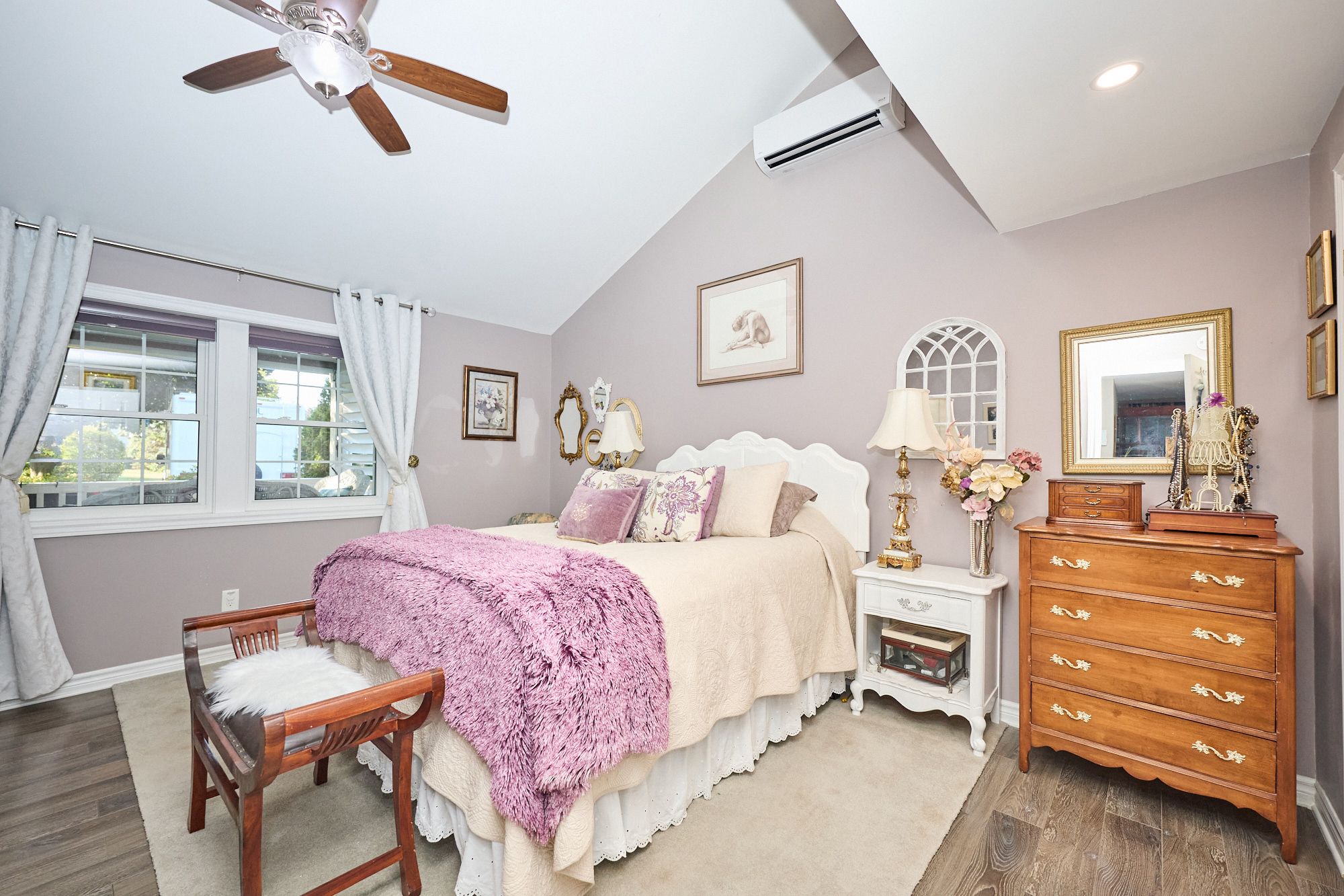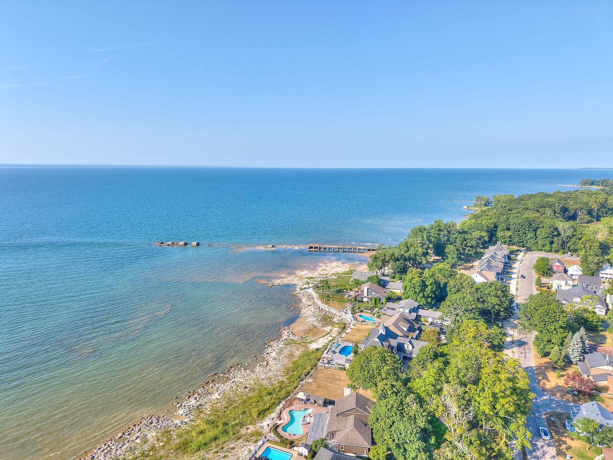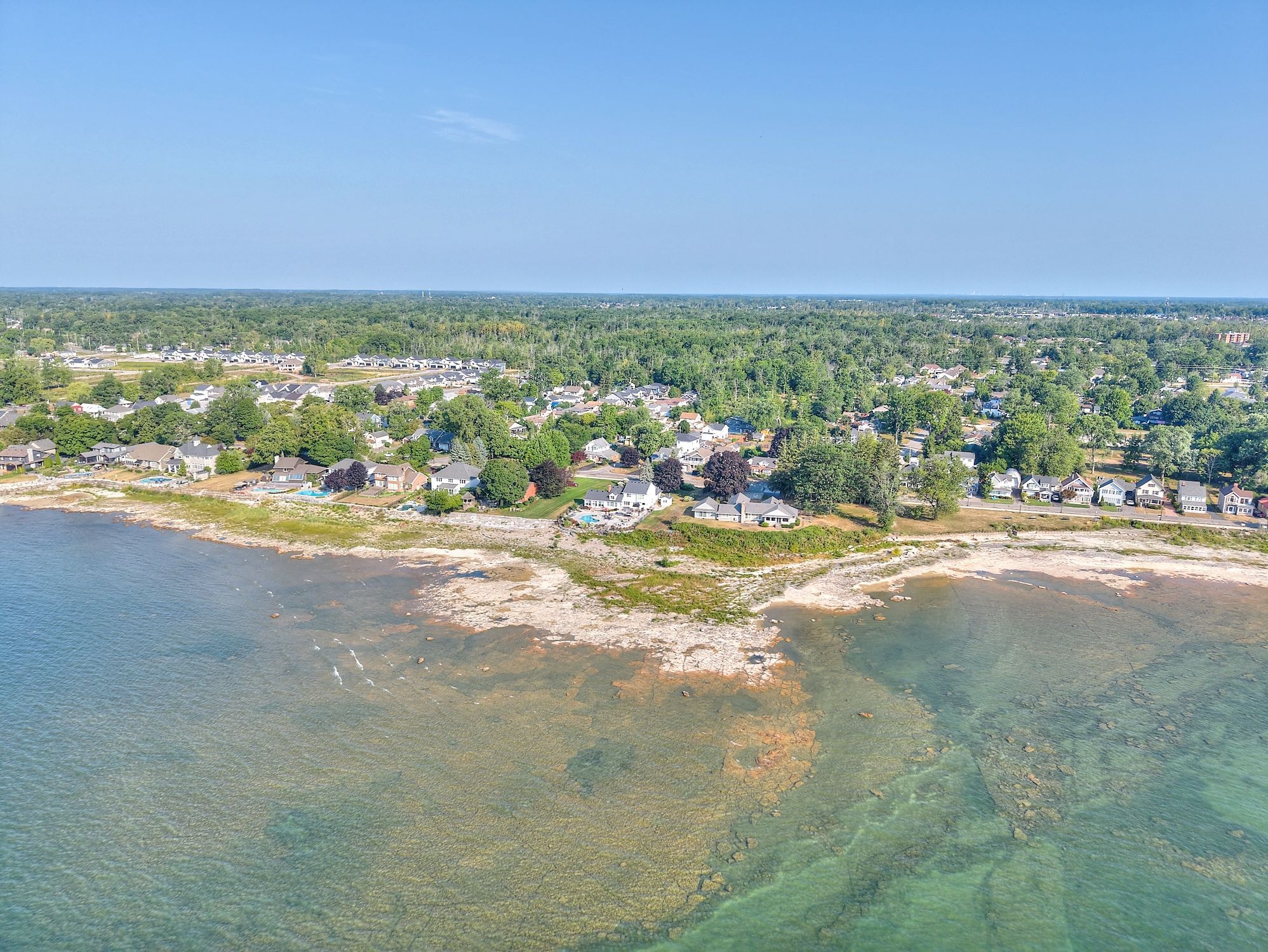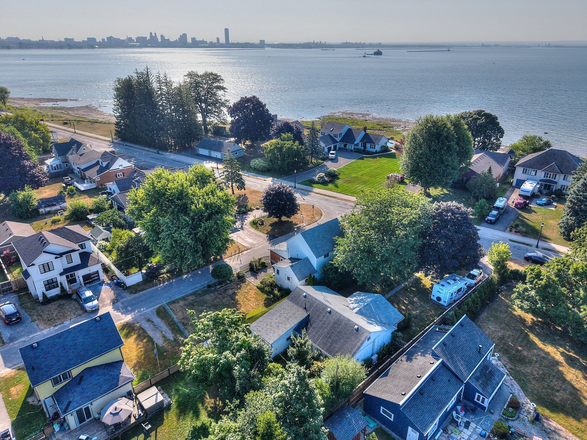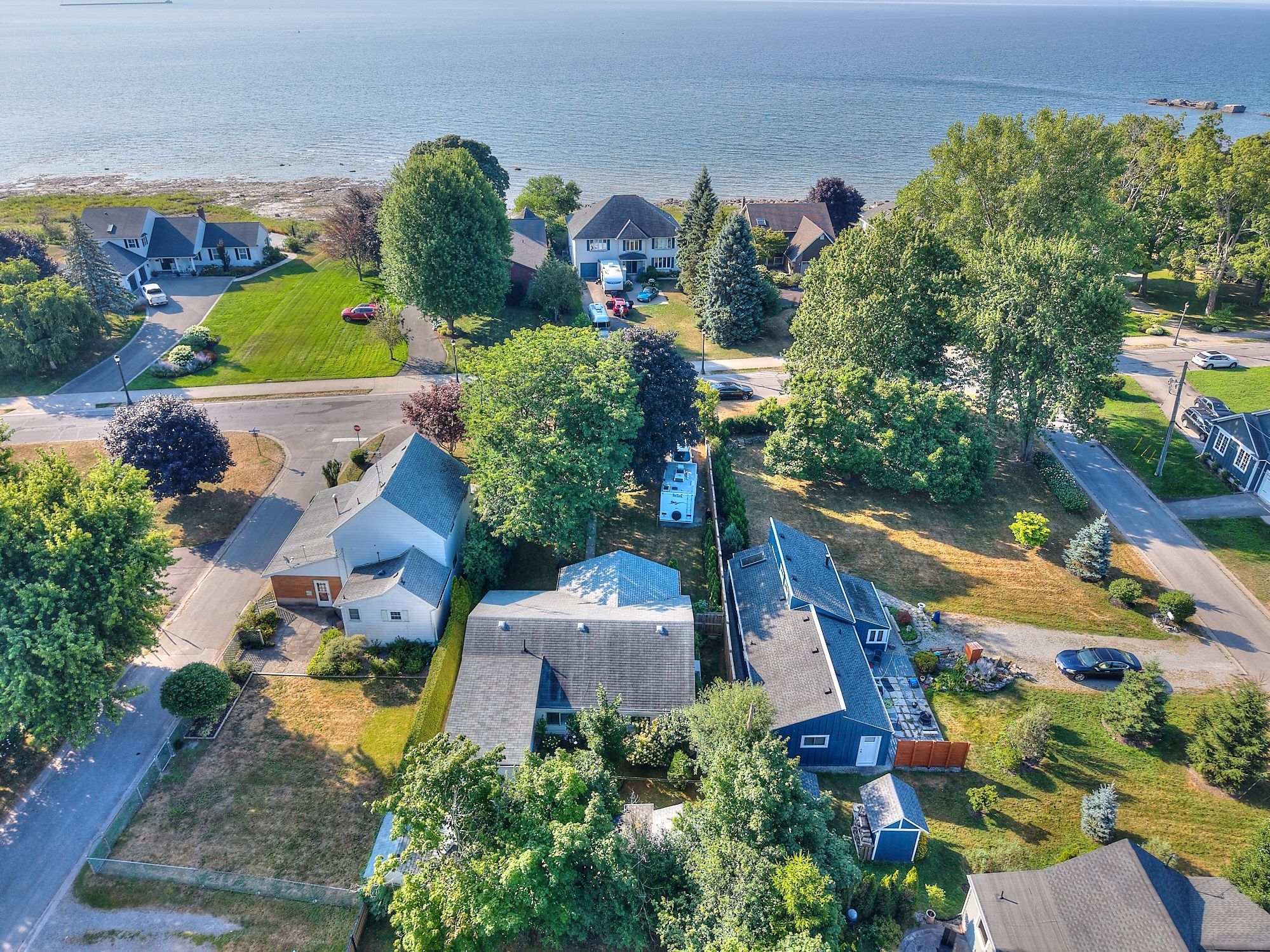 Location, location, location! Wake up to breathtaking sunrises over lake erie, best enjoyed with a morning coffee on the front porch, or unwind in the serenity of your private, landscaped, fully fenced backyard. Ideally located just steps from the shoreline, this tastefully updated 2-bedroom + office, 1-bath home offers the perfect blend of charm, comfort, and convenience. Inside, the bright, carpet-free layout features two main-floor bedrooms, a 4-piece bath with a corner jacuzzi waterfall tub and a custom eight-jet shower, and a spacious family room with vaulted ceilings, laminate floors, two gas fireplaces, and large windows framing garden views and distant glimpses of lake erie. The two gas fireplaces add nostalgia to the already cozy atmosphere throughout the winter season. French doors connect the family room to the dining/living space. Outside, enjoy beautifully landscaped gardens, lake views from the front porch, and a generous lot set back from lakeshore road for added privacy. Steps from the friendship trail and minutes to uptown amenities, this property also includes three detached sheds, a single driveway with parking for 3 to 4 vehicles, and ample green space. Notable updates include a covered porch with water views, most windows replaced, a backyard gazebo, and a new split heating/cooling system. This is a rare opportunity to own in one of fort erie's most sought-after lake-adjacent locations.