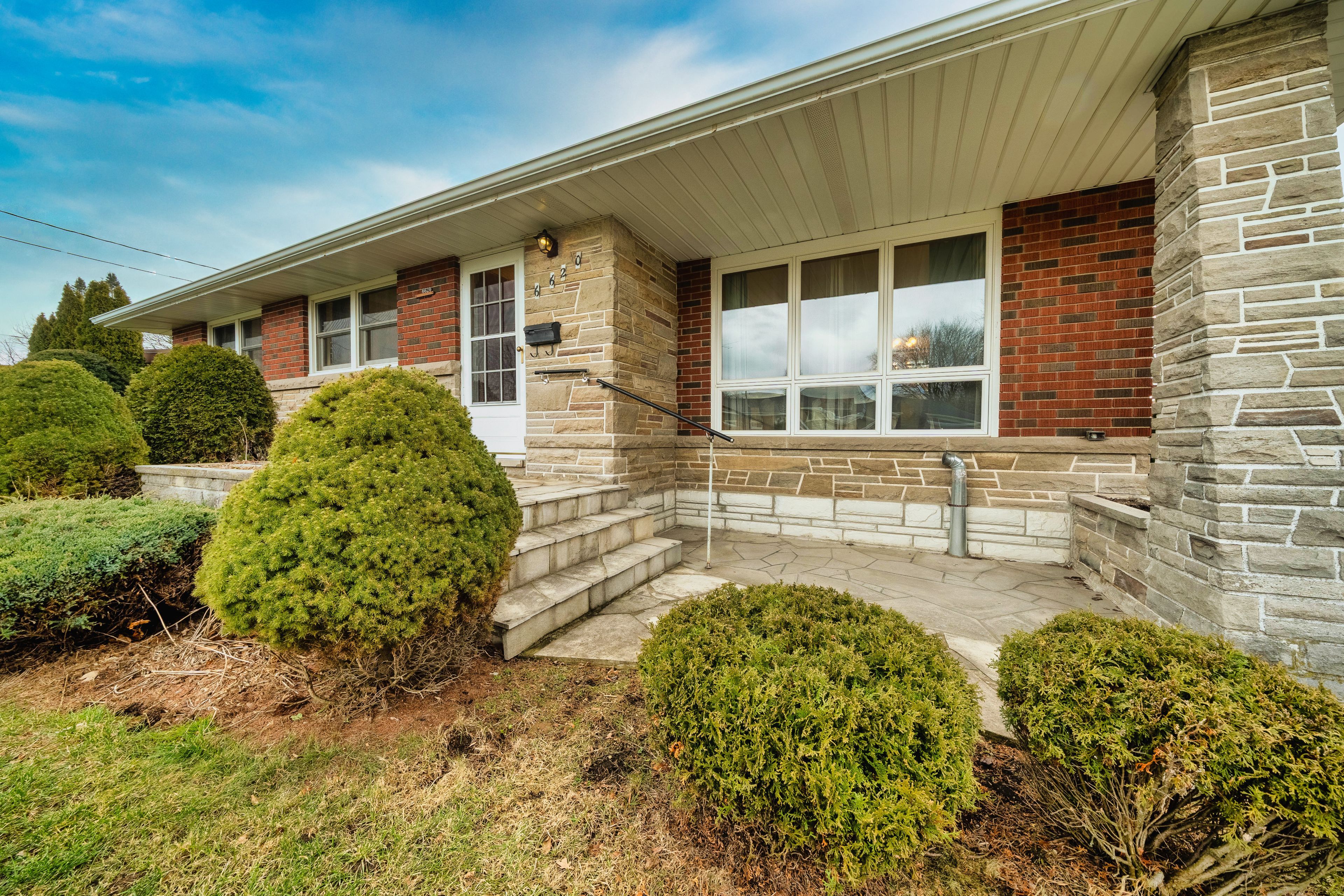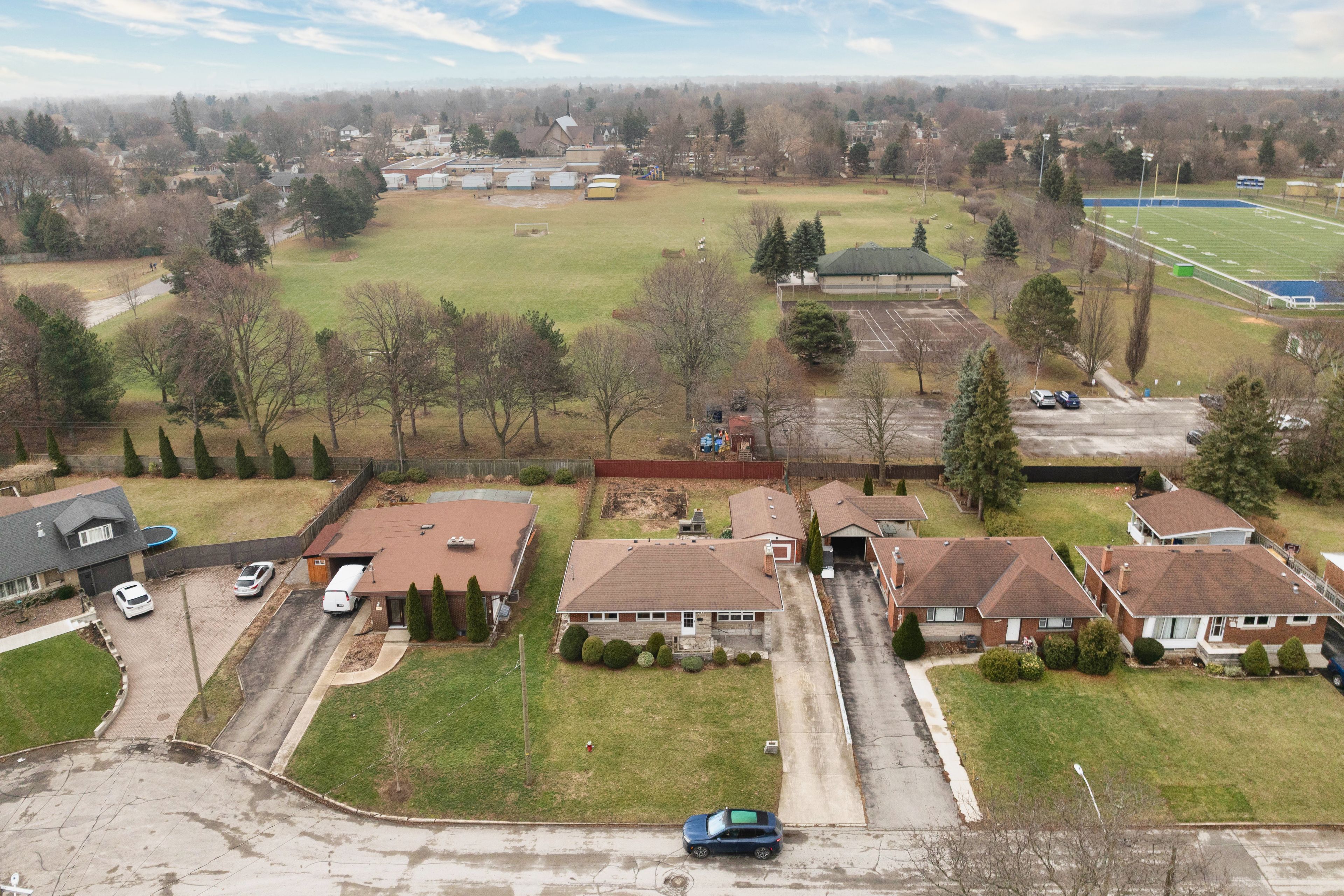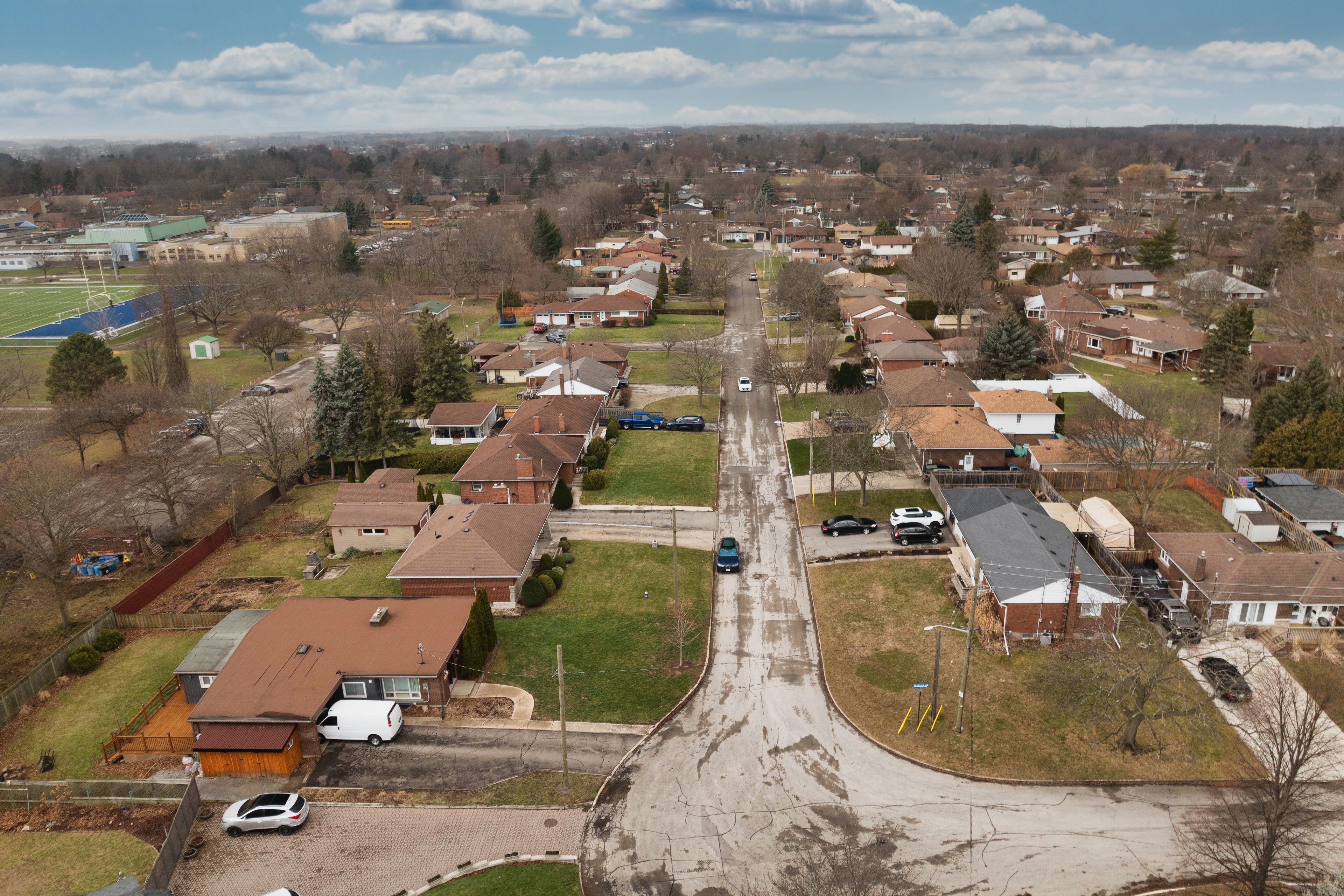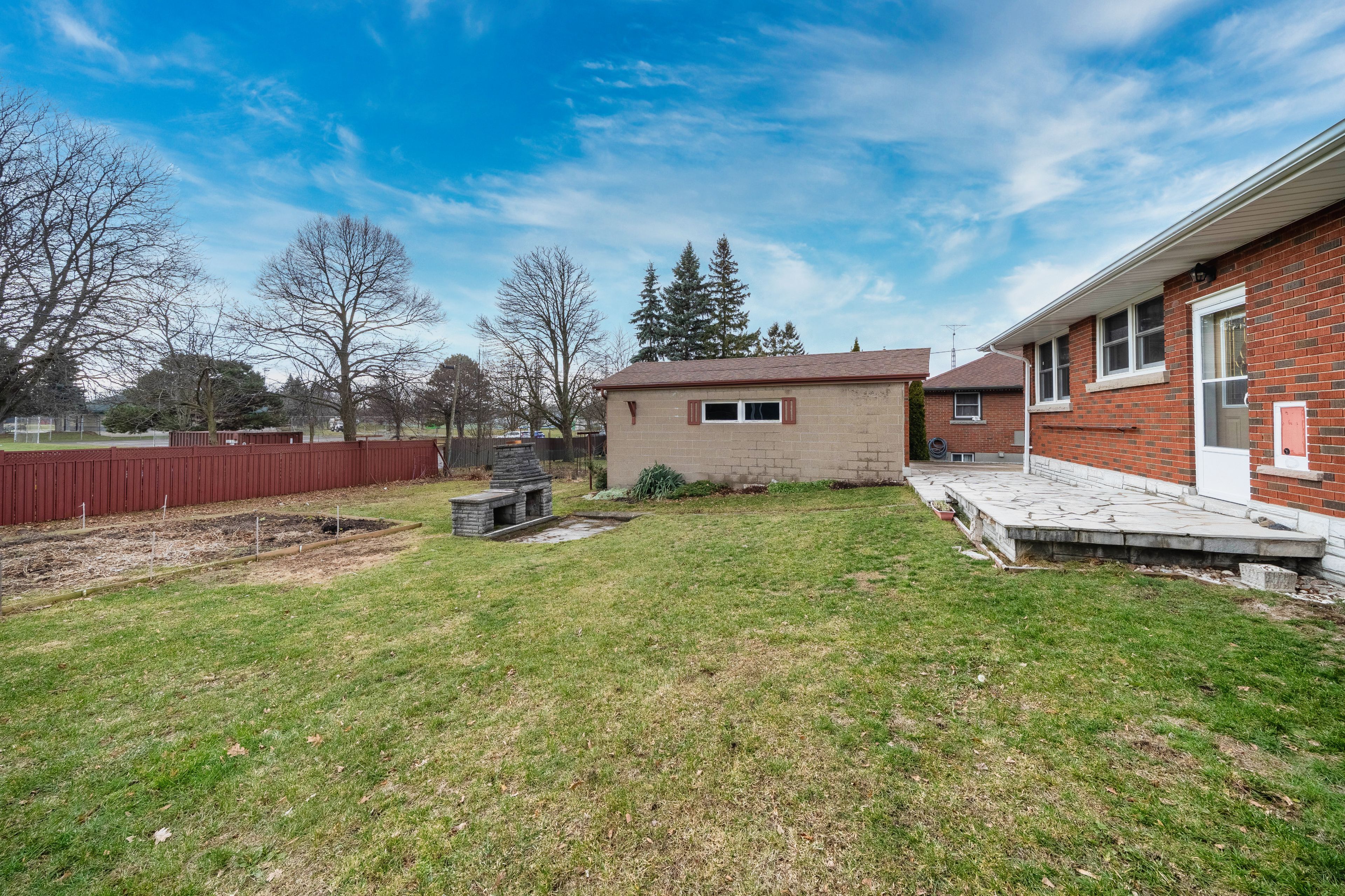 Exquisitely maintained detached bungalow in the highly coveted stamford neighbourhood. Tucked away on a quiet, picturesque street in the north end of niagara falls, this charming residence offers timeless comfort and an exceptional lifestyle setting. A welcoming concrete front porch leads into an inviting main floor, where a warm living space with fireplace and expansive picture window creates an elegant yet cozy atmosphere. The space flows effortlessly into a bright, airy kitchen complete with essential appliances and generous functionality. The private bedroom wing features three well-appointed bedrooms, each offering closets and natural light, and is serviced by a tastefully designed 3-piece bathroom. The lower level, with a separate entrance, enhances the home's versatility and includes a spacious recreation room, game area, laundry space, and a convenient 2-piece bathroom-ideal for entertaining, extended family, or flexible living arrangements. Step outside to a serene backyard retreat, fully fenced and surrounded by mature trees, with no rear neighbours-offering exceptional privacy and a peaceful outdoor escape. A detached garage in excellent condition provides additional parking and storage. Perfectly positioned, this home is within walking distance to mitchelson park, featuring a pool, splash pad, tennis courts, and soccer fields, as well as st. Paul and a. N. Myer high schools, multiple elementary schools, shopping, grocery stores, banks, professional services, lcbo, and more. An ideal blend of comfort, privacy, and convenience-perfectly suited for discerning families or those seeking refined single-level living.