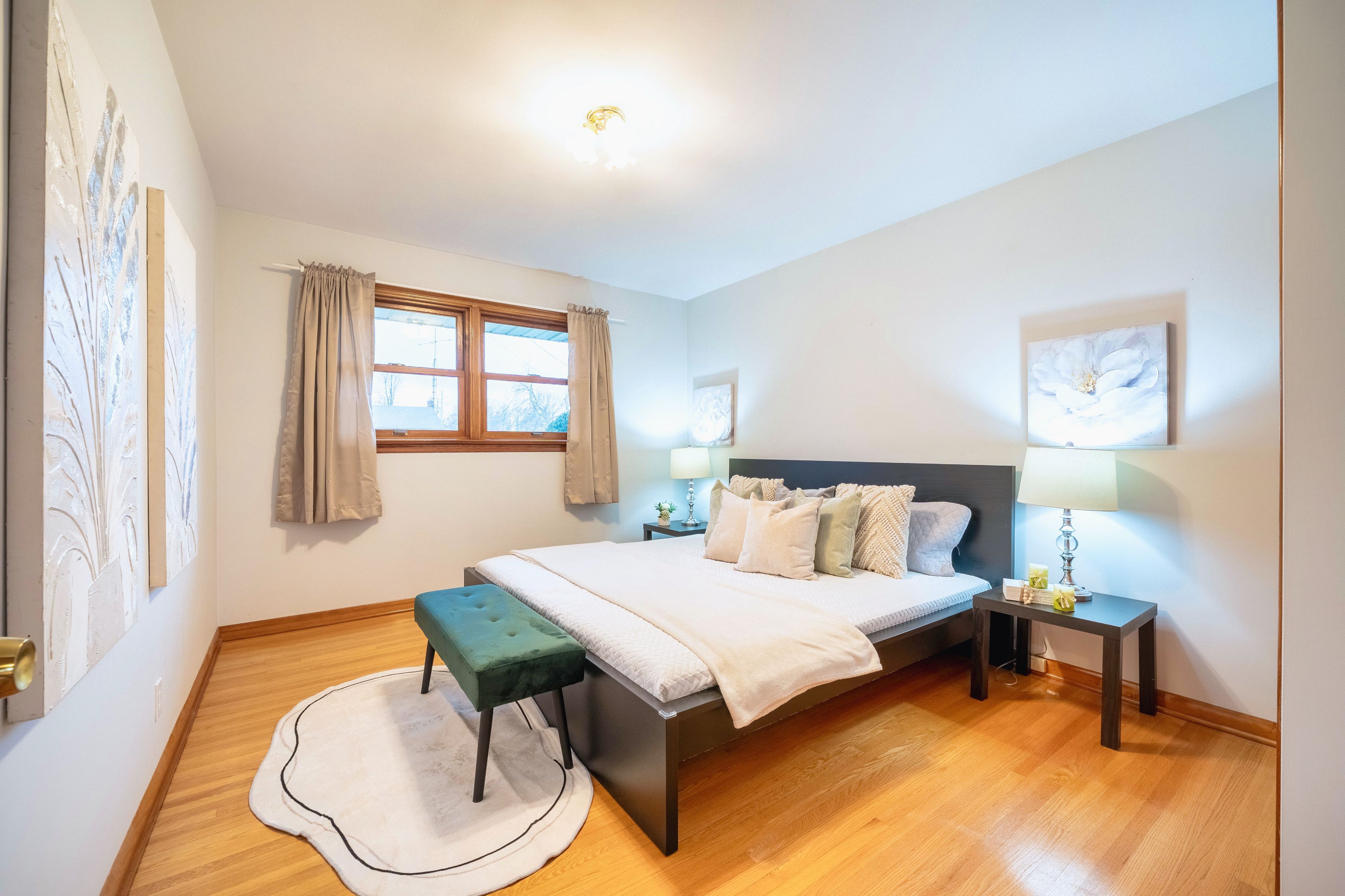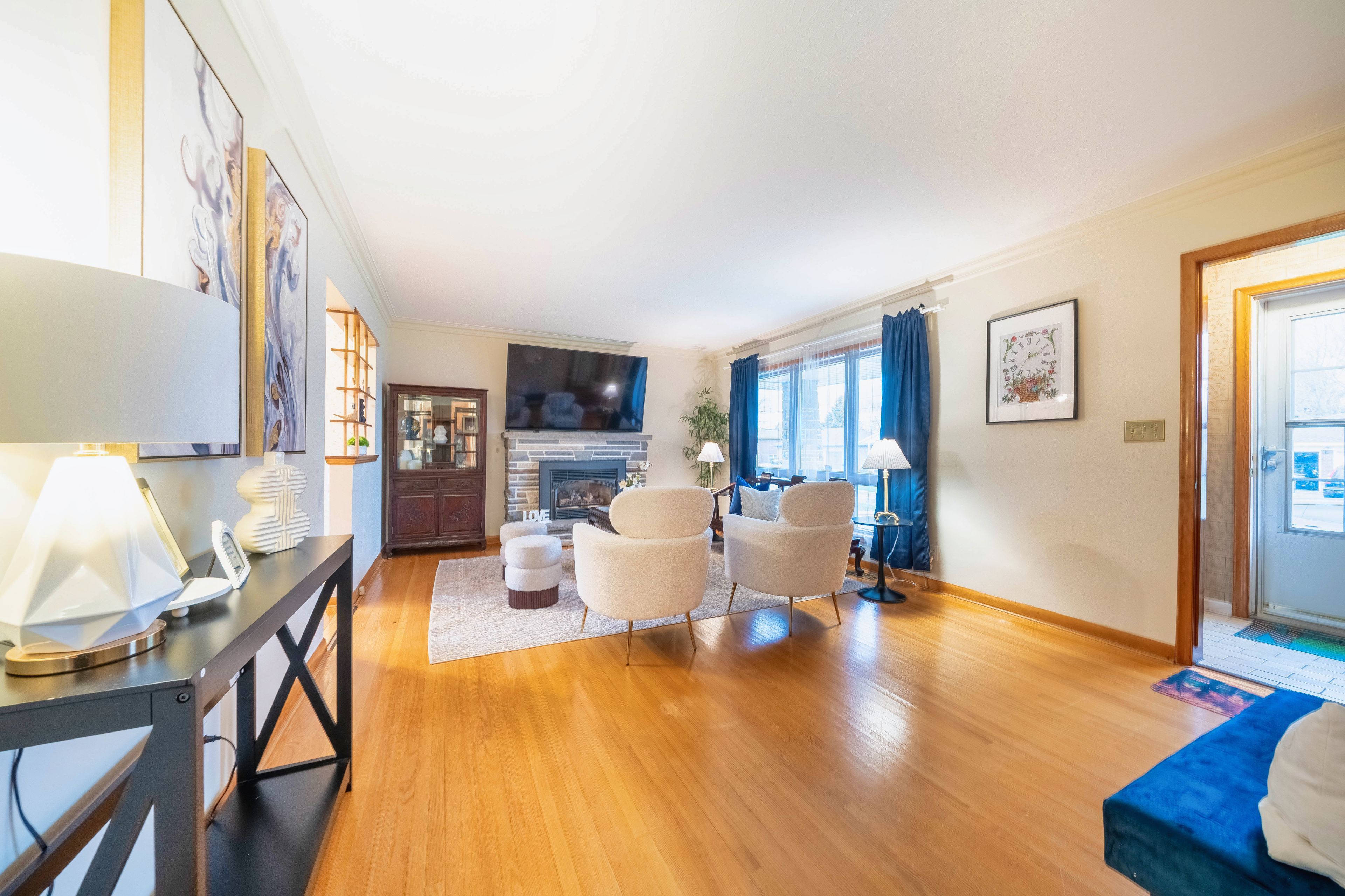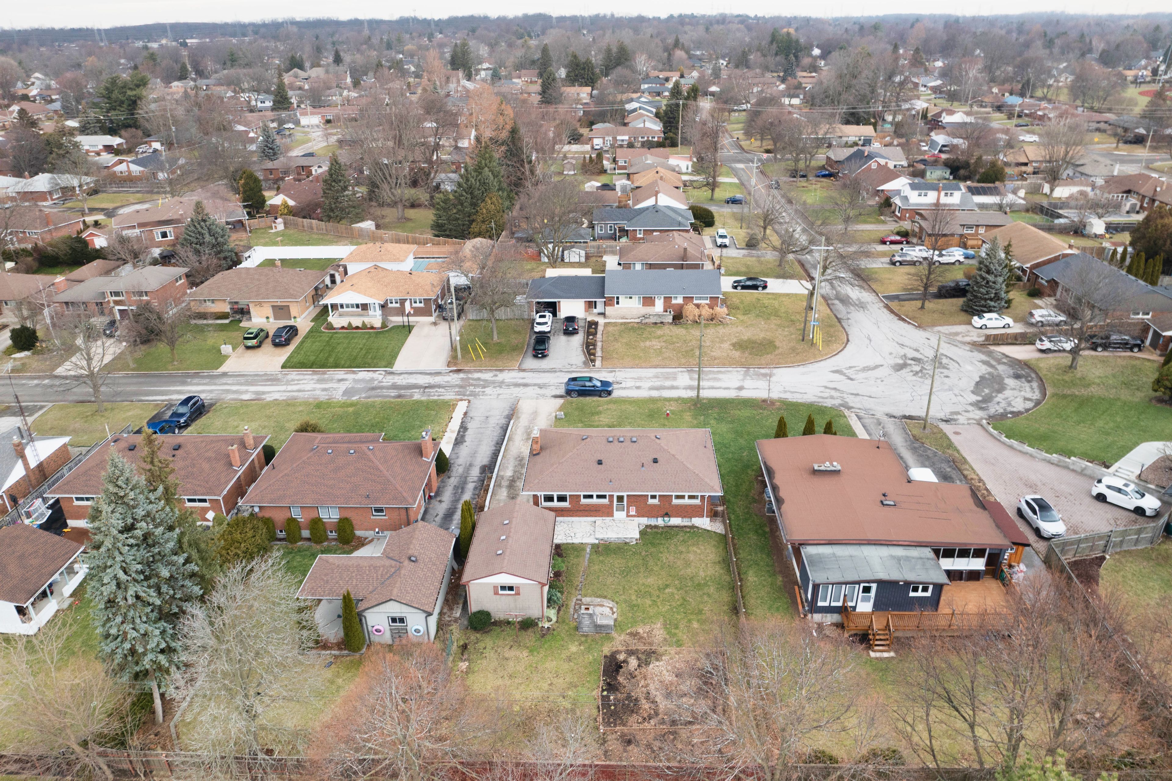 Exquisitely maintained detached bungalow in the highly coveted stamford neighbourhood. Tucked away on a quiet, picturesque street in the north end of niagara falls, this charming residence offers timeless comfort and an exceptional lifestyle setting. A welcoming concrete front porch leads into an inviting main floor, where a warm living space with fireplace and expansive picture window creates an elegant yet cozy atmosphere. The space flows effortlessly into a bright, airy kitchen complete with essential appliances and generous functionality. The private bedroom wing features three well-appointed bedrooms, each offering closets and natural light, and is serviced by a tastefully designed 3-piece bathroom. The lower level, with a separate entrance, enhances the home's versatility and includes a spacious recreation room, game area, laundry space, and a convenient 2-piece bathroom-ideal for entertaining, extended family, or flexible living arrangements. Step outside to a serene backyard retreat, fully fenced and surrounded by mature trees, with no rear neighbours-offering exceptional privacy and a peaceful outdoor escape. A detached garage in excellent condition provides additional parking and storage. Perfectly positioned, this home is within walking distance to mitchelson park, featuring a pool, splash pad, tennis courts, and soccer fields, as well as st. Paul and a. N. Myer high schools, multiple elementary schools, shopping, grocery stores, banks, professional services, lcbo, and more. An ideal blend of comfort, privacy, and convenience-perfectly suited for discerning families or those seeking refined single-level living.