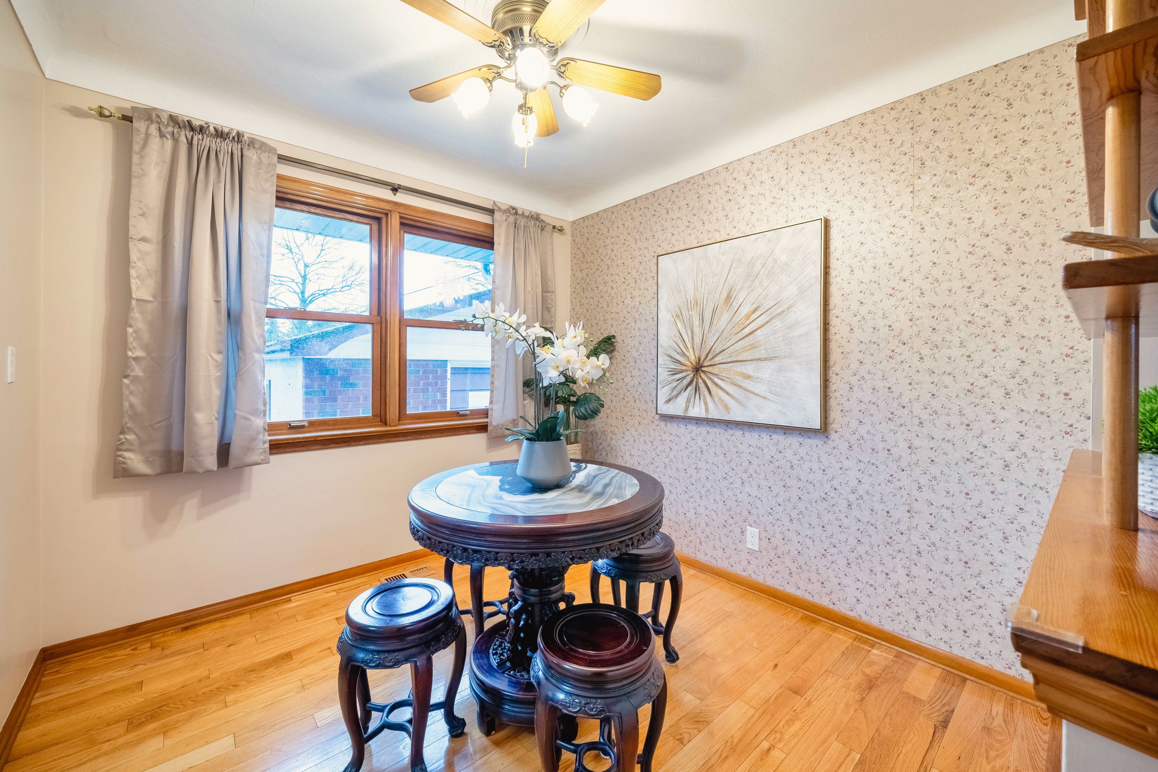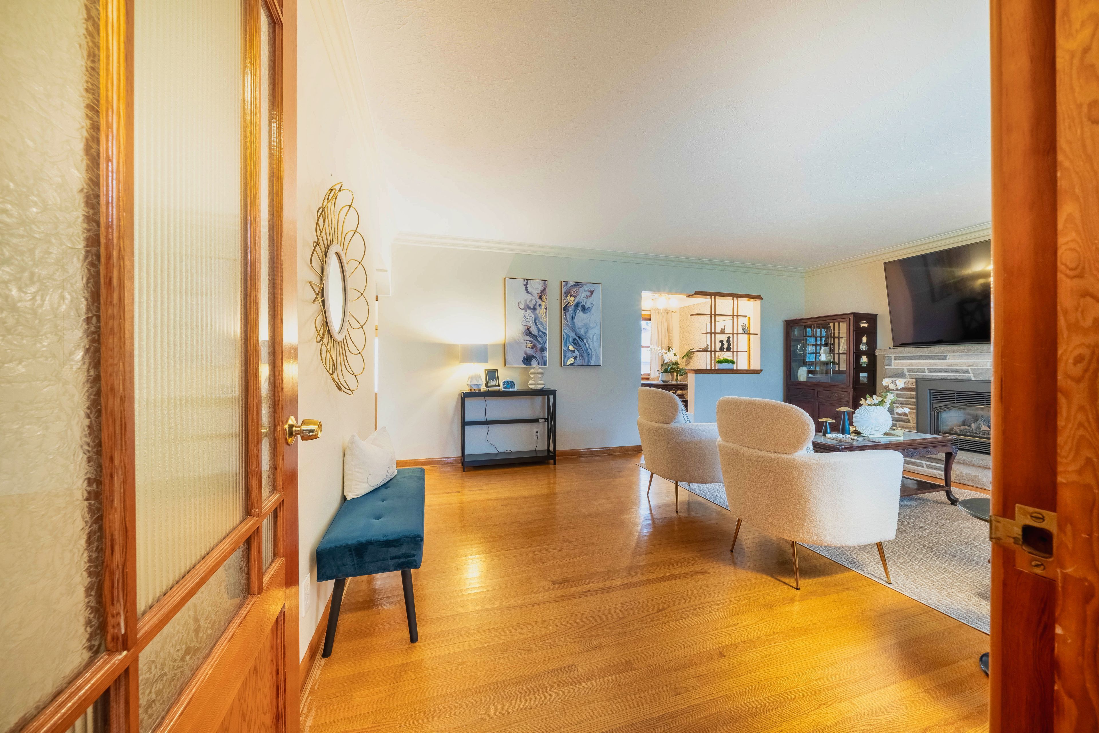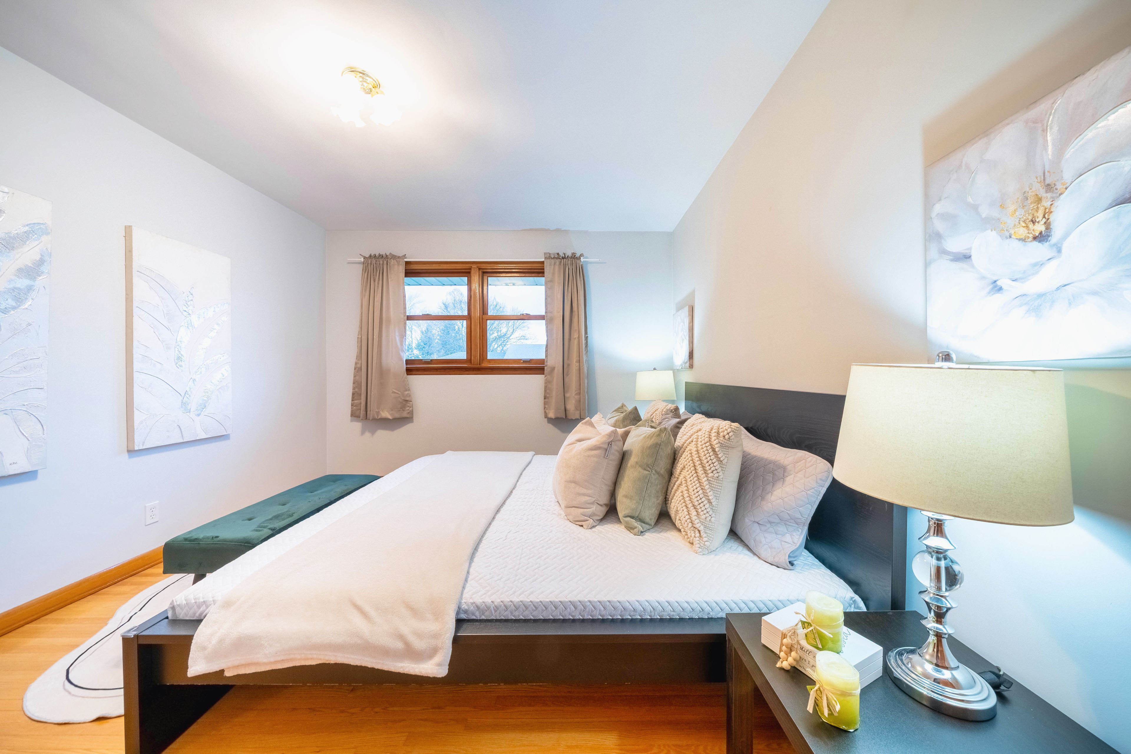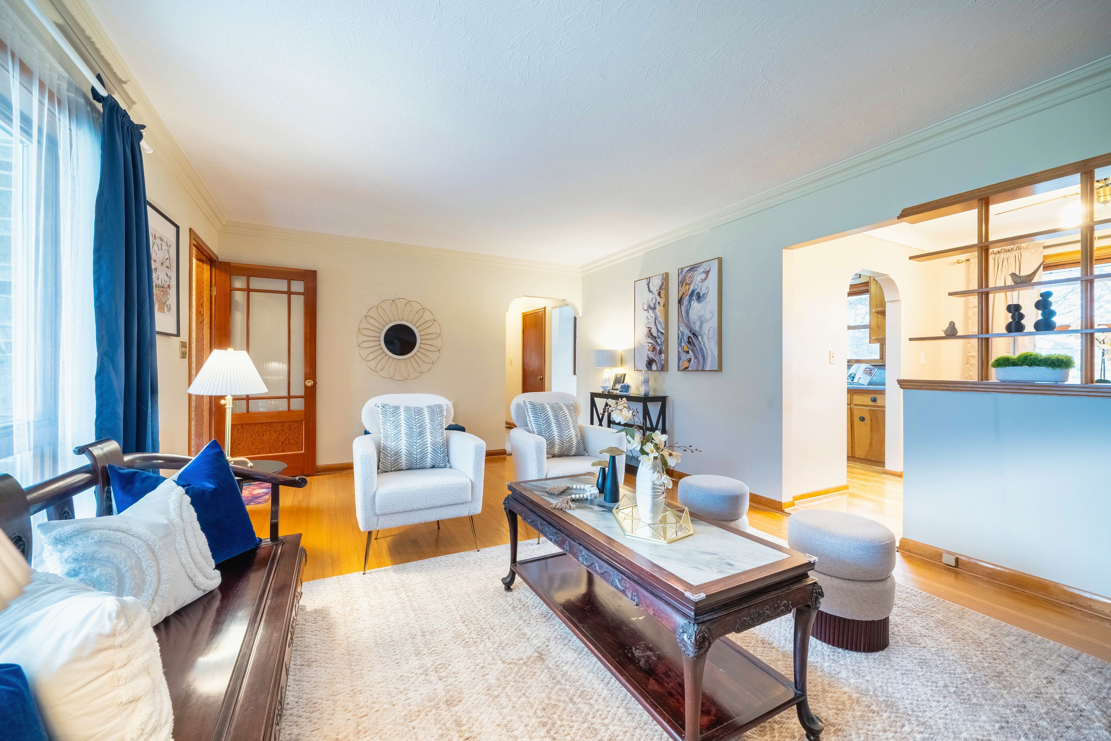 Exquisitely maintained detached bungalow in the highly coveted stamford neighbourhood. Tucked away on a quiet, picturesque street in the north end of niagara falls, this charming residence offers timeless comfort and an exceptional lifestyle setting. A welcoming concrete front porch leads into an inviting main floor, where a warm living space with fireplace and expansive picture window creates an elegant yet cozy atmosphere. The space flows effortlessly into a bright, airy kitchen complete with essential appliances and generous functionality. The private bedroom wing features three well-appointed bedrooms, each offering closets and natural light, and is serviced by a tastefully designed 3-piece bathroom. The lower level, with a separate entrance, enhances the home's versatility and includes a spacious recreation room, game area, laundry space, and a convenient 2-piece bathroom-ideal for entertaining, extended family, or flexible living arrangements. Step outside to a serene backyard retreat, fully fenced and surrounded by mature trees, with no rear neighbours-offering exceptional privacy and a peaceful outdoor escape. A detached garage in excellent condition provides additional parking and storage. Perfectly positioned, this home is within walking distance to mitchelson park, featuring a pool, splash pad, tennis courts, and soccer fields, as well as st. Paul and a. N. Myer high schools, multiple elementary schools, shopping, grocery stores, banks, professional services, lcbo, and more. An ideal blend of comfort, privacy, and convenience-perfectly suited for discerning families or those seeking refined single-level living.