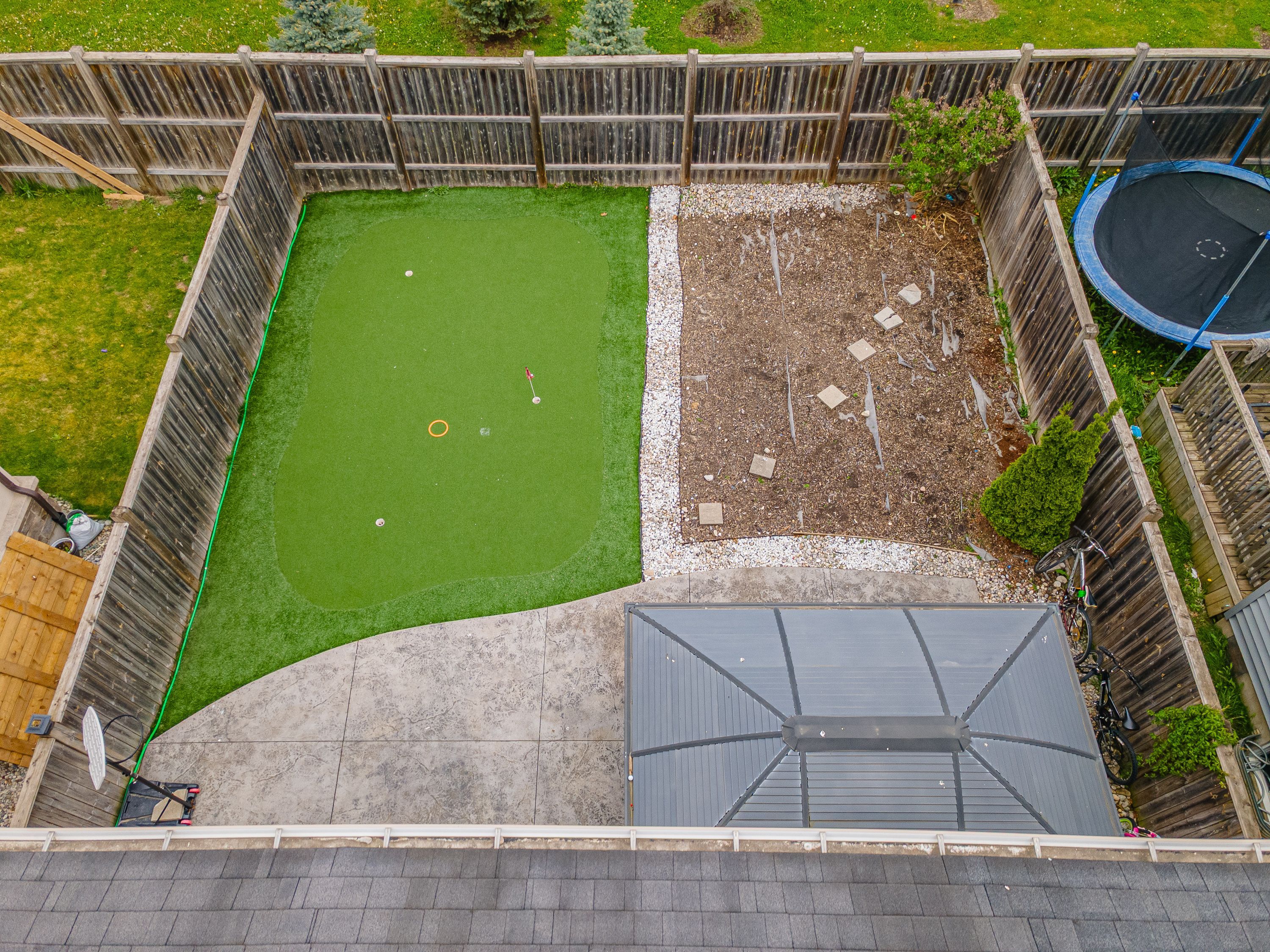 • Backyard features a putting green and a 6-seat pergola hot tub.