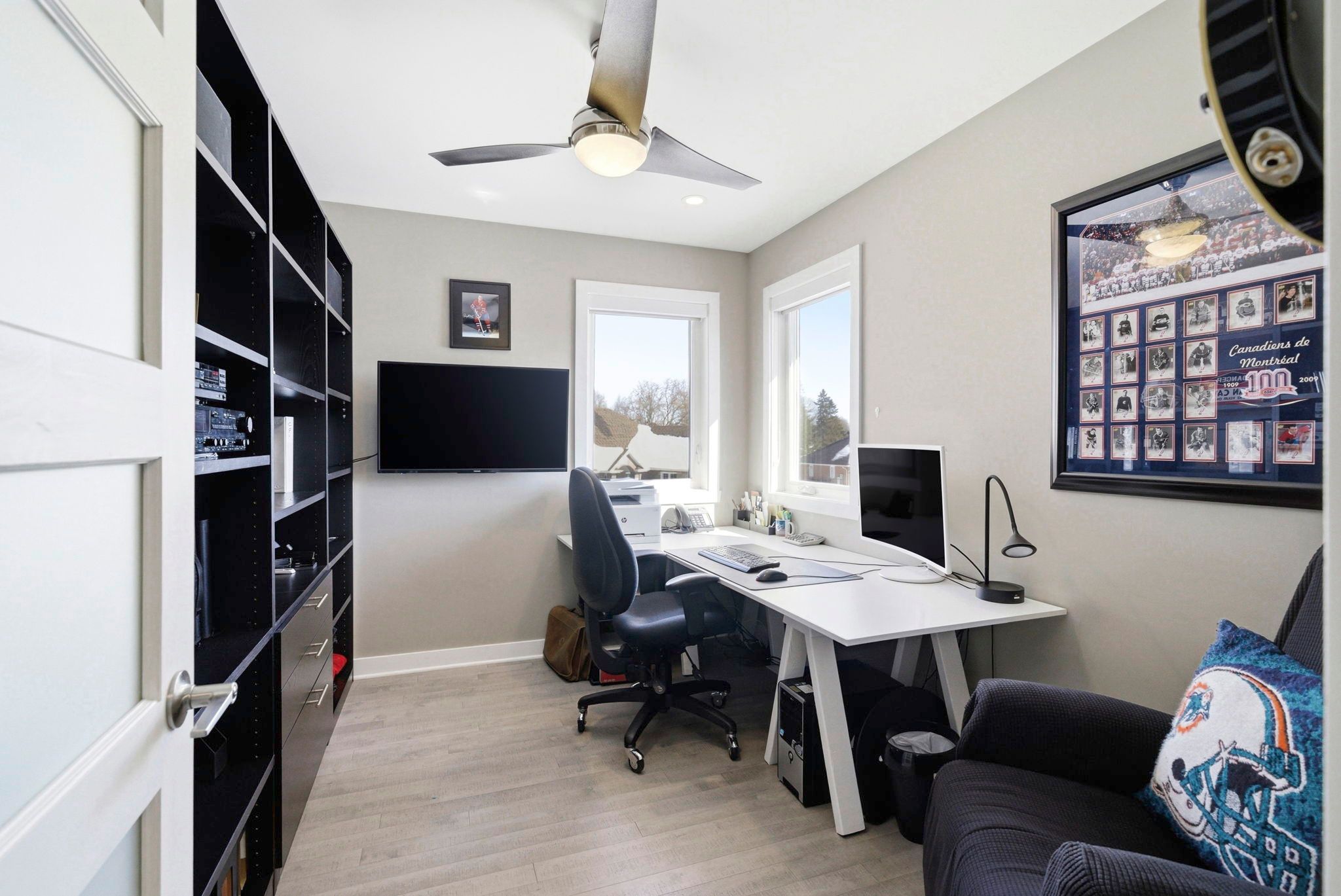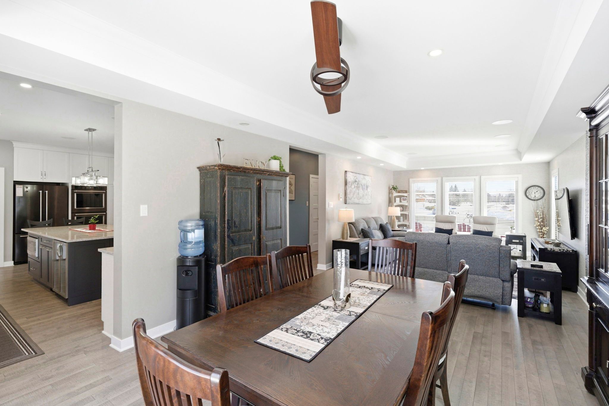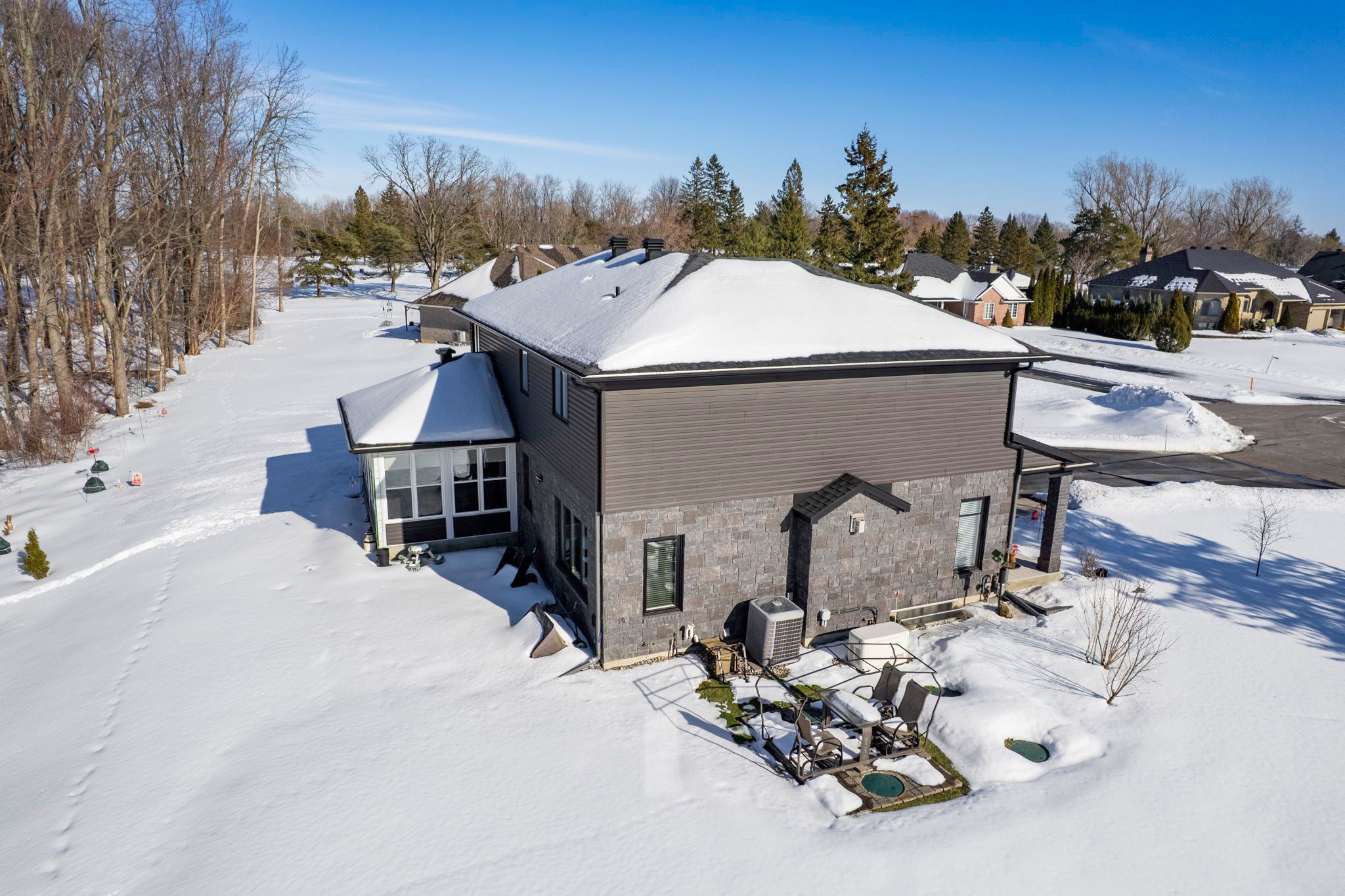 Welcome to this prestigious menard-built 3+1 bedroom residence, where timeless elegance meets refined comfort. Designed with both sophistication and functionality in mind, the home offers a bright, thoughtfully curated layout, convenient main floor laundry, and a stunning gas fireplace that anchors the main living space with warmth and style. The gourmet kitchen is a true showpiece, featuring quartz countertops, abundant custom cabinetry, and a spacious walk-in pantry, perfectly suited for both elevated entertaining and everyday living. The second level offers a private bonus office, ideal for working from home, along with an impressive primary retreat complete with two walk-in closets and an spa-inspired ensuite. Two additional generously sized bedrooms and a full bathroom complete the upper level with comfort and versatility. The professionally finished basement expands the living space with a large family room, an additional bedroom, and ample storage. The crown jewel of this home is the 3-season sunroom overlooking the 8th hole of the golf course - a breathtaking backdrop that creates a serene and exclusive atmosphere. With no rear neighbours, a 17-ft aquasport hydropool swim spa, and an oversized retractable awning, the backyard offers a private oasis designed for relaxation and upscale entertaining. Complete with a 2-car garage, generac generator, and located in a highly desirable neighbourhood, this exceptional home delivers luxury living inside and out. Equipped with an in-ground sprinkler system to keep the lawn and landscaping lush.