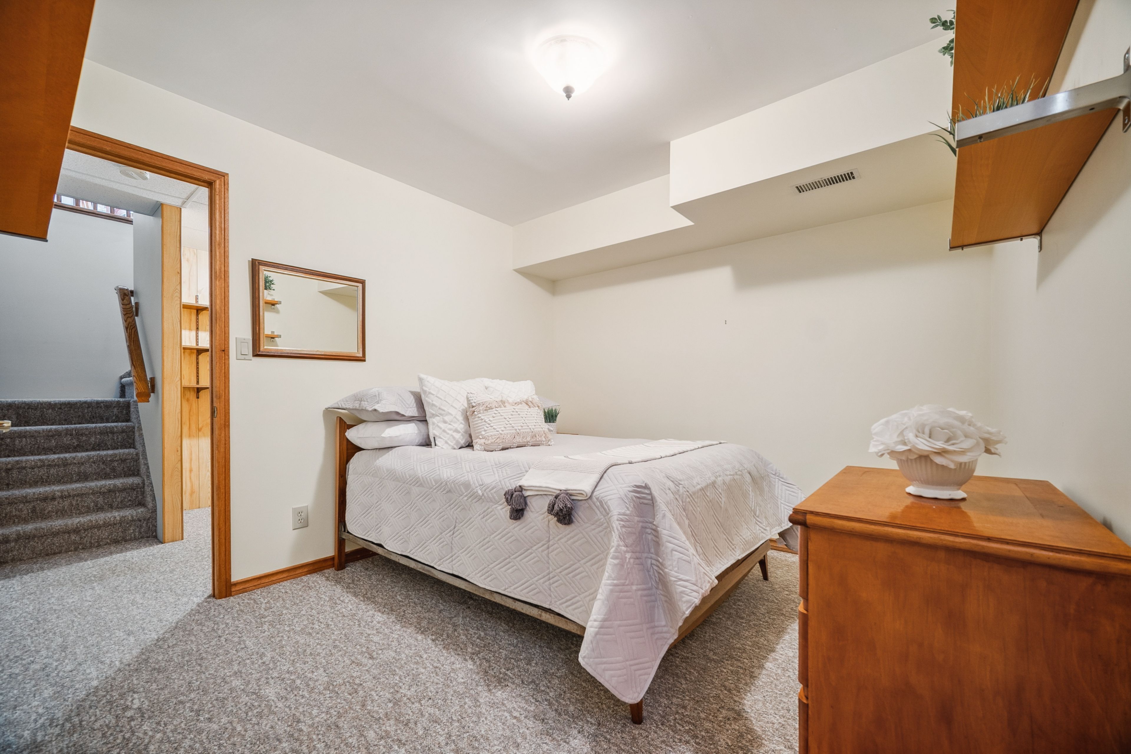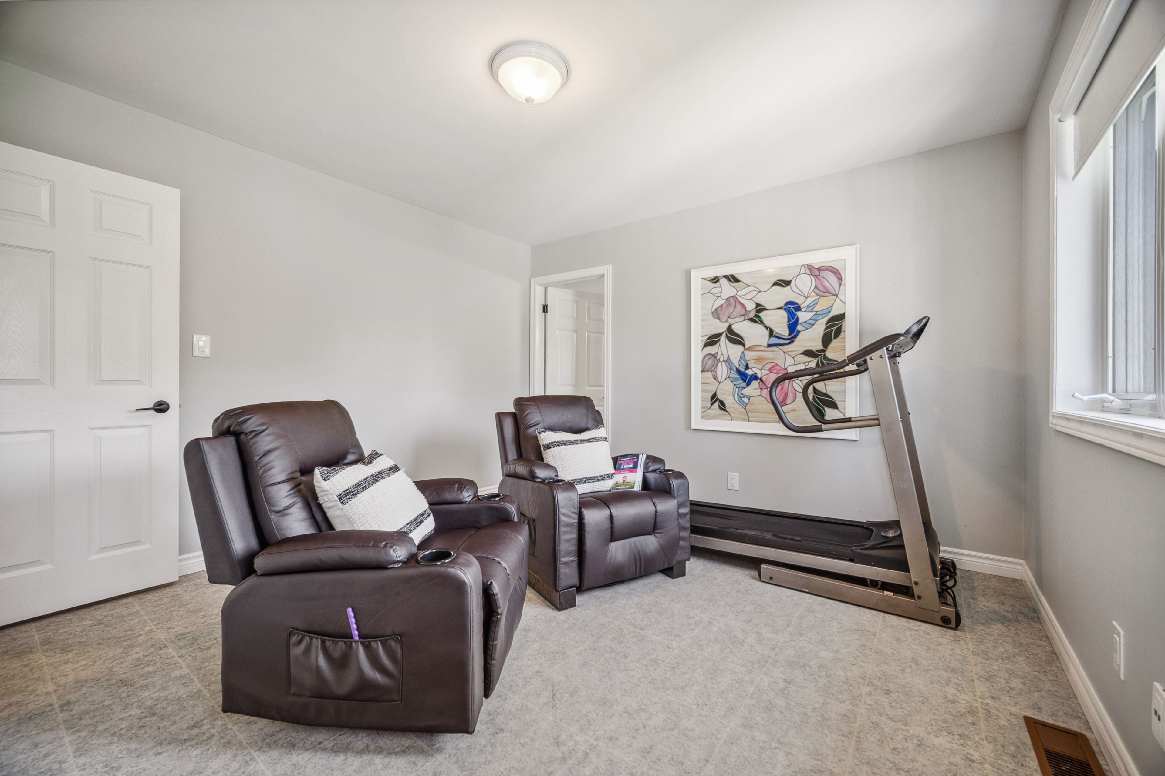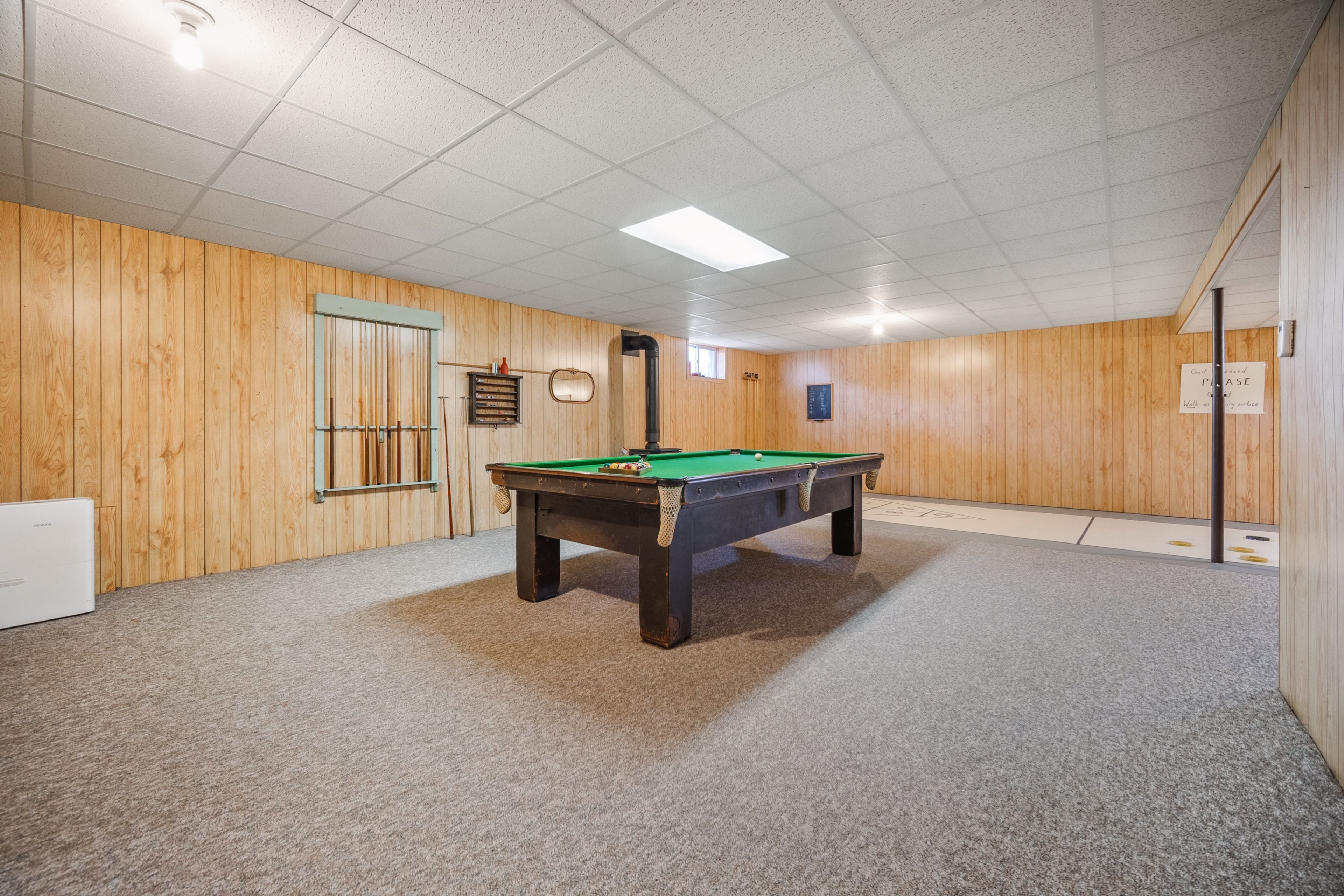 • Finished lower level includes a cozy fireplace and entertainment space.