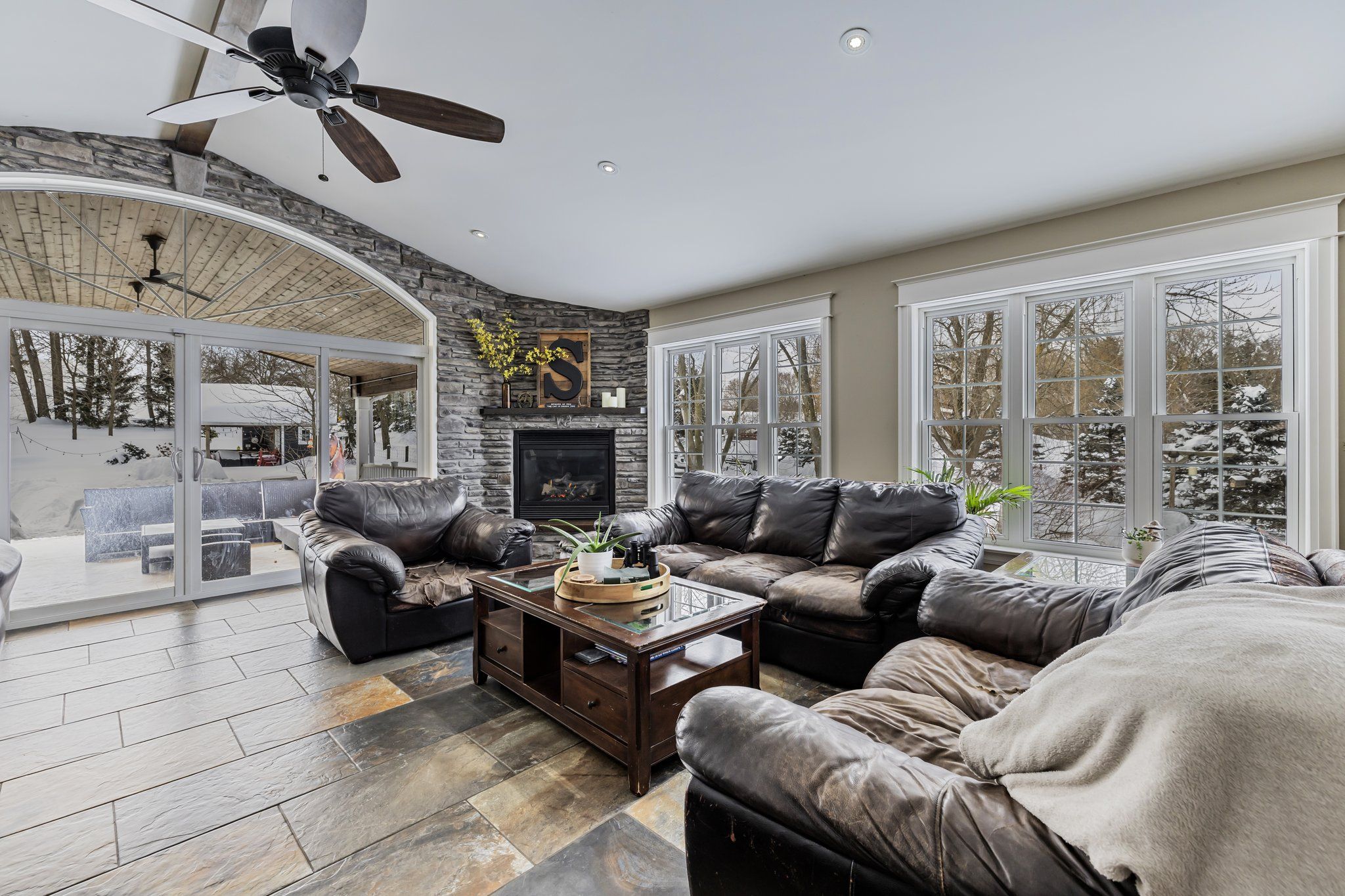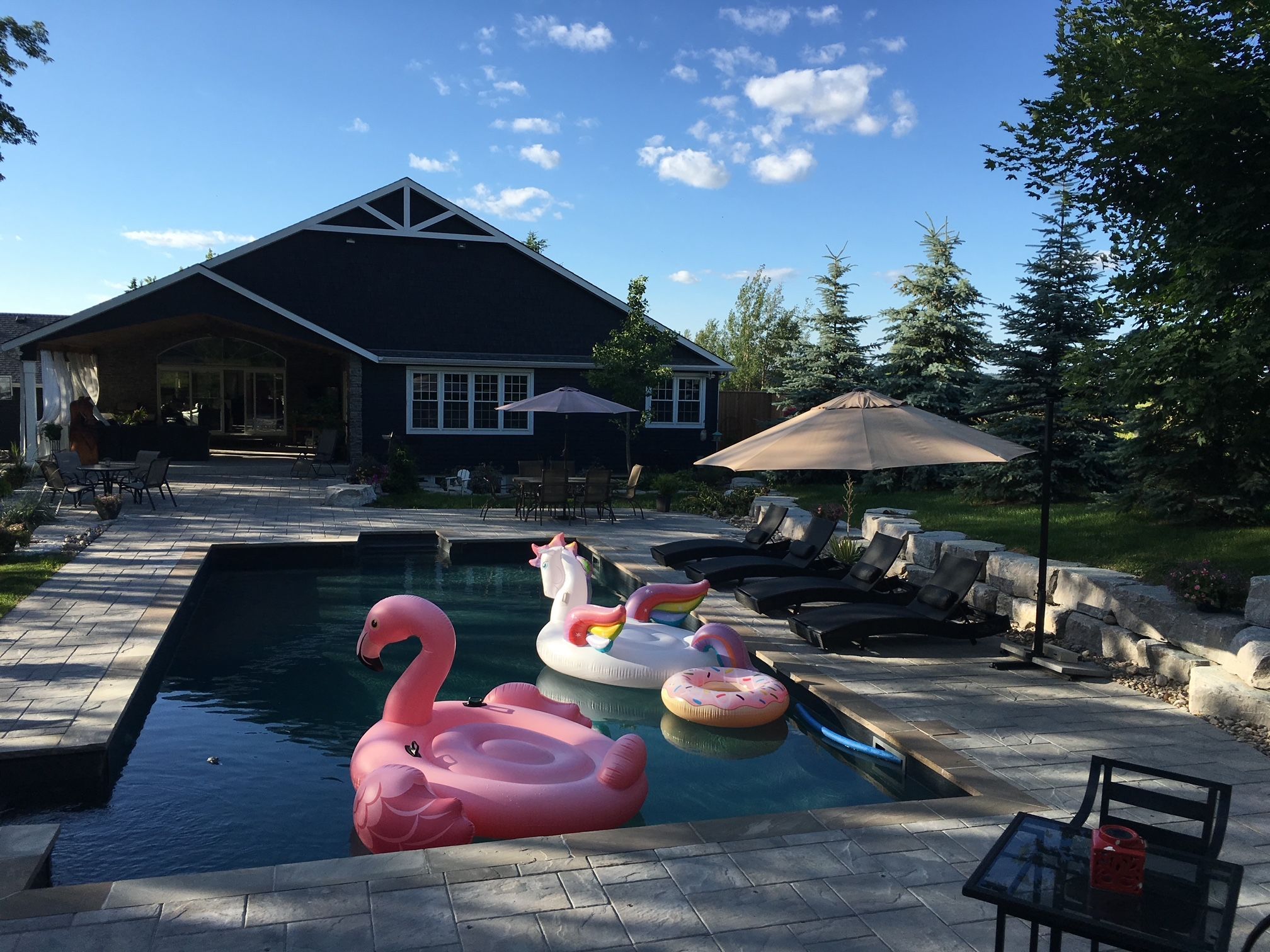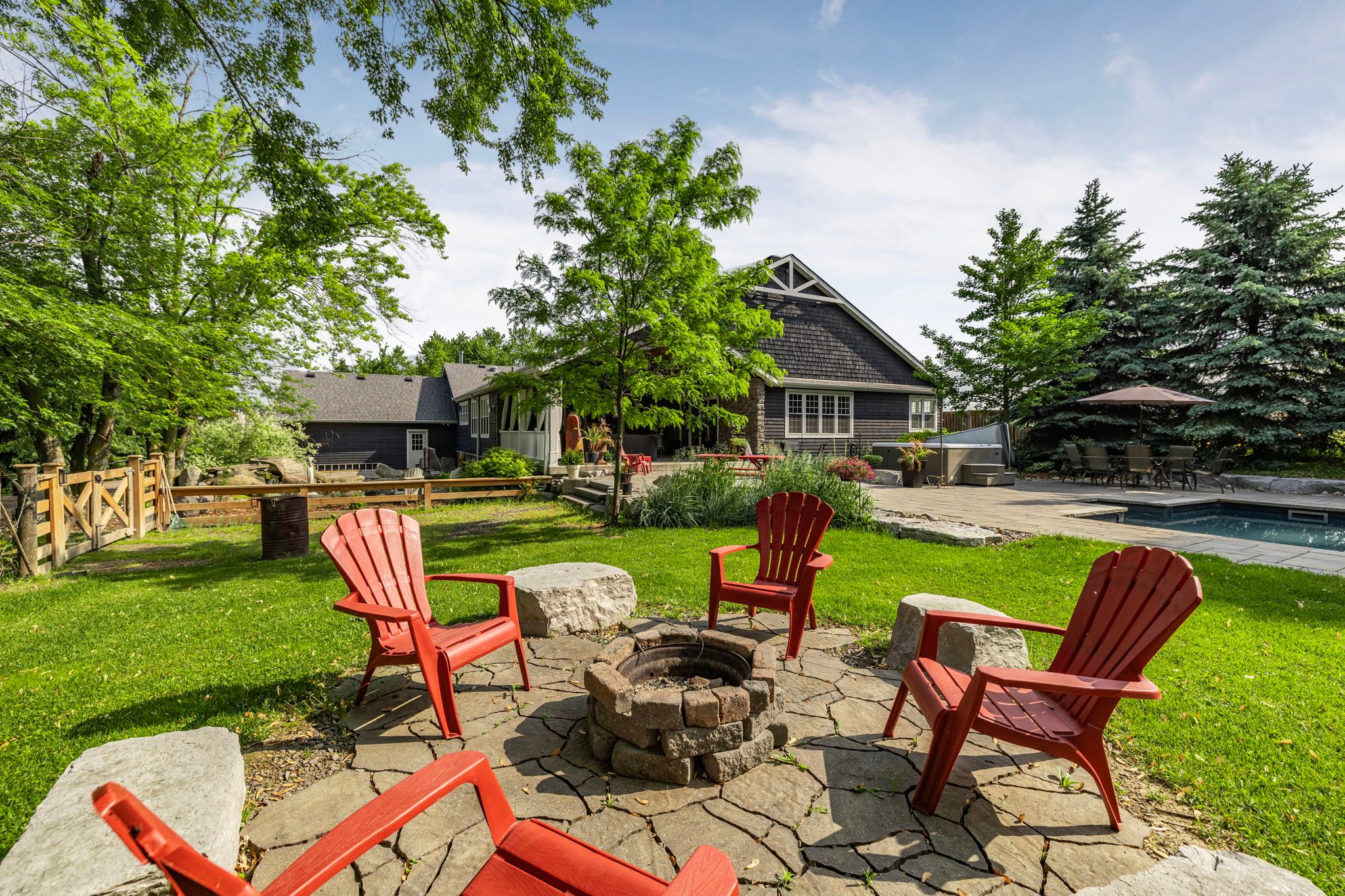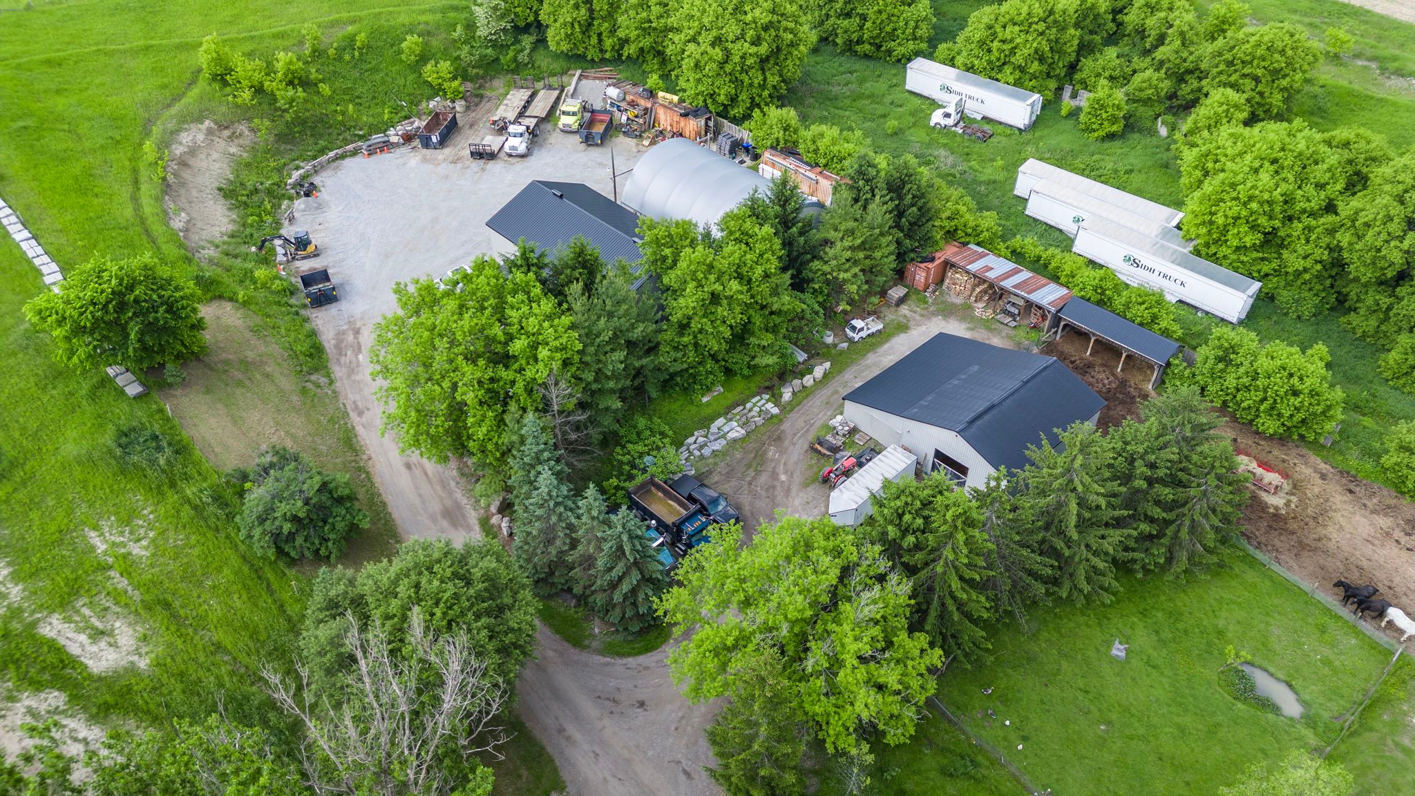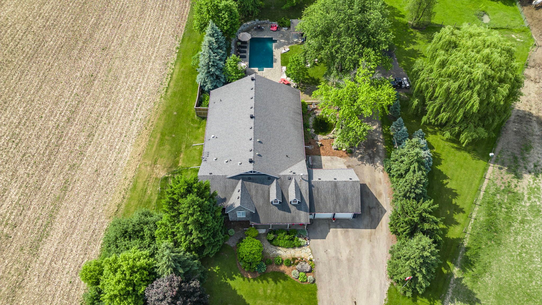 This stunning 6-bedroom, 6-bathroom bungalow on 10 acres just north of king offers luxurious living with the convenience of nearby amenities. The property is a rare find, featuring a barn with paddocks for animals, a spacious 35x60 ft shop, a 40x60 ft coverall, and an expansive gravel yard space. Inside, the beautifully designed home boasts a grand open-concept kitchen and family room, perfect for entertaining. Four of the five main-floor bedrooms include private en suites, while the primary suite offers a large ensuite, walk-in closet, and in-room laundry. The partially finished basement features heated floors, a bedroom and bathroom, a large gym area, and a reinforced concrete/rebar room designed for secure storage. Step outside to a fully landscaped backyard oasis, complete with an inground pool and hot tub, creating the perfect retreat. Extras: hot water tank (owned), septic tank pumped (october 2024), in-floor heating in basement.