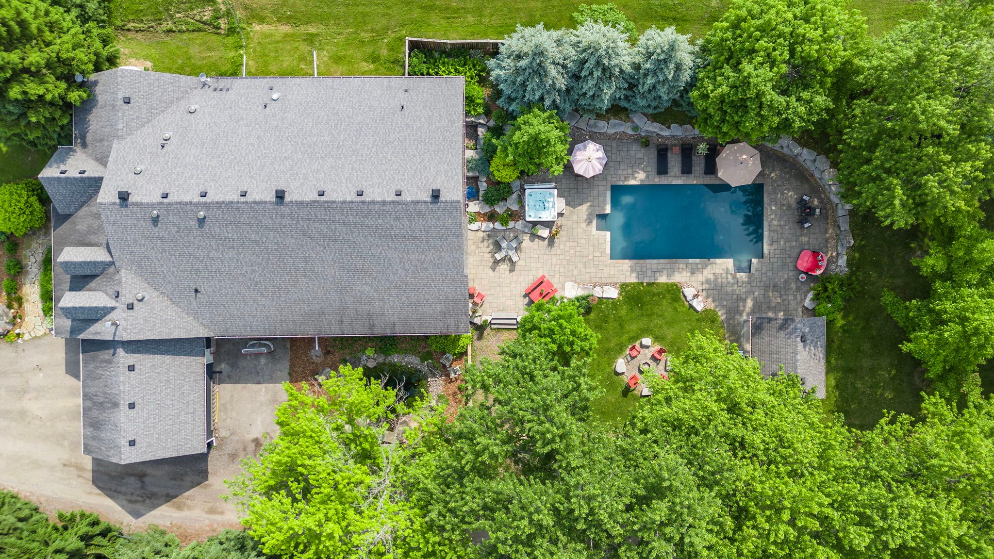 • Beautifully landscaped backyard with an inground pool and hot tub for relaxation.