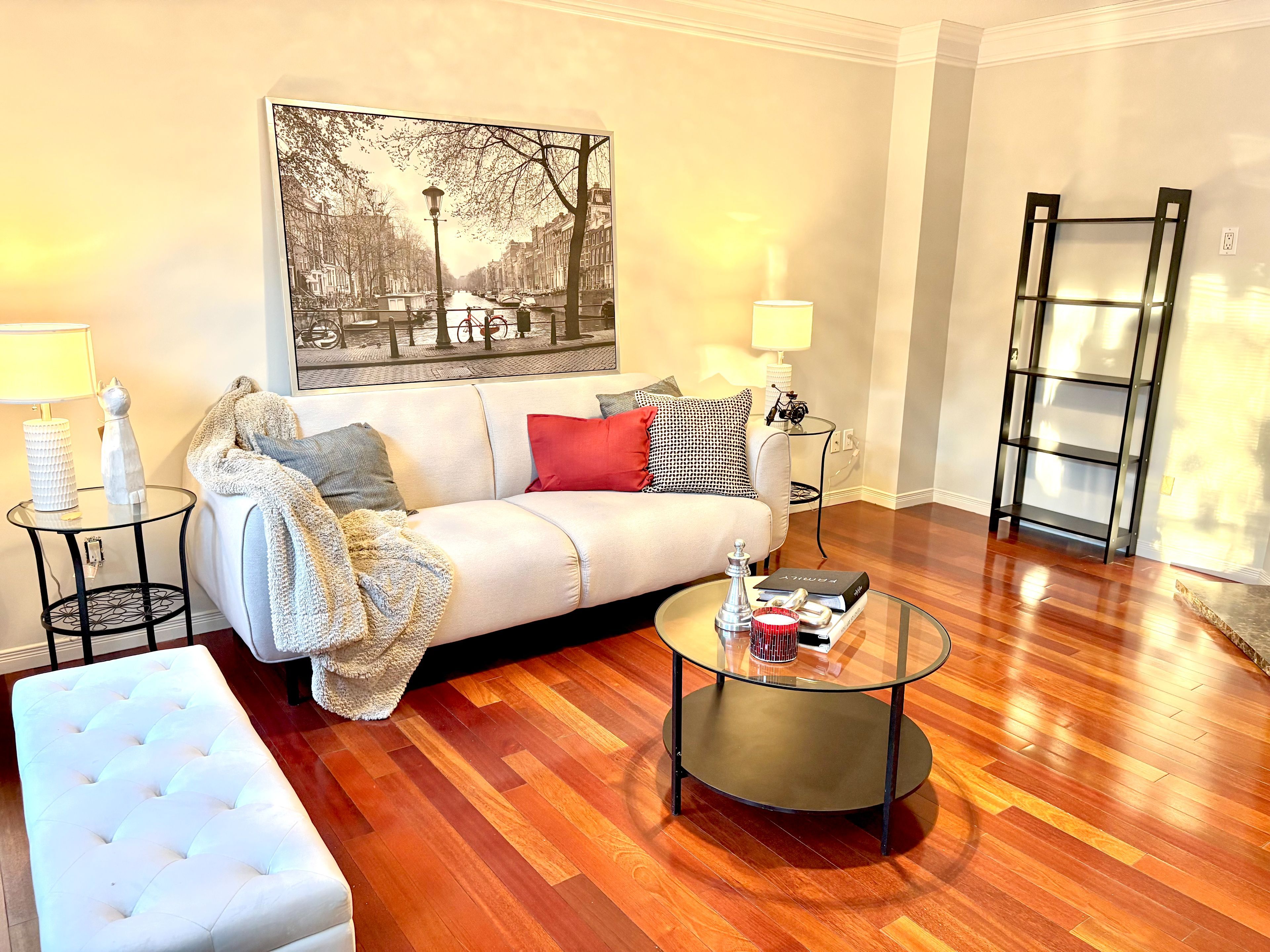 • Modern kitchen with quartz countertops and stainless steel appliances.