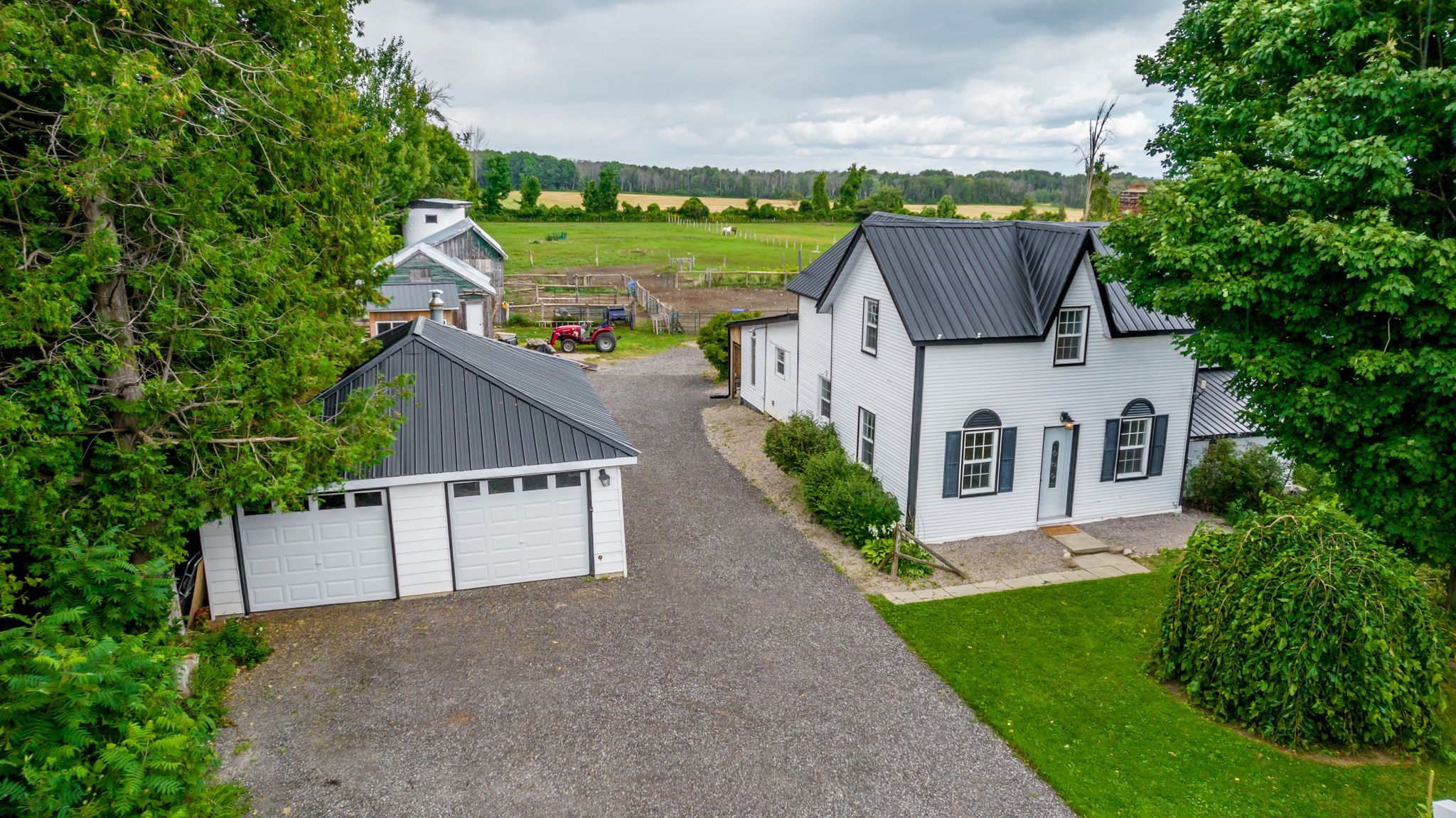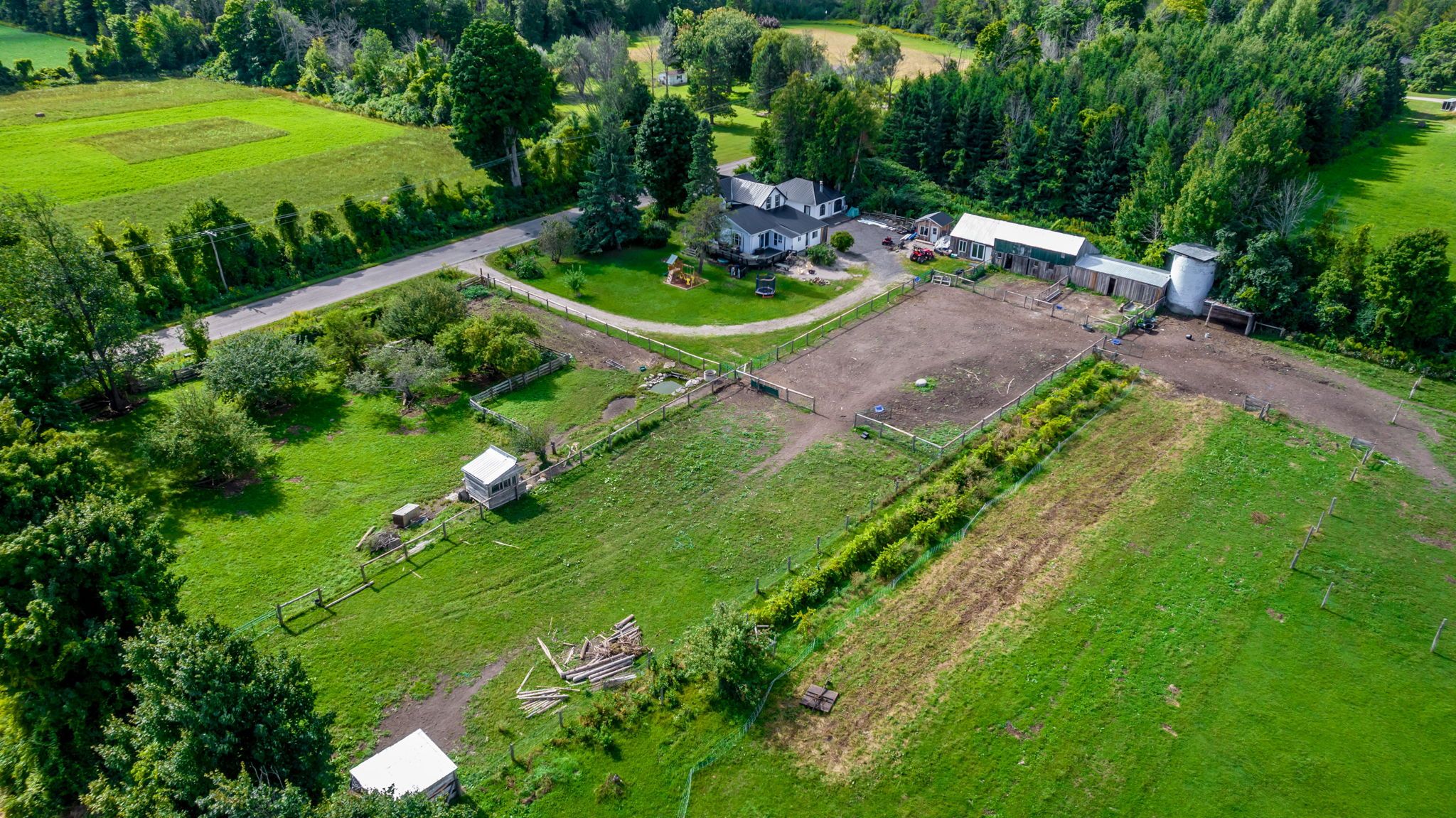 Looking for the perfect hobby farm! Rare shanty bay updated original dairy farm house built in approx 1850! 5 acre hobby farm agricultural zoned property with a detached 2 bay garage including a bonus heated and air conditioned suite with its own bathroom perfect for extended family/office/gym! There is a bunkie currently used as a tack room plus a concrete block workshop and a stable with 4 stalls & a loft. The attached roof silo is utilized to store wood. The stables has a year round water supply. The land is divided into 5 paddocks with the fencing being either woven wire or wood. The main dwelling has 3 bedrooms and 2 baths with a bright open layout, the south addition has been used as an in law suite. To the south west there is a orchard with heritage apple trees, this paddock includes a chicken coop and a vegetable plot. Adjacent to the riding ring there is a vineyard of marcotte grapevines. The soils are fertile,well drained sandy loam. The farm has been chemical free since 2006. Crops grown include wheat,garlic and potatoes. The maple trees on the property perimeter have been tapped for syrup production. The property has been used as a farm business. The property has a abundance of native plants and wildlife including a family of american goshawks,tree frogs & hummingbirds. At the end of line 4 the lake can be accessed by kayak & a little further there is a boat launch in shanty bay. The oro trail is 1 km from the property. All this within minutes to barrie!!