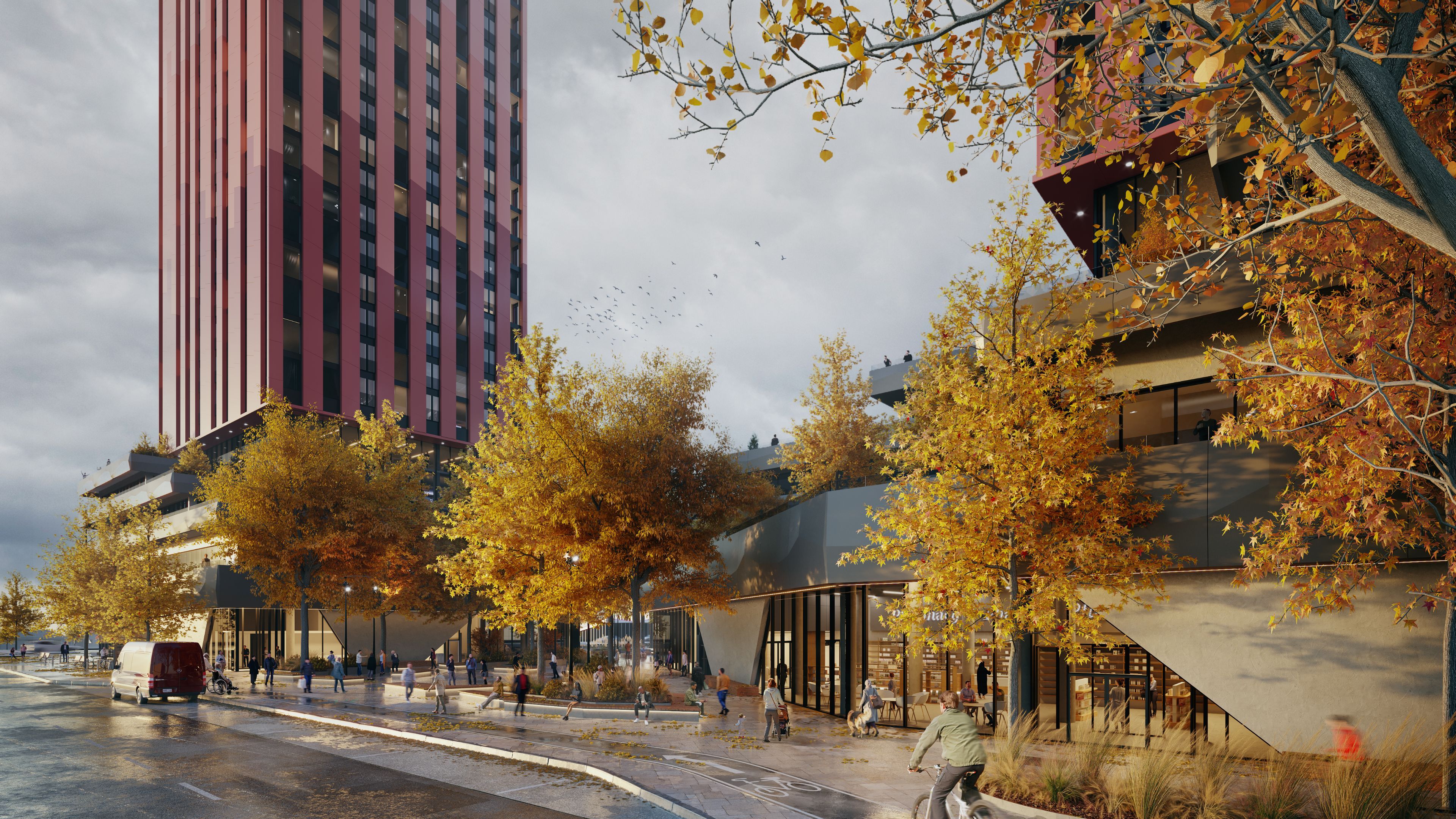 • Modern retail spaces with excellent visibility and double-glazed windows.