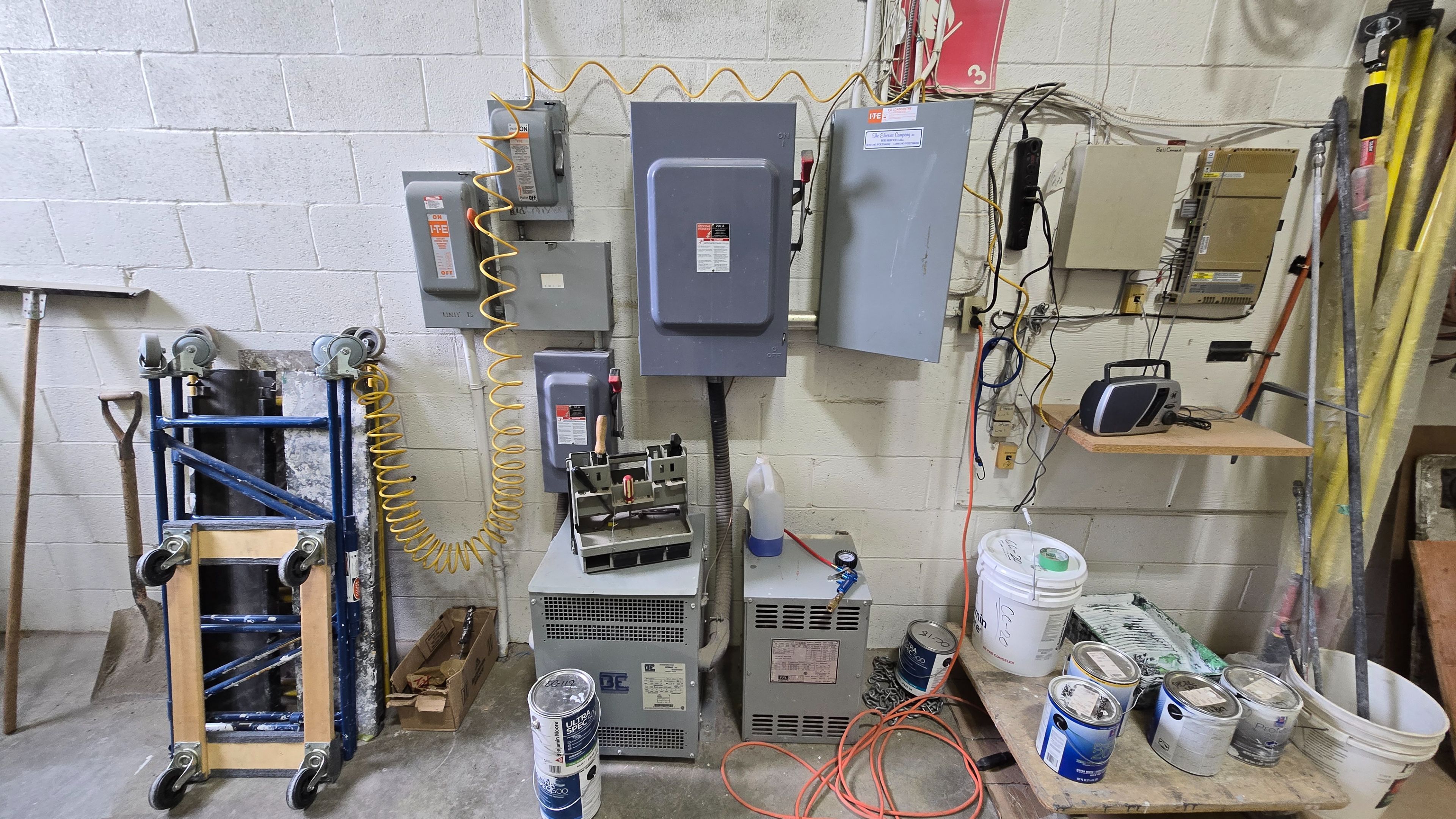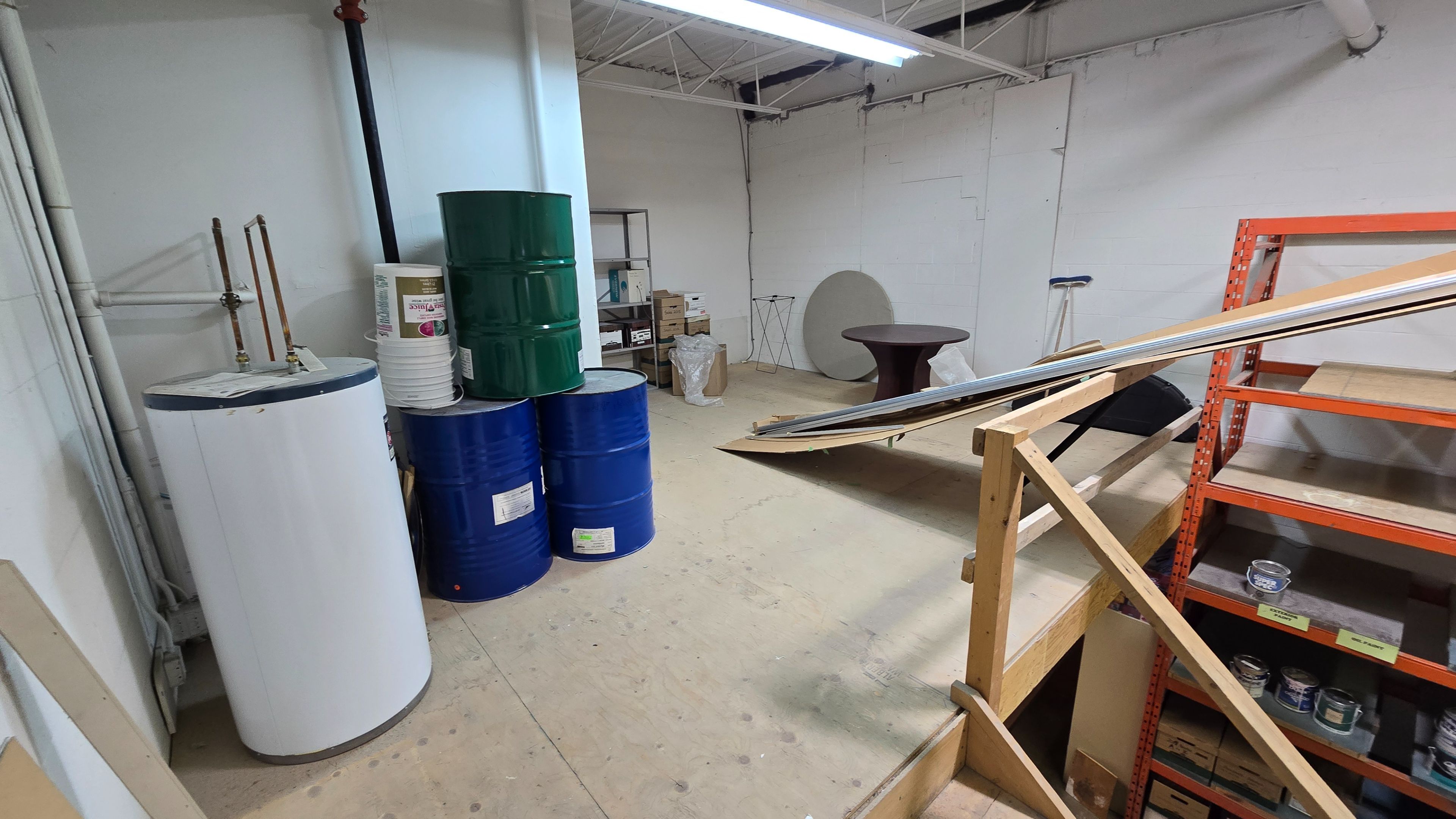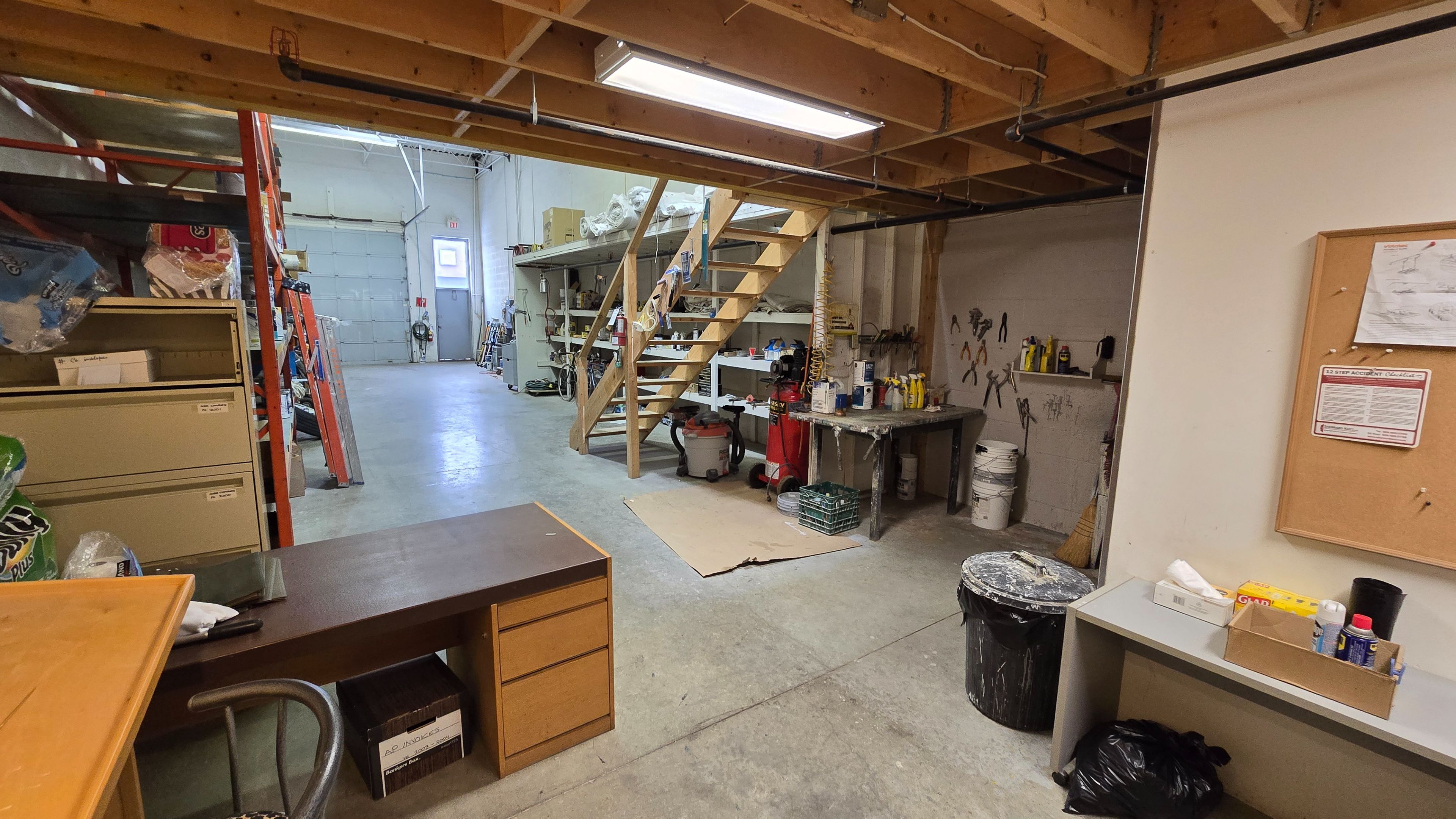 • Bright warehouse space featuring painted walls and large drive-in door.