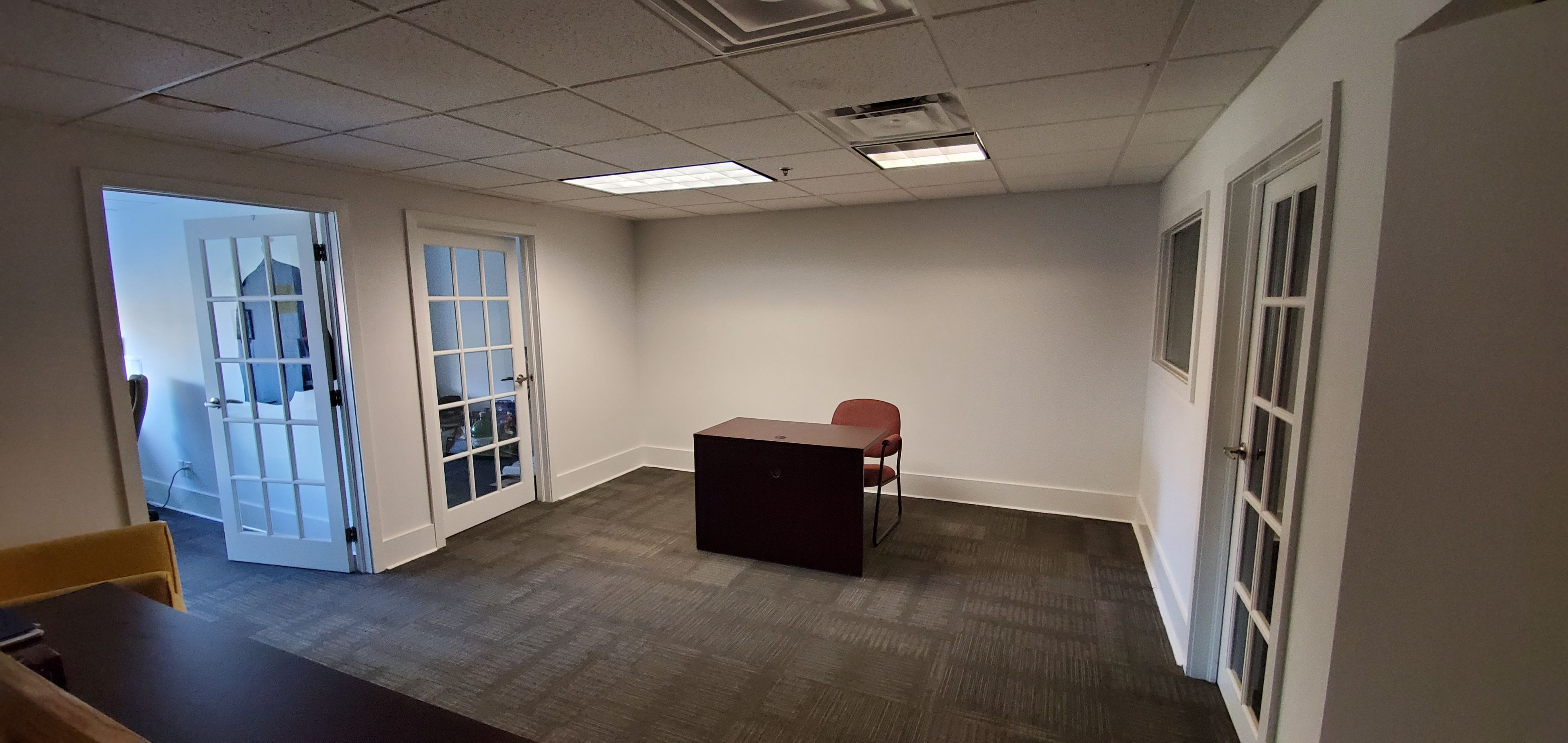 • Two private offices and a boardroom or open office area.