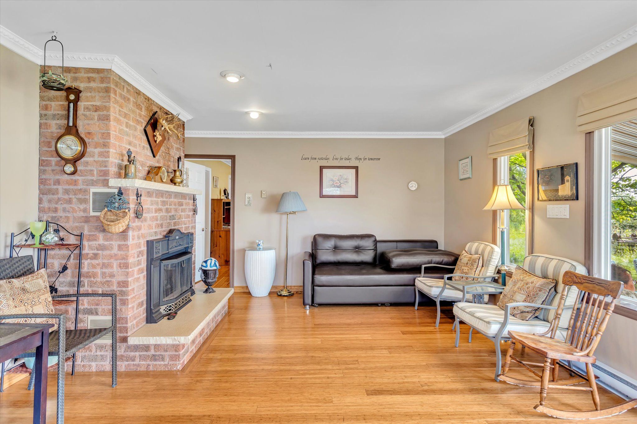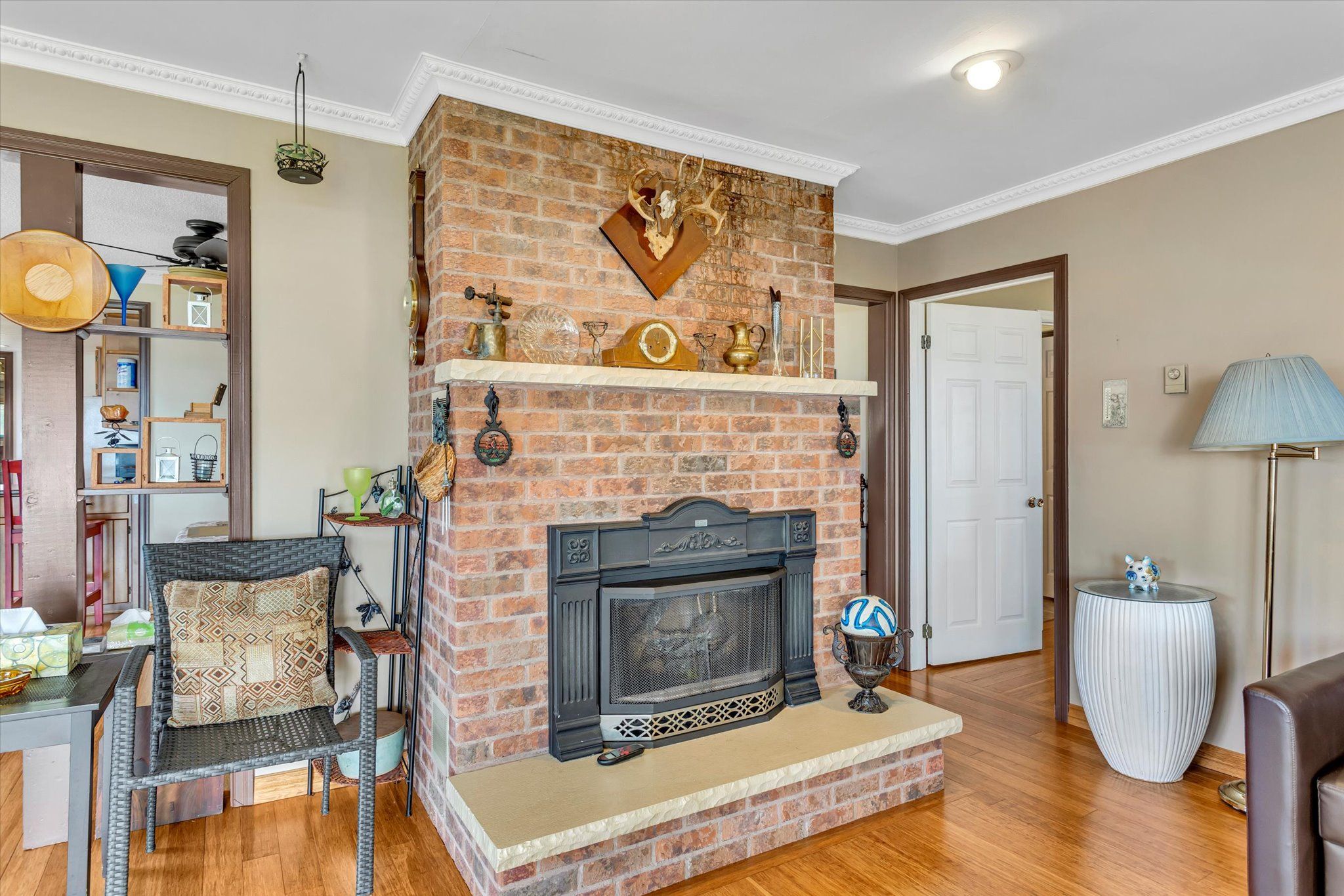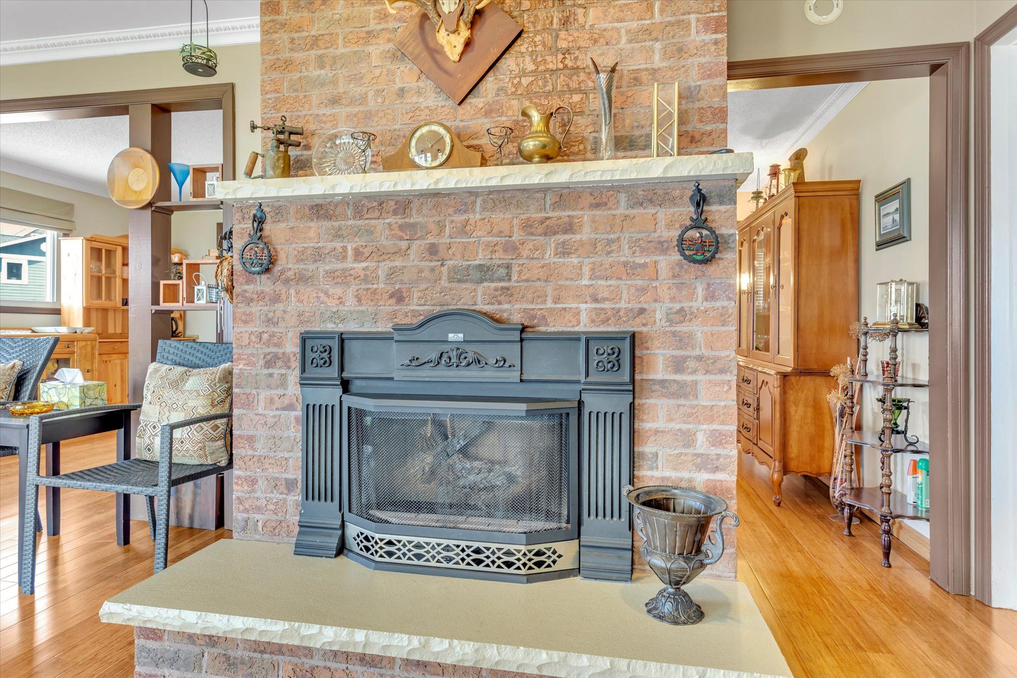 • Spacious bungalow with natural light and cozy gas fireplace.