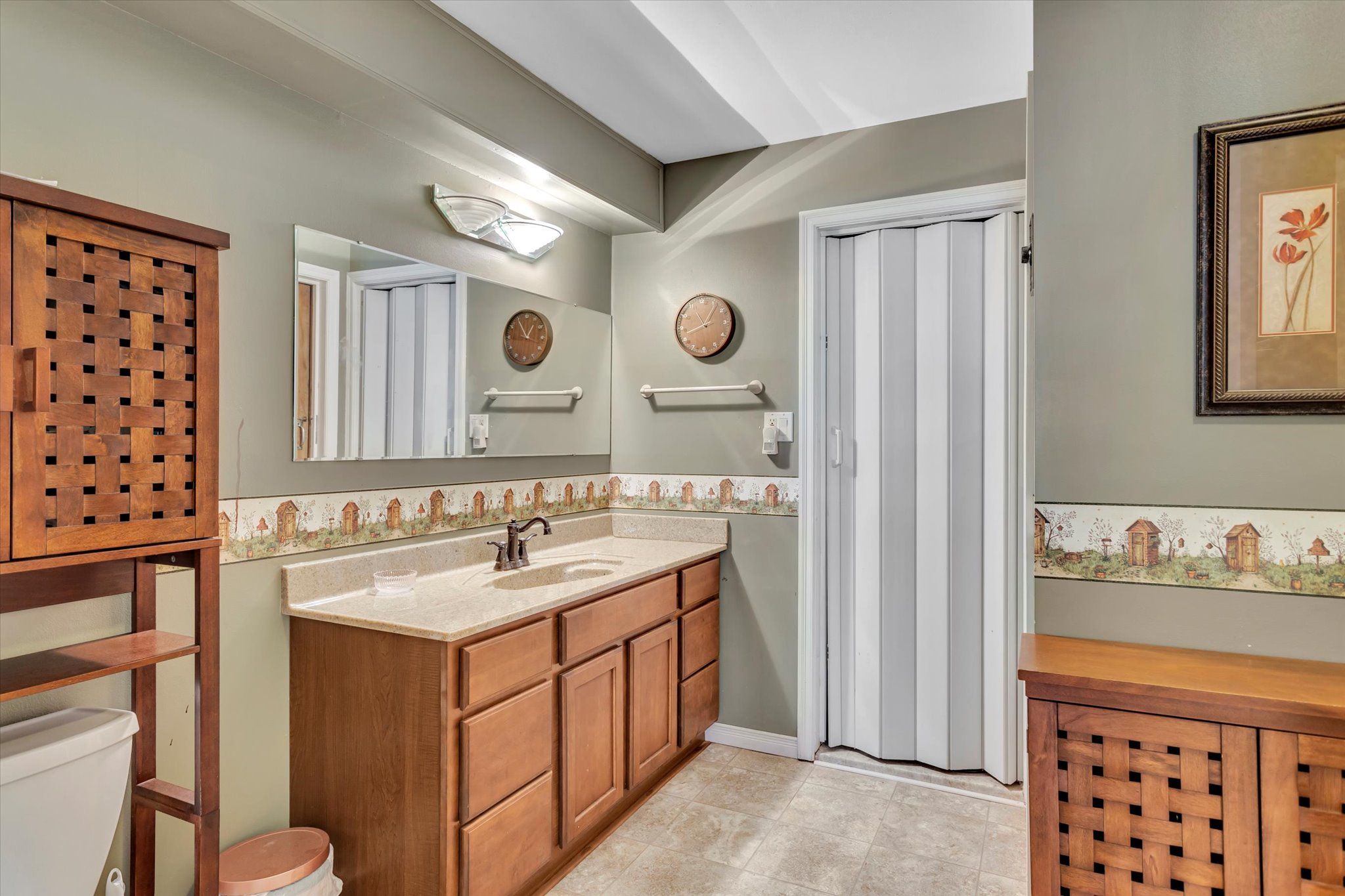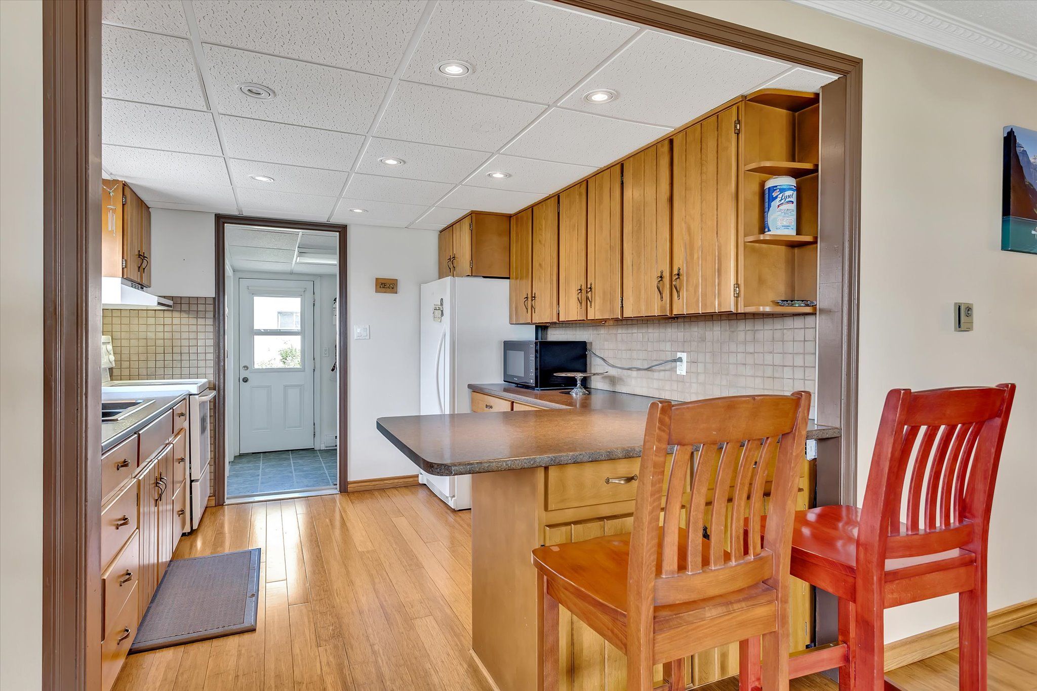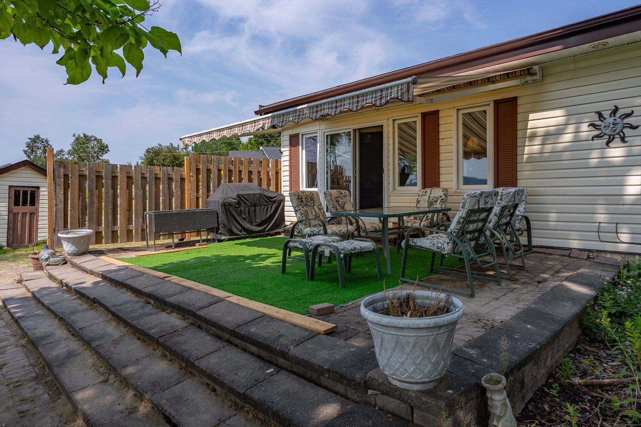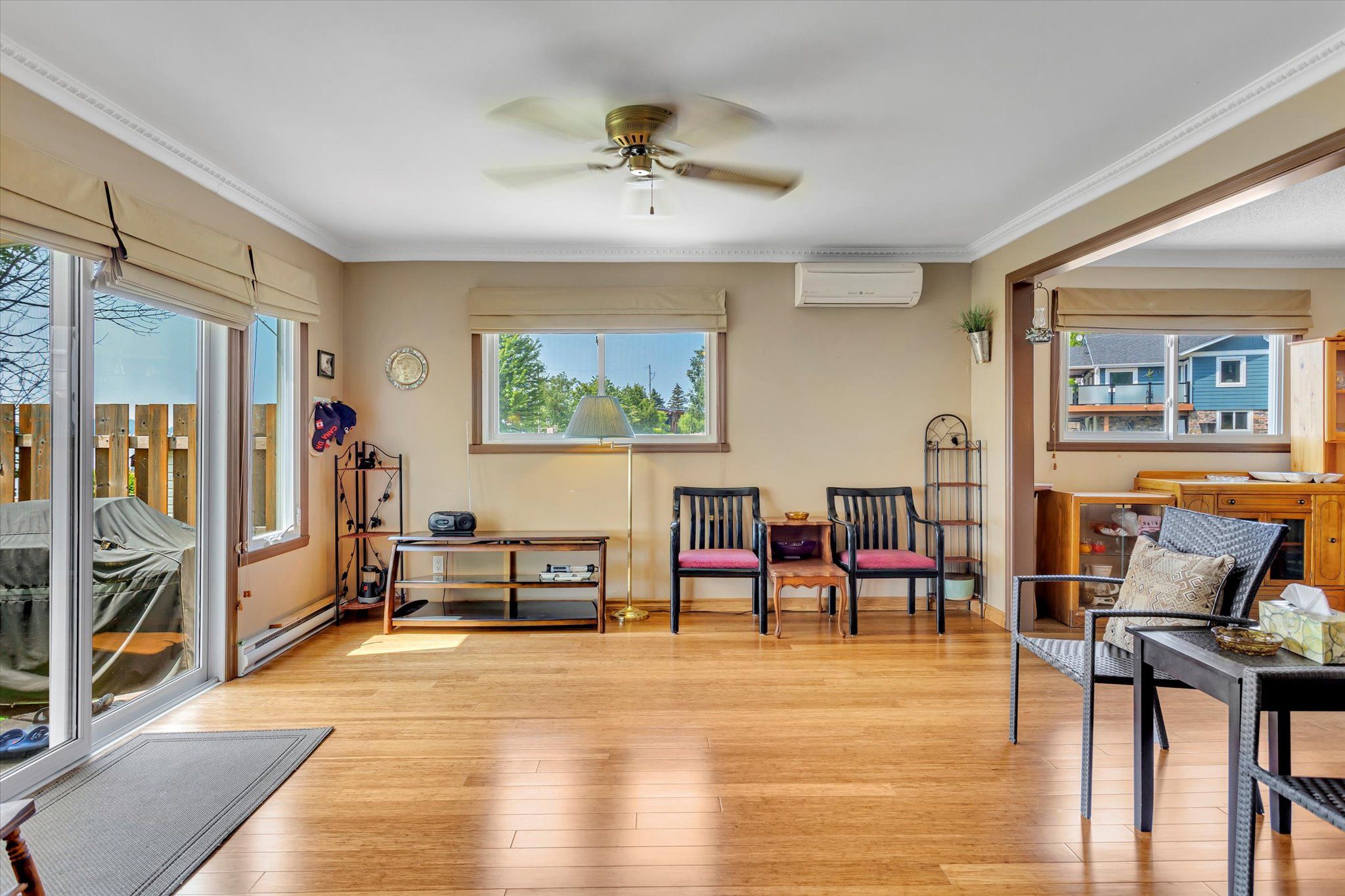 • Spacious bungalow with natural light and cozy gas fireplace.