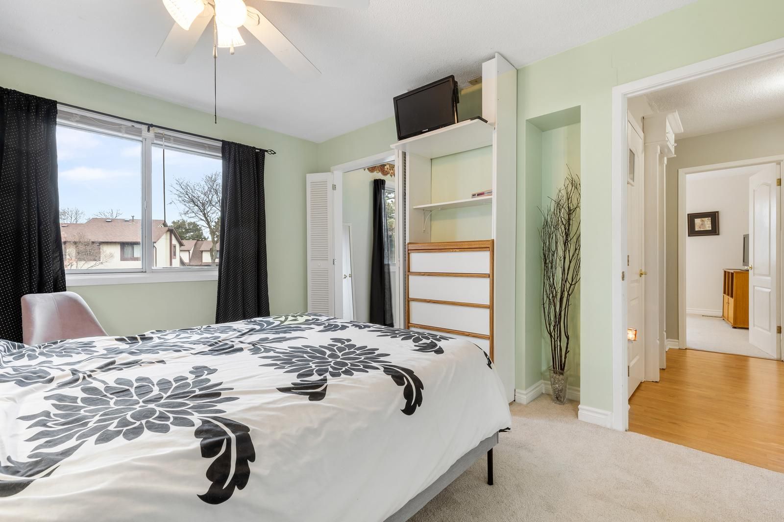 Rare quad feels like a semi. Incredible value in one of mississauga's most sought-after communities-streetsville. This rarely offered corner 4 bedroom townhouse has been converted to 3 large bedrooms with the primary room offering it's own ensuite bathroom. This is one of the largest units in the complex, offers the space and privacy of a semi-detached home. Dare to find another unit in the complex with 4 bathrooms. This well-maintained home features an opened finished basement with its own 3-piece bathroom providing exceptional flexibility-perfect for a guest suite, home office, or additional living space. The large white kitchen includes a generous breakfast area and ample counter space, ideal for both everyday living and entertaining. Step outside to your private yard with a shed, a feature that adds outdoor storage. It is a quiet retreat for relaxation or family time. Surrounded by green space, this home offers a peaceful setting while being just minutes to the credit river and it's trails. Close to schools, parks, shopping, and transit, with easy access to major routes. Additional highlights include: low-maintenance living with roof and windows covered by maintenance fees. Also covered by maintenance fees is unlimited internet, cable and water. Forced air gas heating and central air conditioning-a major upgrade over electric heating. Recreation centre features an outdoor pool, basketball court and large party room. Whether you're a first-time buyer, growing family, or investor, this home delivers the perfect blend of space, location, and value.
