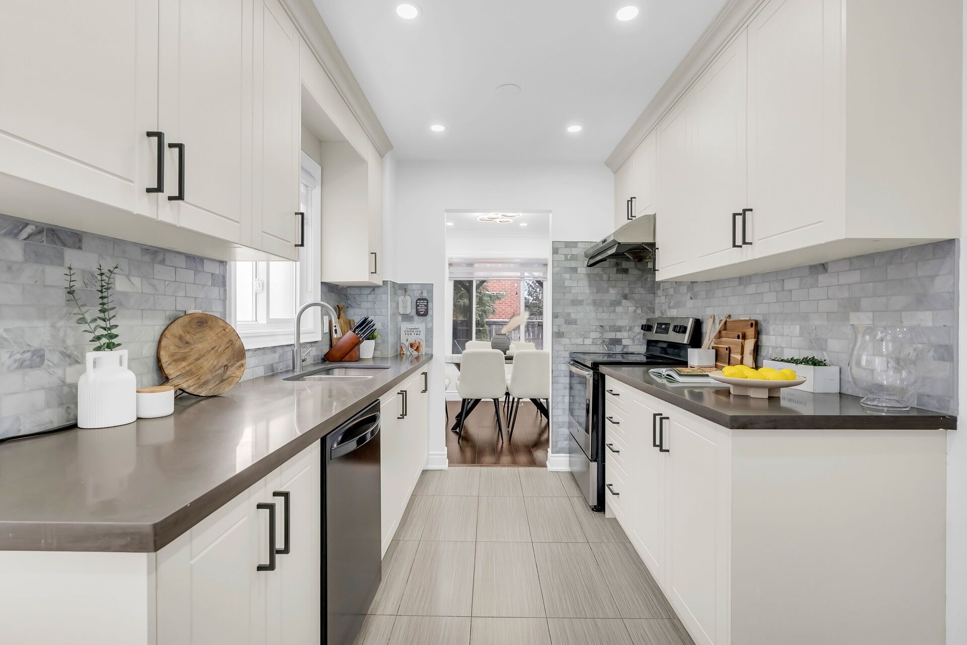 • Renovated kitchen featuring quartz countertops and stainless steel appliances.