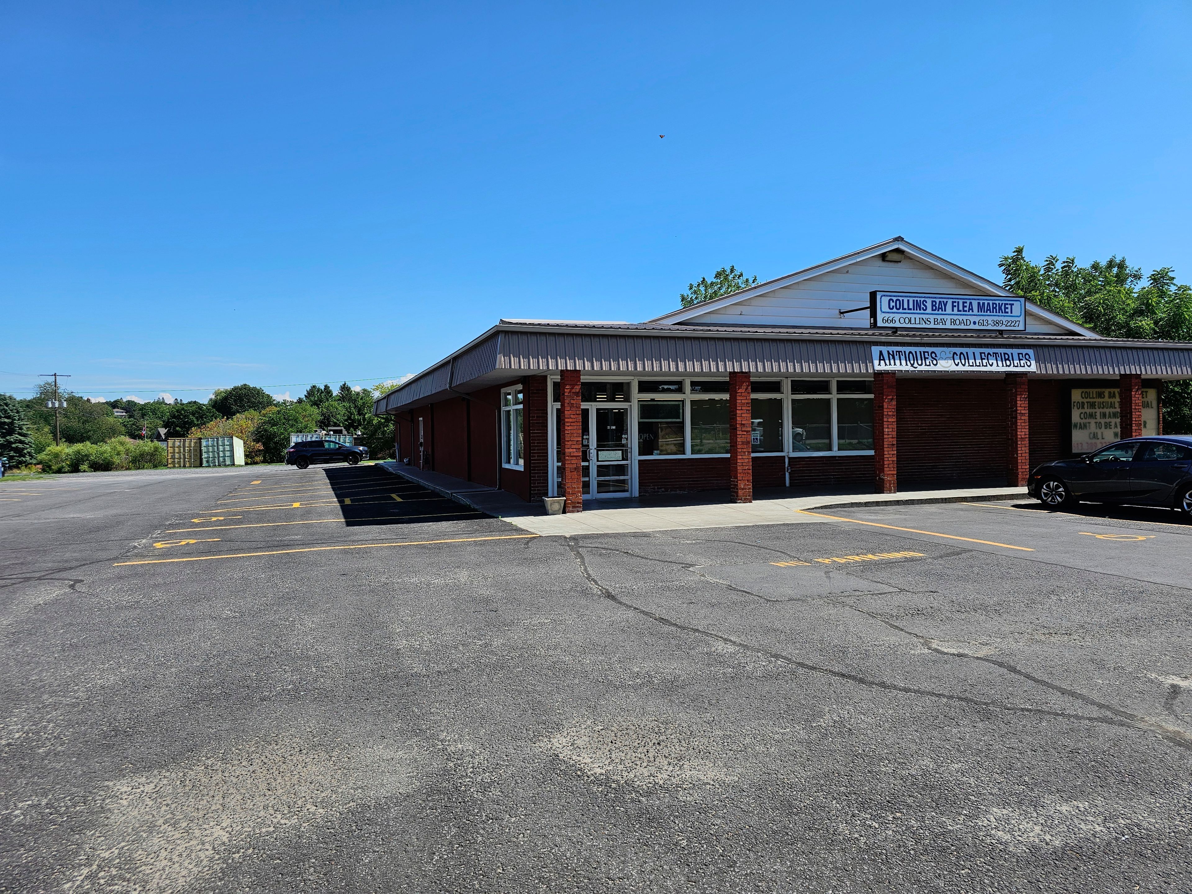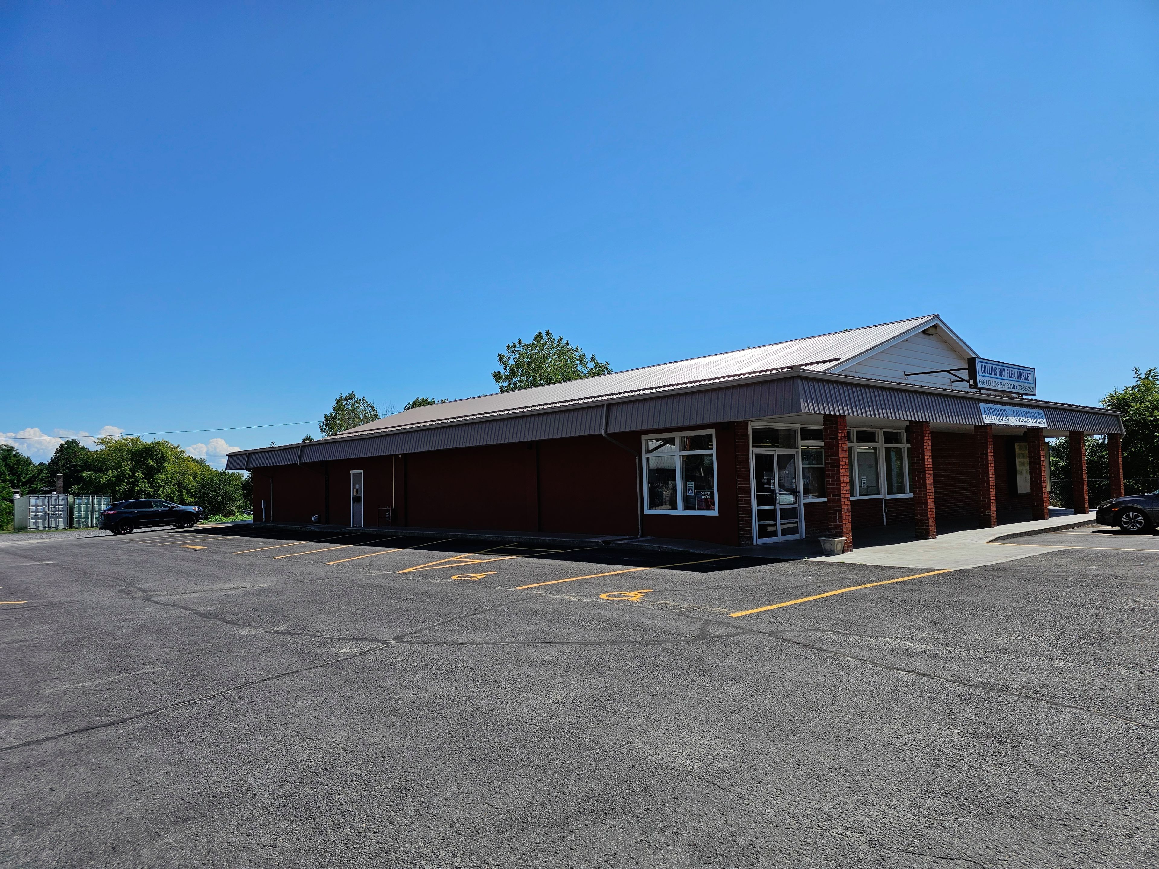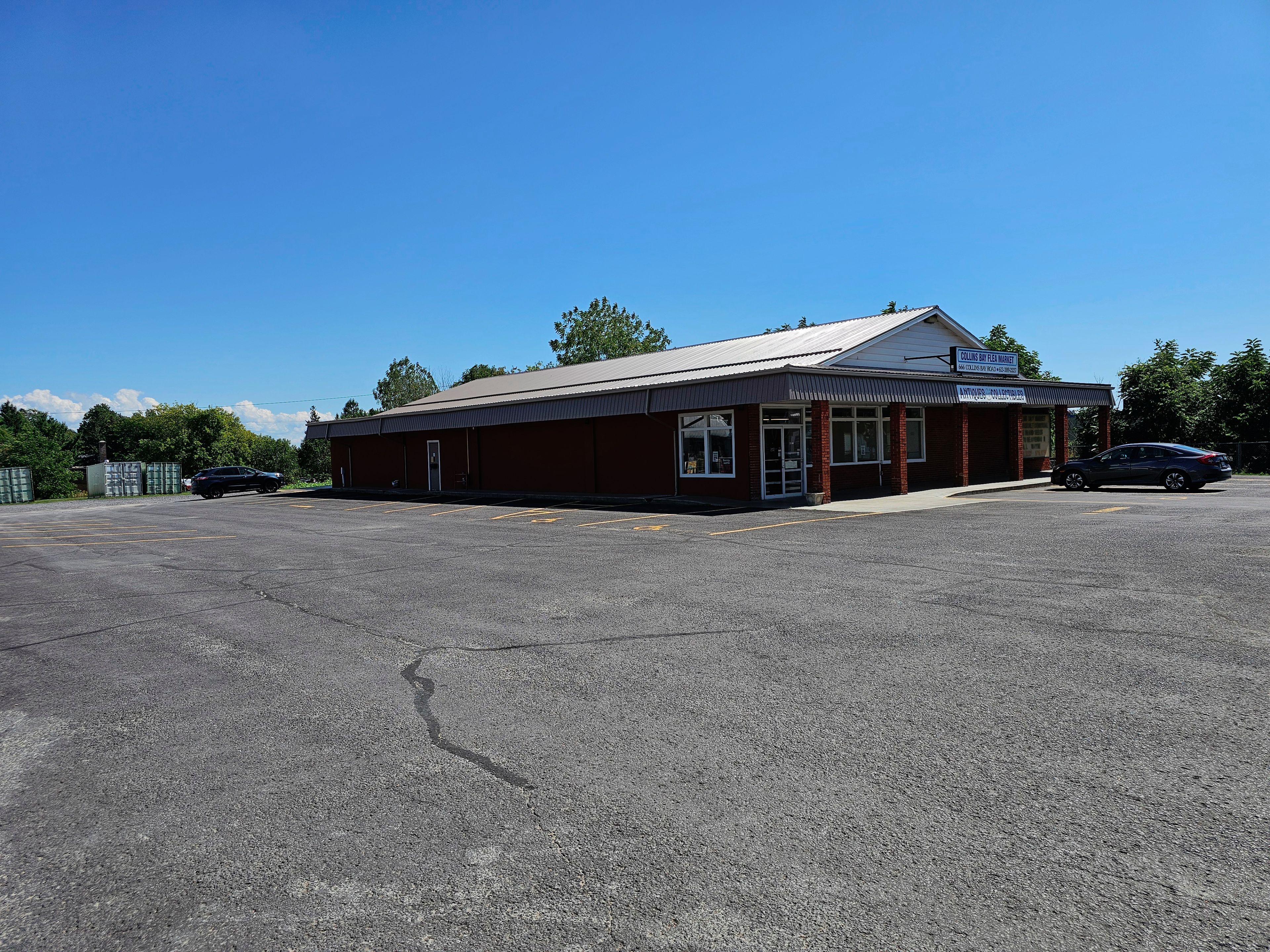 Commercial property in desirable west end kingston location with entrances from collins bay road and from glenmore avenue. Expansive 1. 67 acre lot with 37 marked parking spots, including handicap parking. Currently 6652 sq. Ft. Retail on one level with additional 561 sq ft storage. Solid block building has been improved with metal roof, double glazed windows, roof mounted hvac system (gas). Information regarding financials and leases is available upon request. General commercial zoning (cg) allows for multitude of uses - see documents. Presently operating as a thriving antique and collectible business, with additional income.